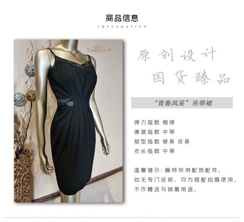 【特惠】YIQU |“青春风采”吊带裙(亮黑)P