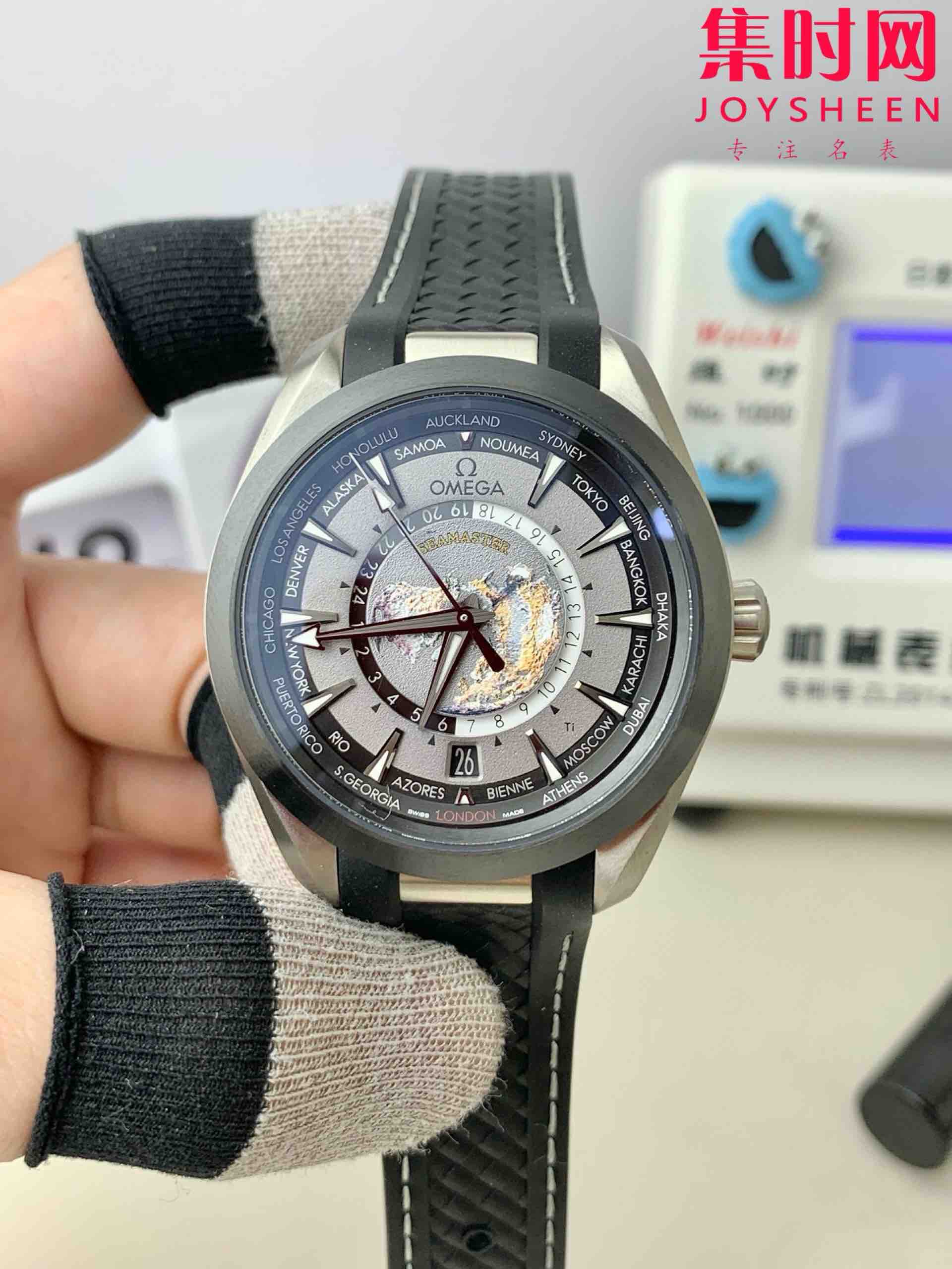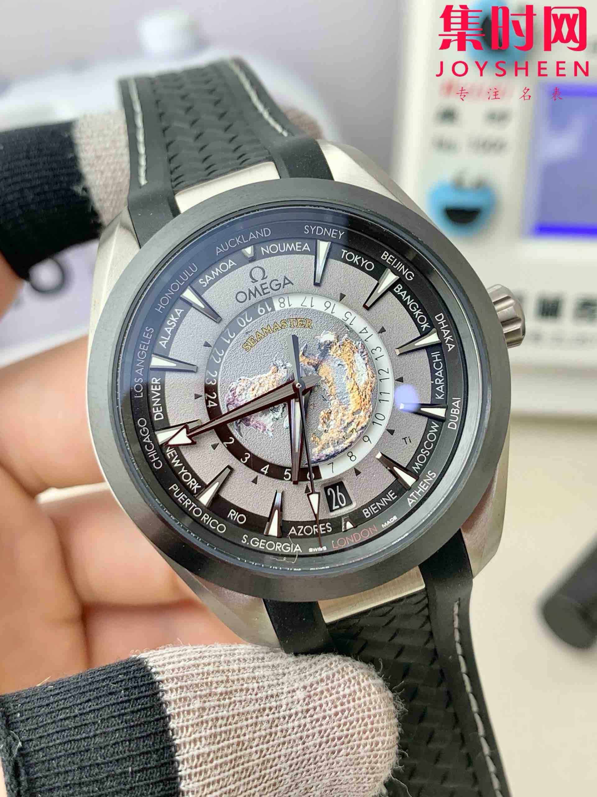 VS欧米茄新款海马世界时系列 VS海马世界时钛壳 钛海马 海马世界时黑色款 男士腕表 表径43mm Aqua Terra 世界时腕表。一款可以戴着环游世界的世界时腕表,激光烧蚀蓝色海洋,陆地浮雕勾勒,24小时hesalite水晶环。辽阔世界尽在掌握,于方寸之间伴您开启环球之旅!搭载VS定制Cal.8938多功能全自动机械机芯,蓝宝石水晶镜面,钛金属表壳,陶瓷圈口,定制橡胶表带,原装折叠扣,功能同步原装真实可用!表径43mm