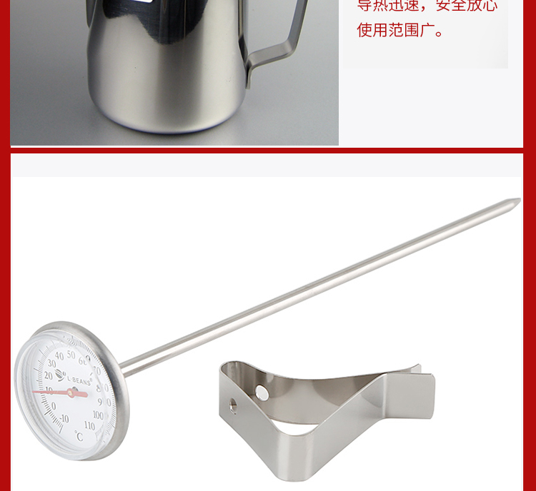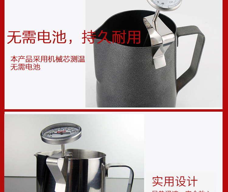 可挂式咖啡机温度计牛奶花式咖啡拉花打奶泡用不锈钢厨房测温仪