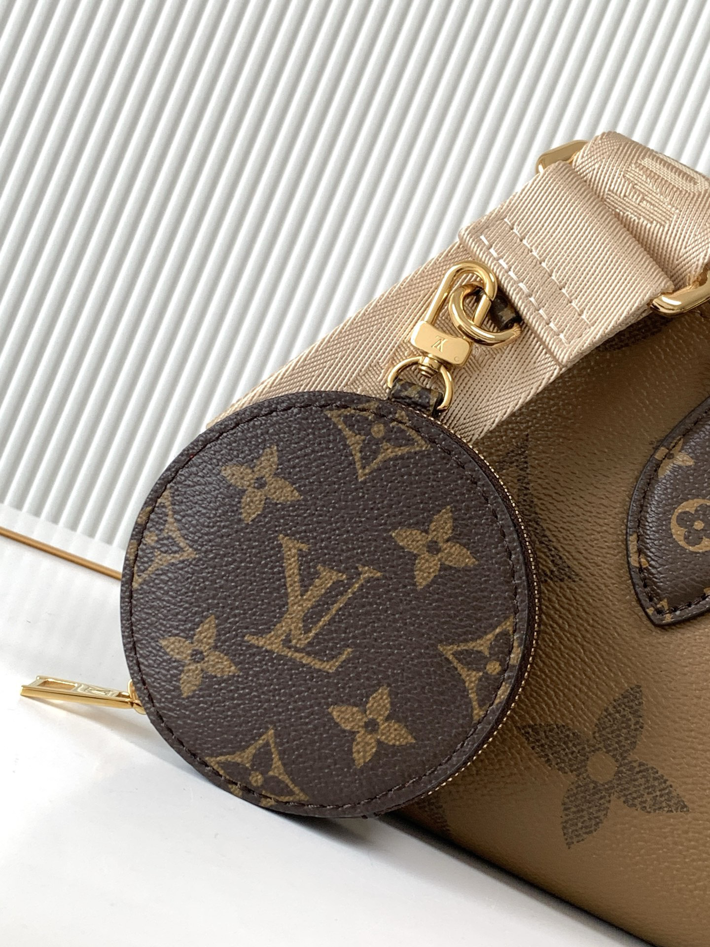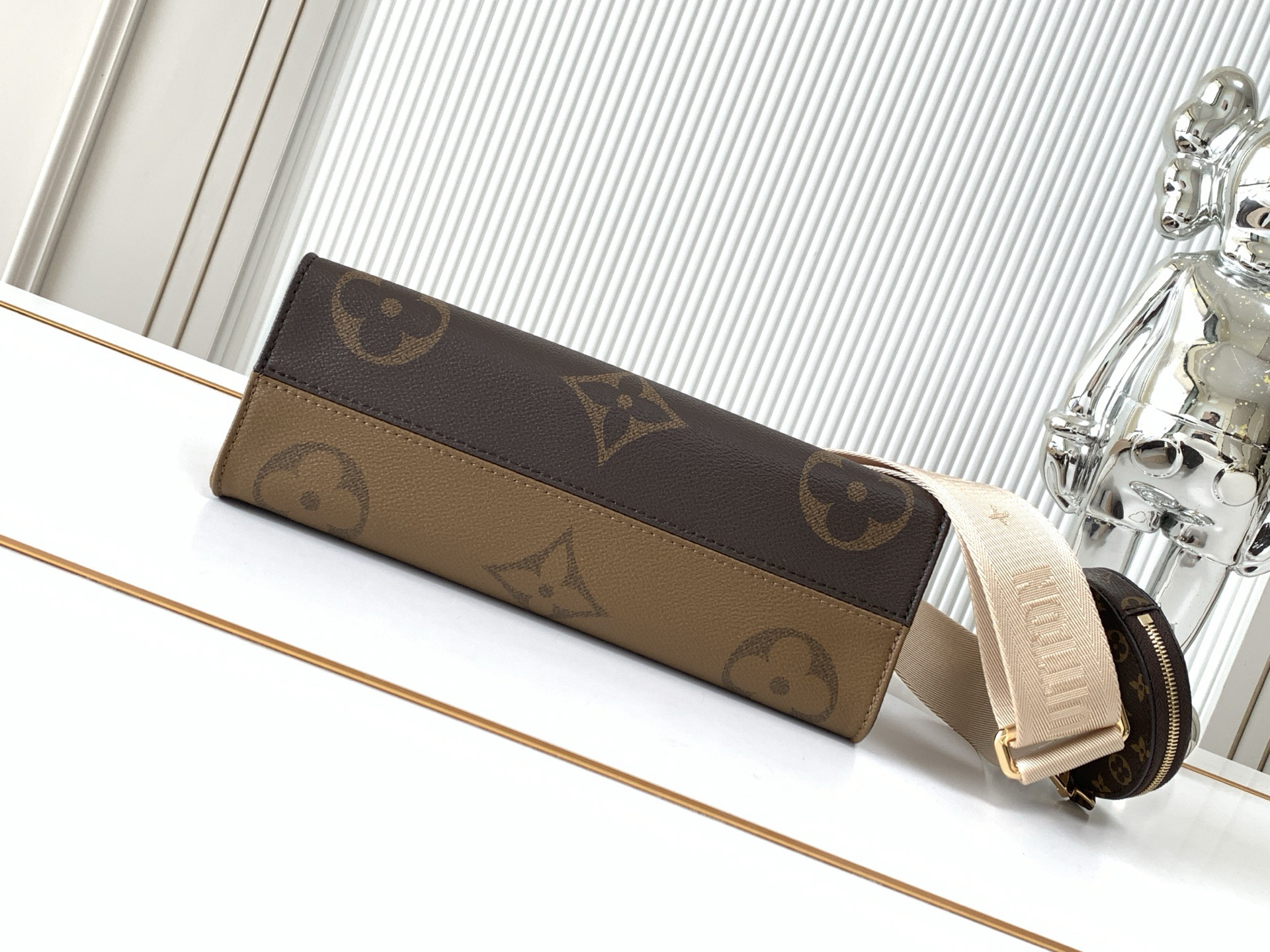 秋冬特惠💰1200 渠道级LV【全钢五金 MB163c01变码芯片】te级LV 全套包装 M46653迷你托特包 本款 OnTheGo托特包融合Giant Monogram和Monogram Reverse帆布,焕新演绎East West 的充裕构型。可拆卸圆形零钱袋丰富细节, Toron 顶部手柄和可拆卸宽幅肩带实现多种背携方式。