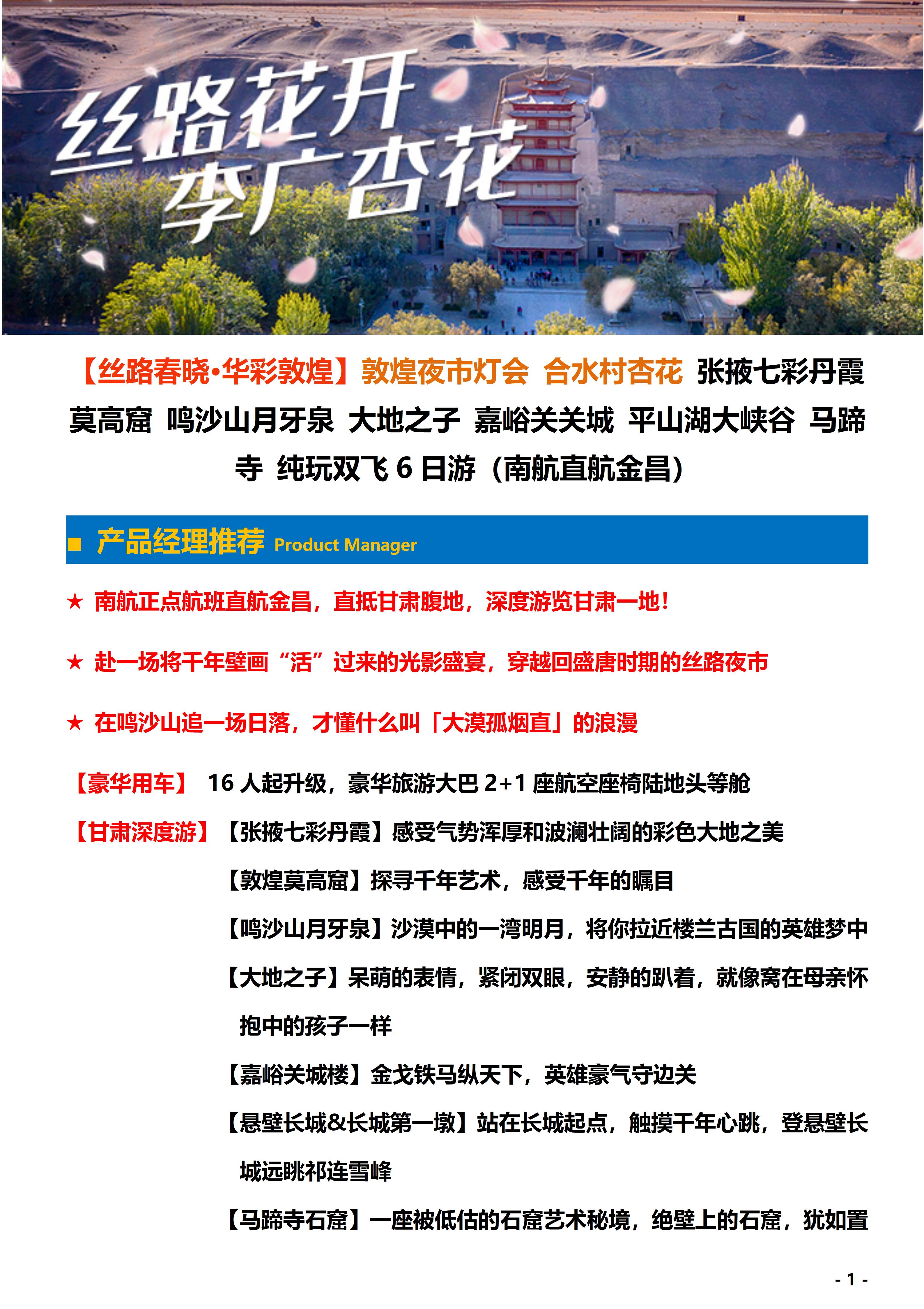 【丝路春晓·华彩敦煌】纯玩双飞6日游