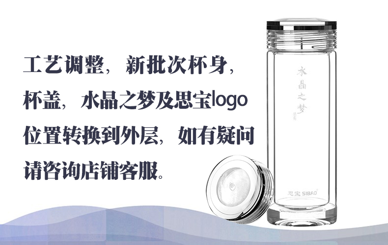 思宝旗舰店冰山精灵双层玻璃杯办公杯便携车载礼盒包装