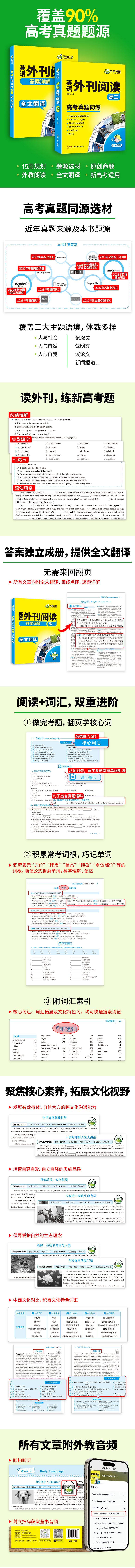 华研外语 2026 高中英语时文外刊精读 高考英语阅读语篇精选 地道时文阅读 新高考题型,高二阅读理解 完形填空 七选五 语法填空 中国文化 词汇练习 词根积累 配套音频