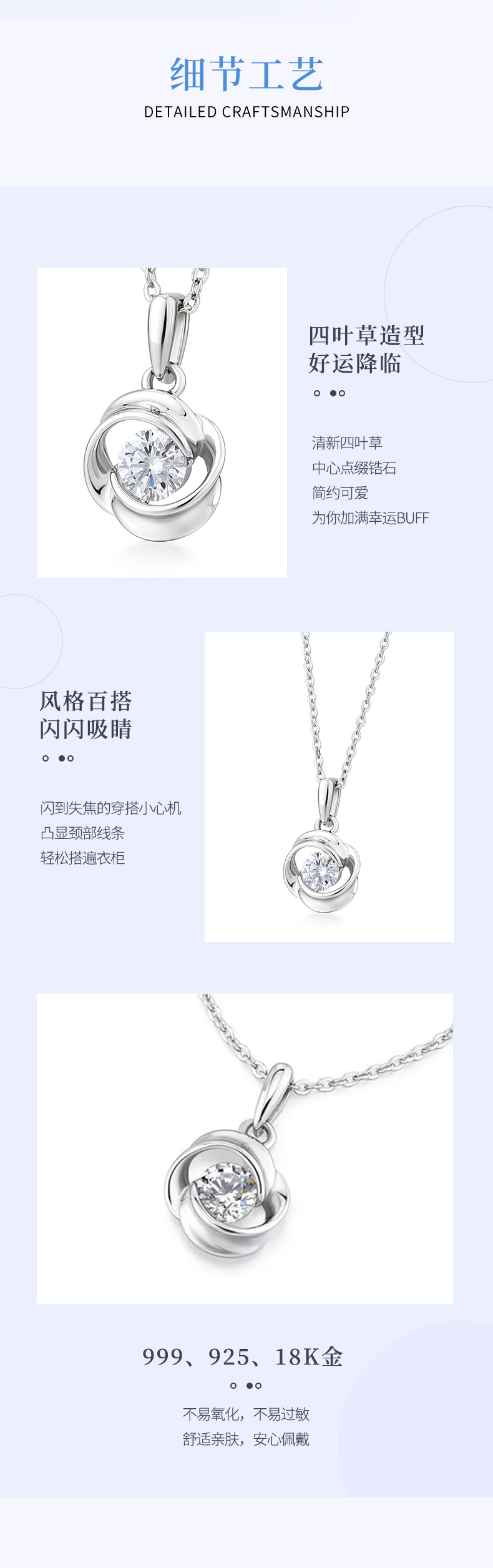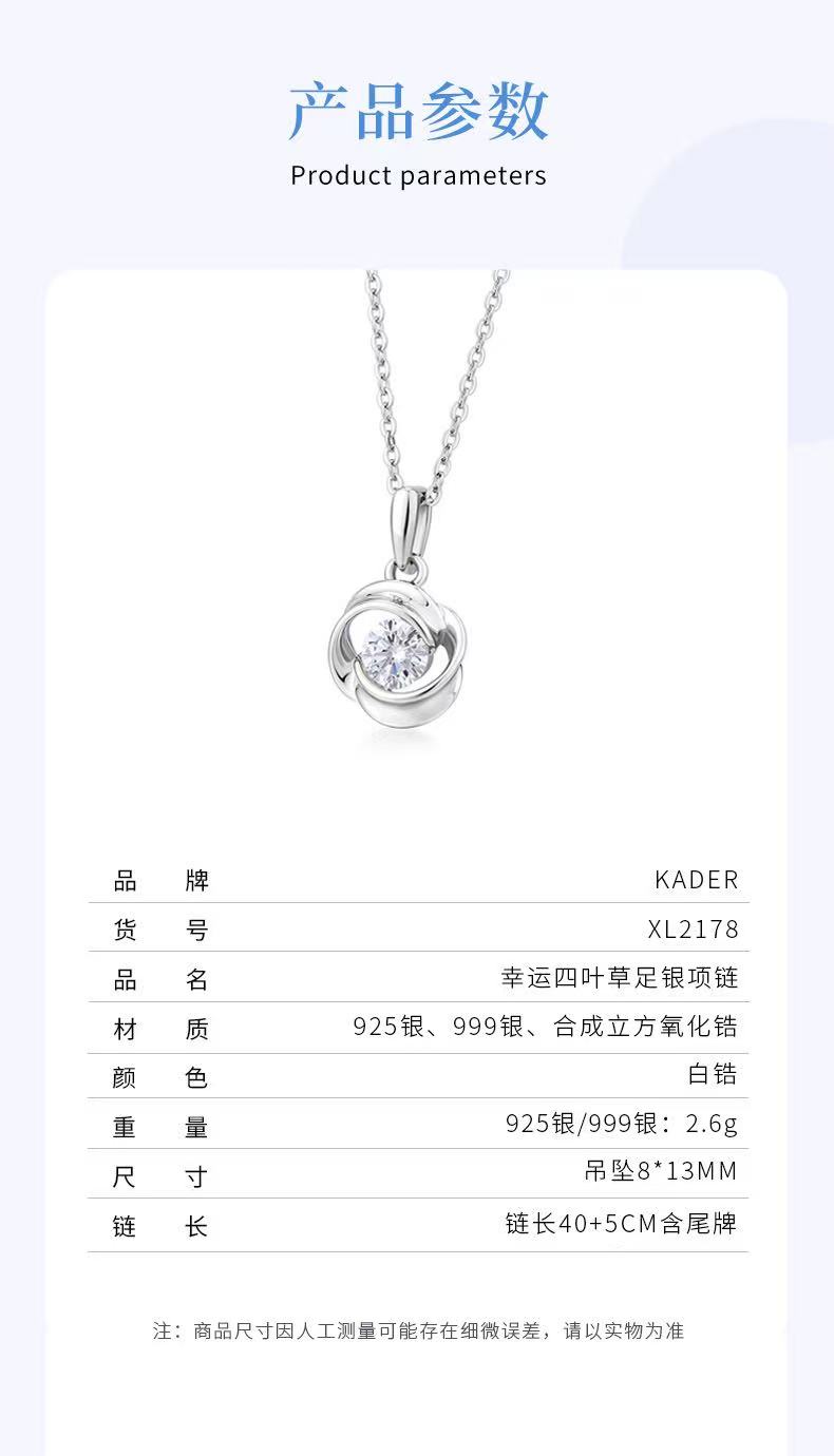 KADER卡蒂罗 四叶草项链 S925/S999纯银女锁骨链ins女士吊坠小众品牌