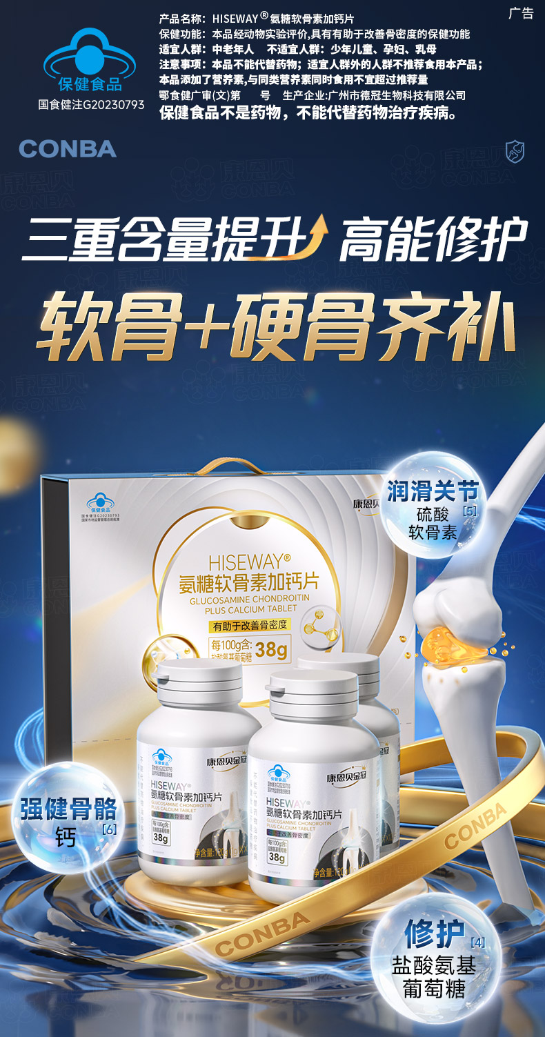 康恩贝氨糖软骨素加钙片礼盒(120片*3瓶)