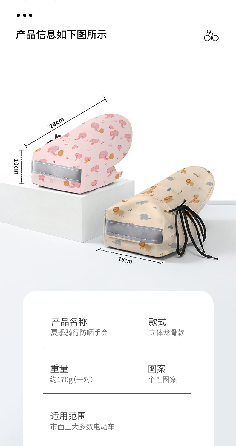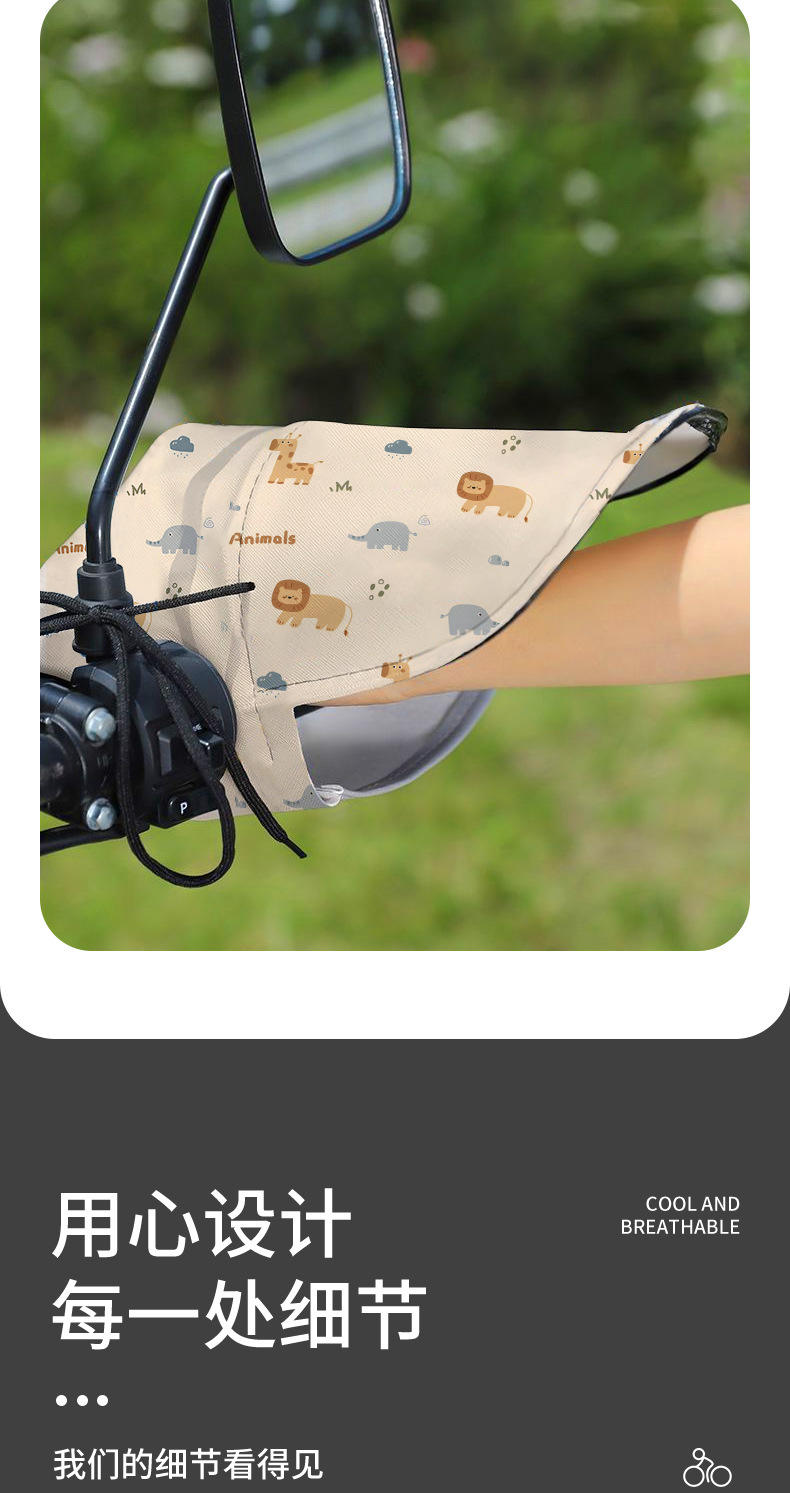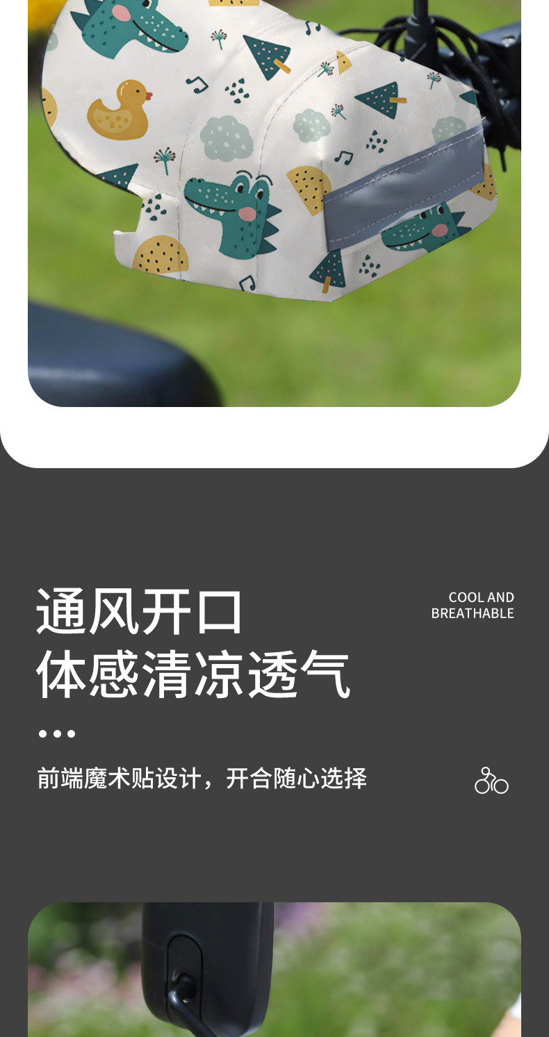 「春夏专用!通风开口」夏季电动车遮阳车把手套 摩托车防晒护手罩隔热卡通透气防风手把套骑行工具