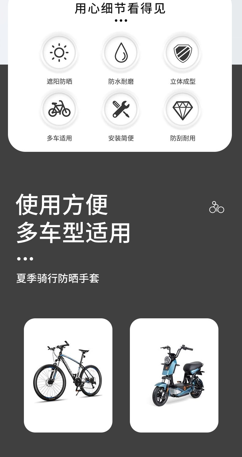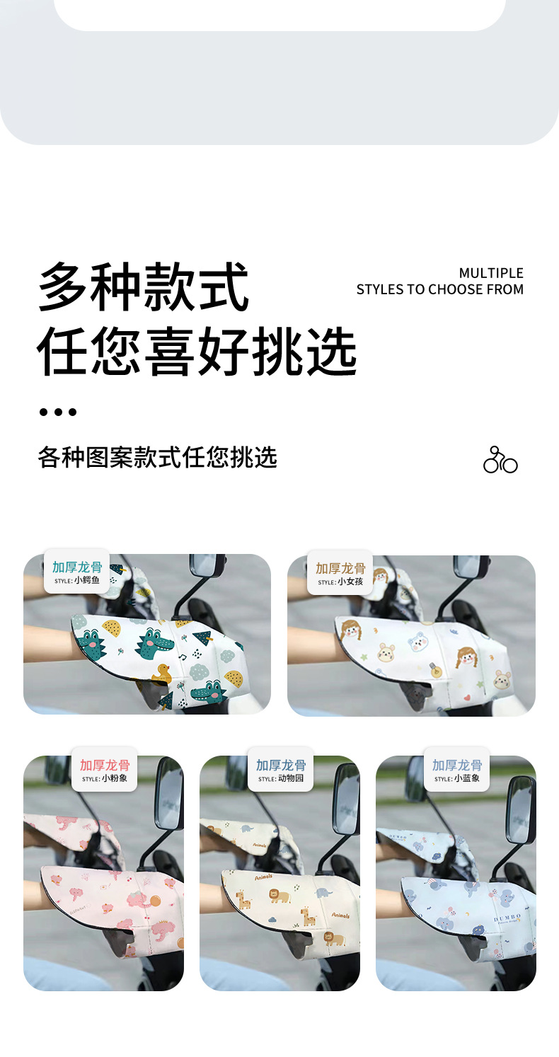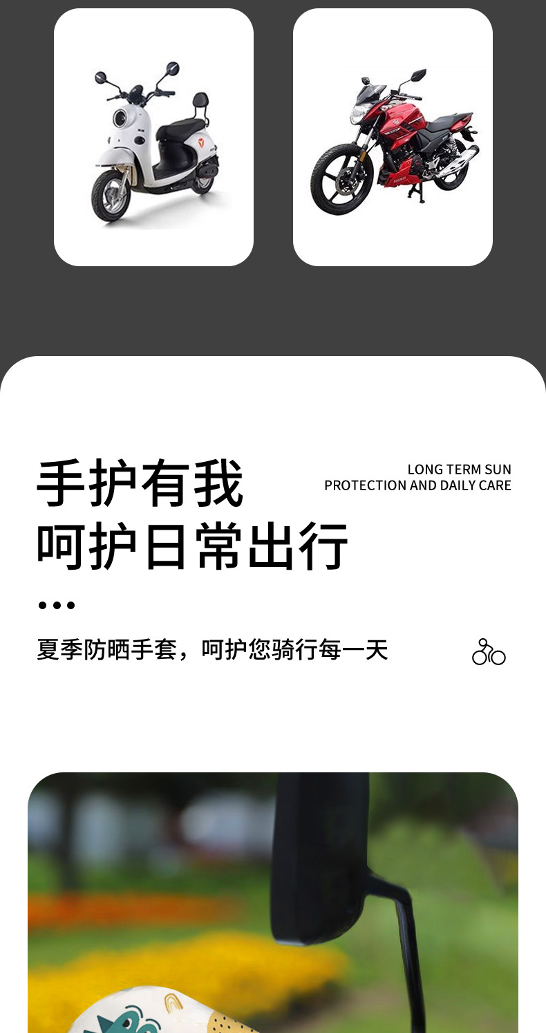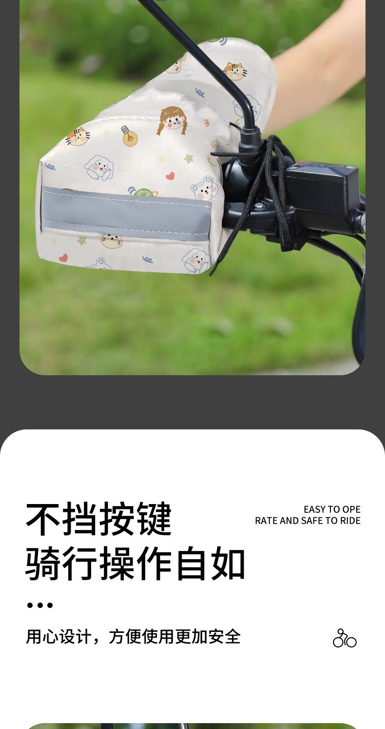 「春夏专用!通风开口」夏季电动车遮阳车把手套 摩托车防晒护手罩隔热卡通透气防风手把套骑行工具