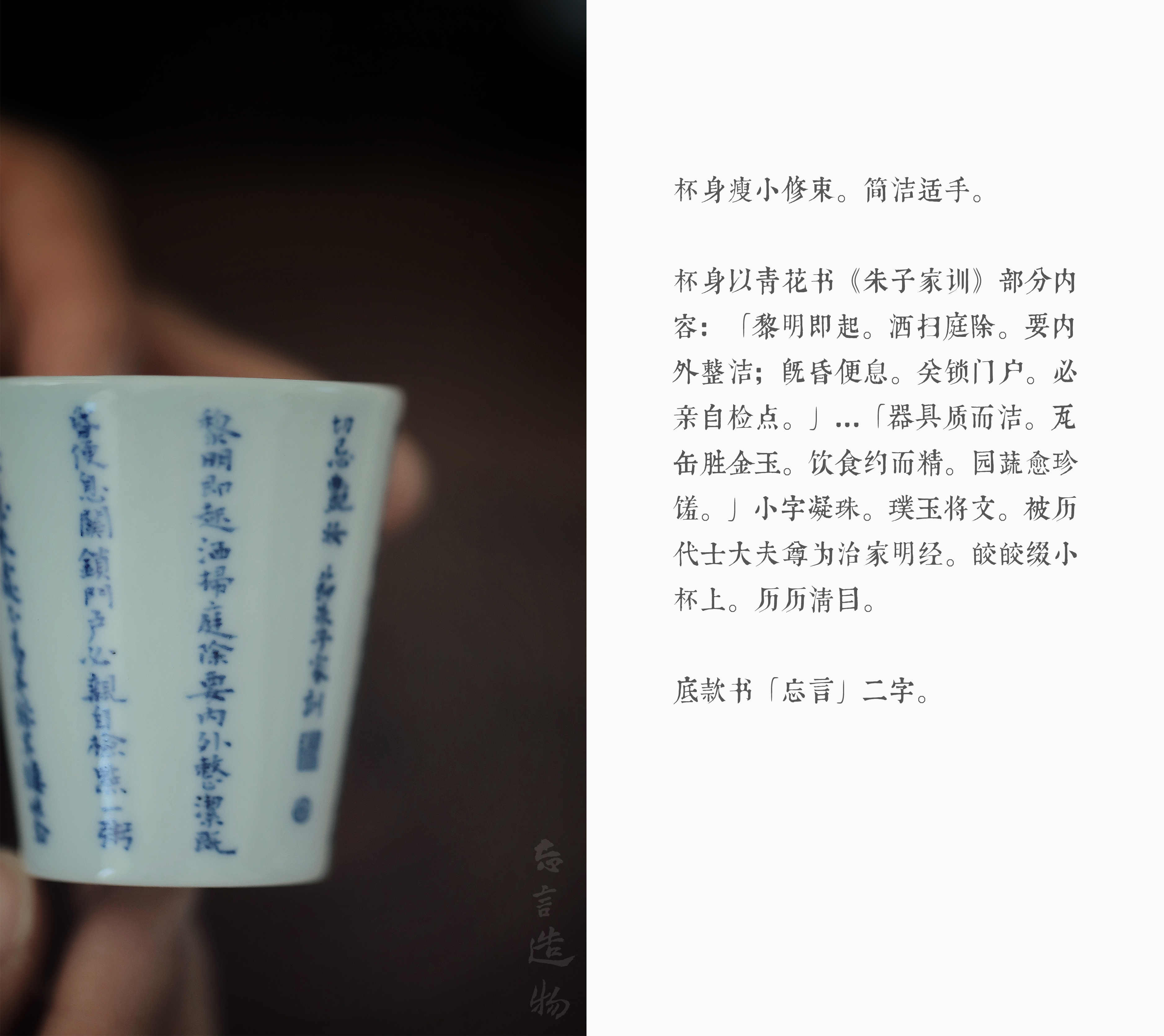 忘言 朱子家训品杯 景德镇陶瓷主人杯单茶杯品茗杯