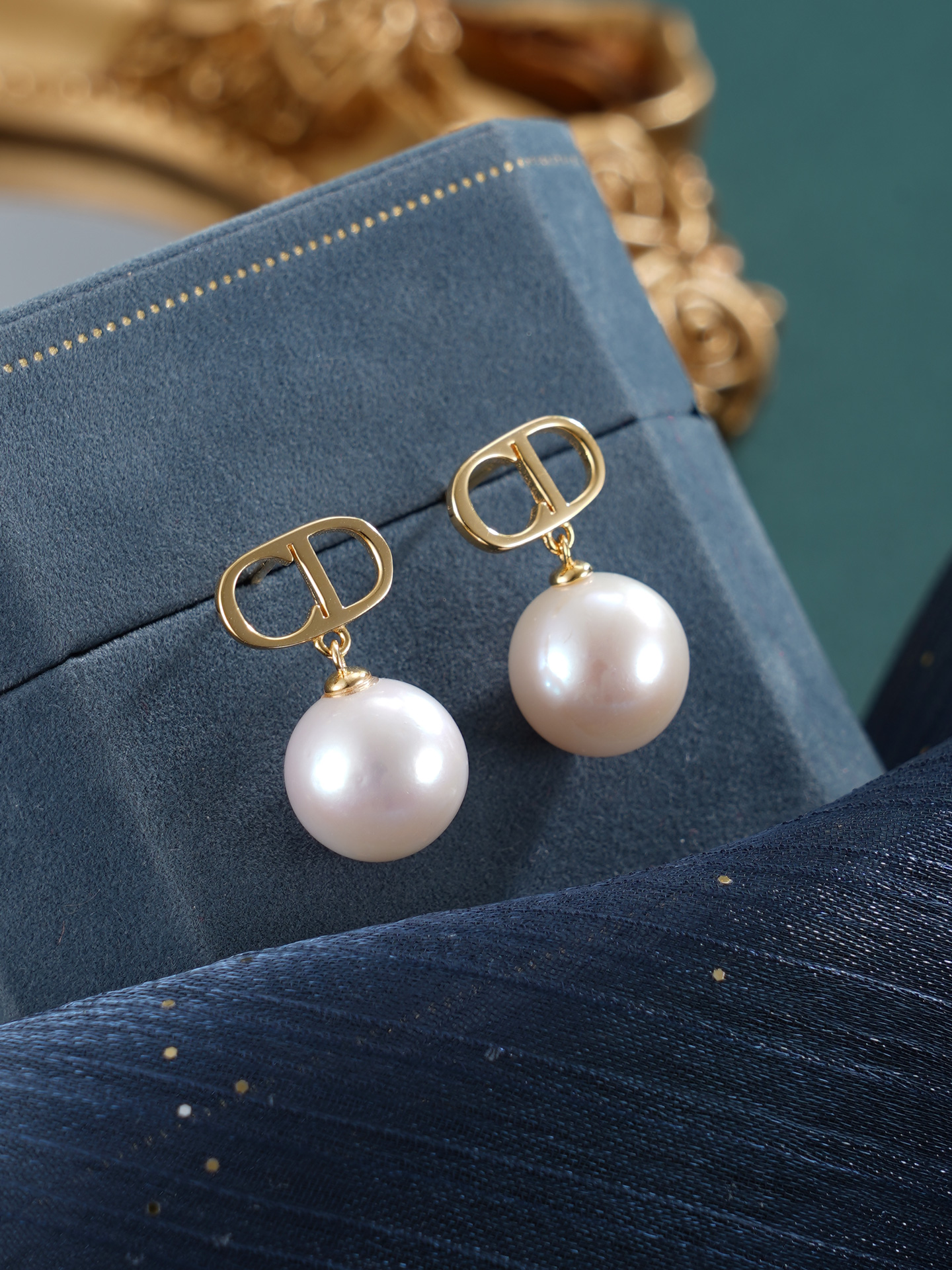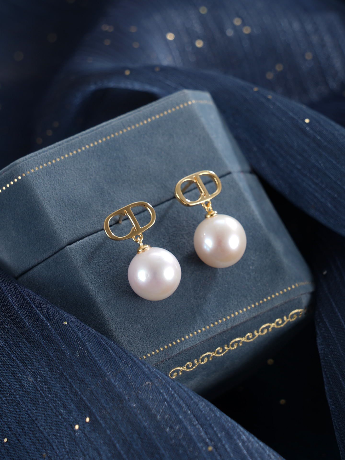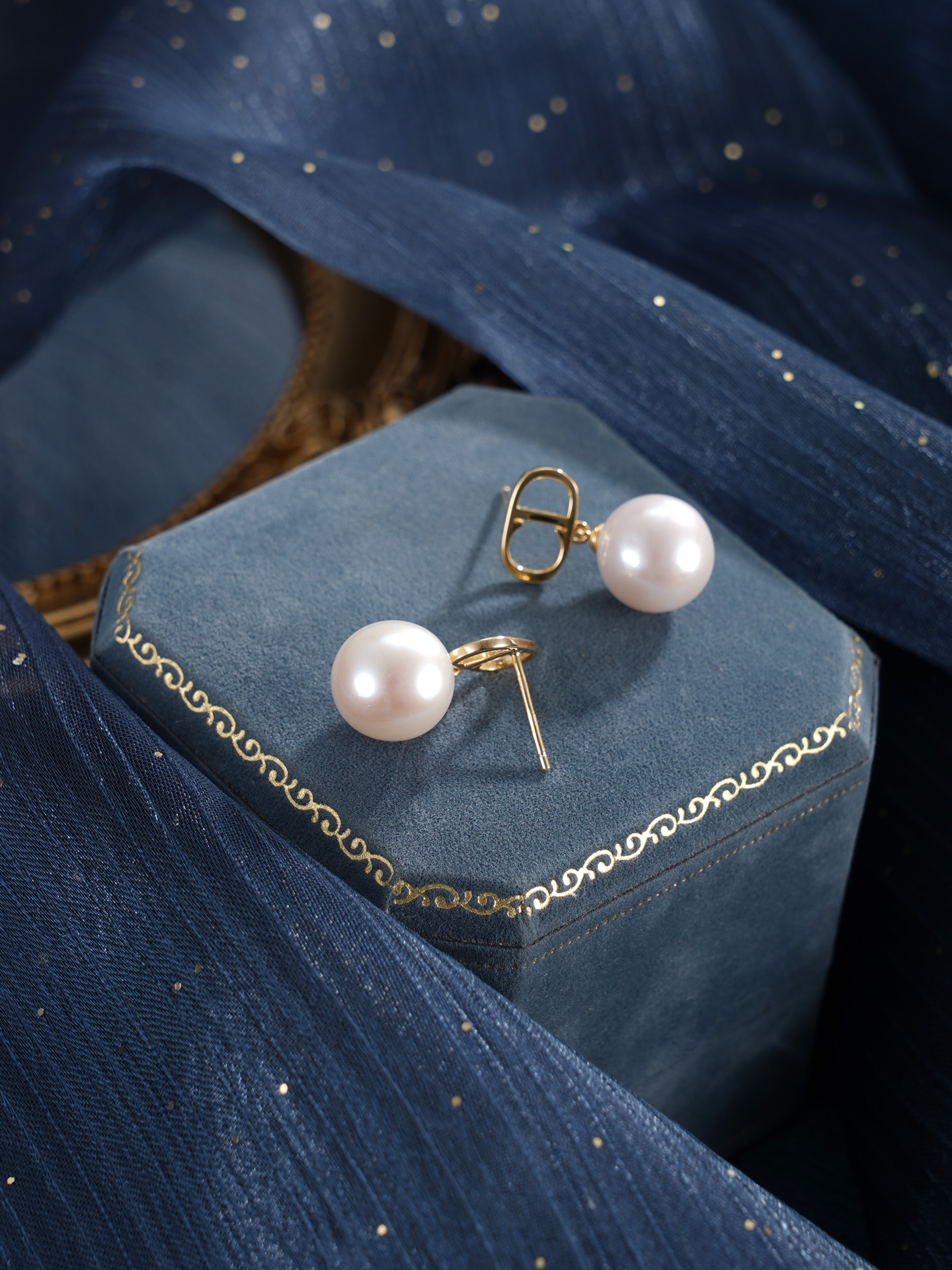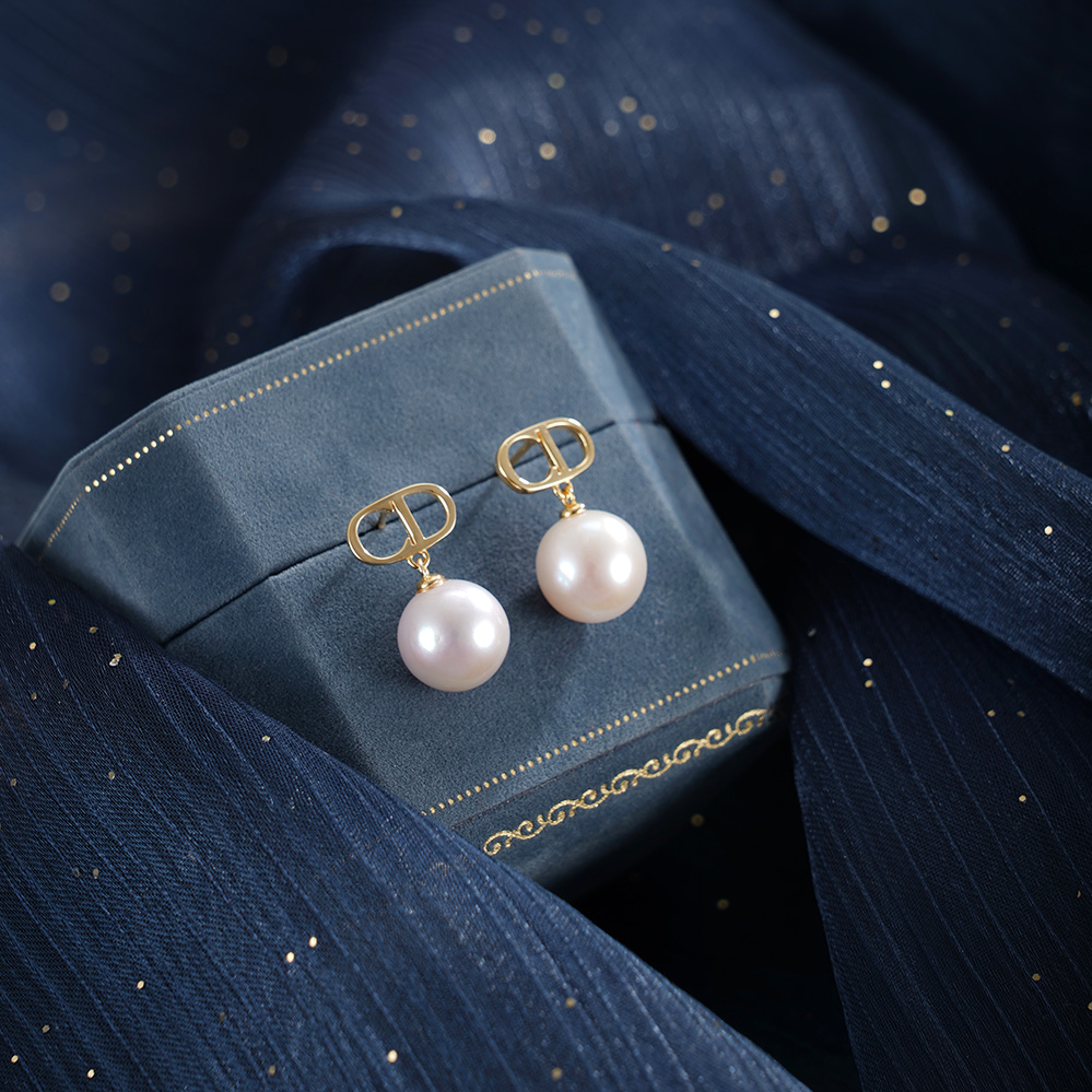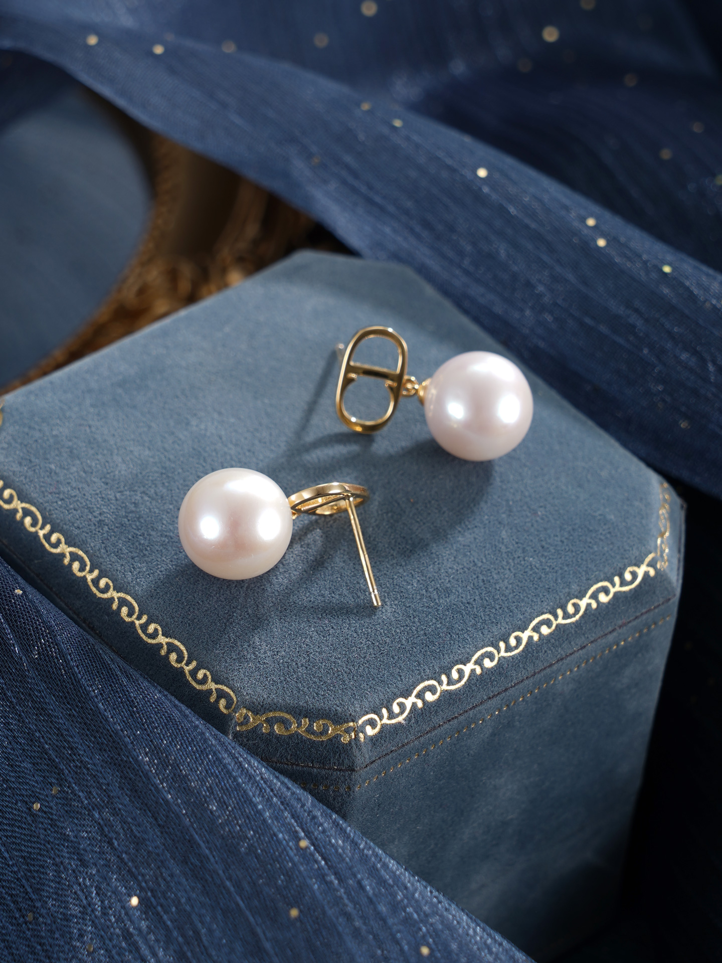 子佩集【简愫】银S925珍珠惜王妃耳钉【MLEH009】10.5mm珠镀金日字扣2601