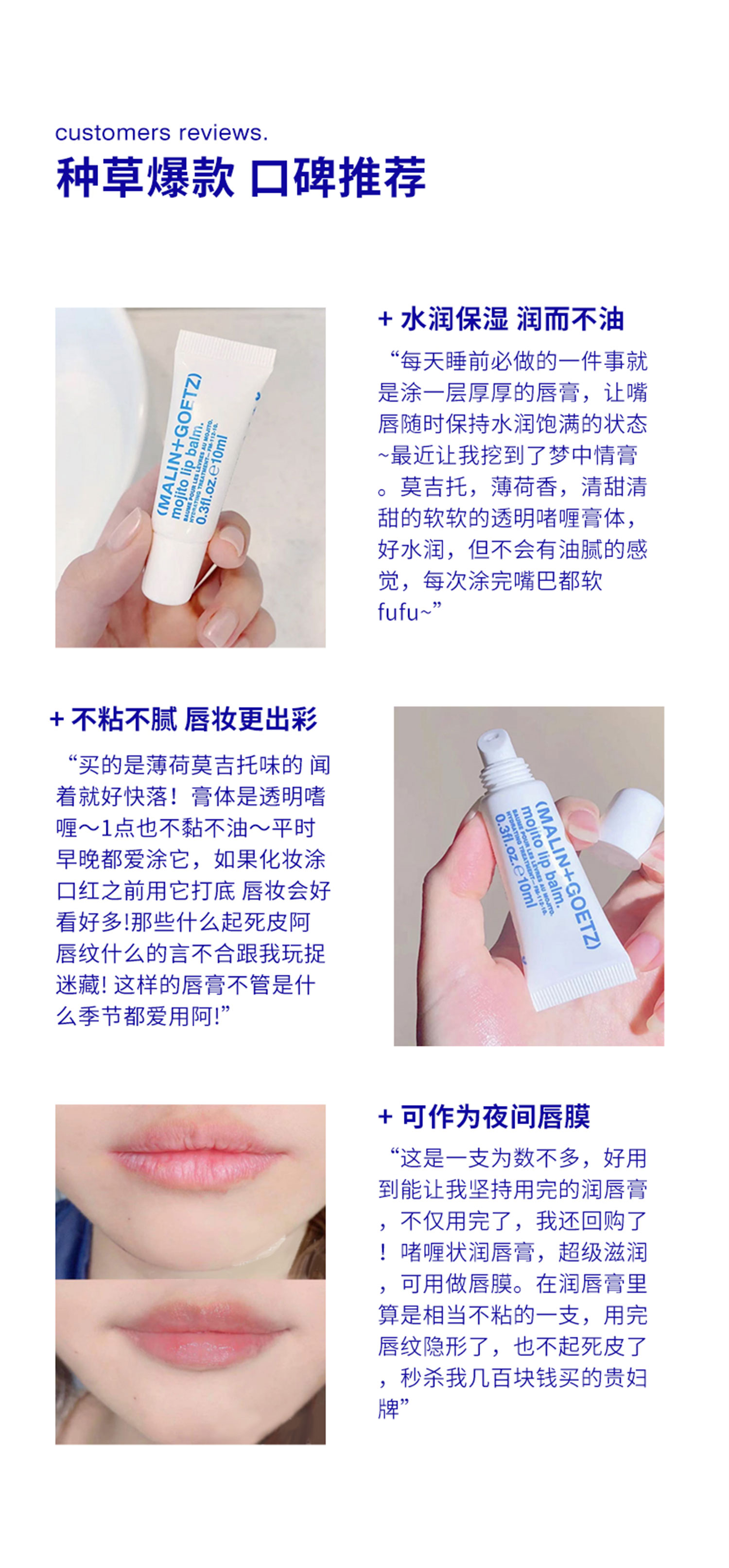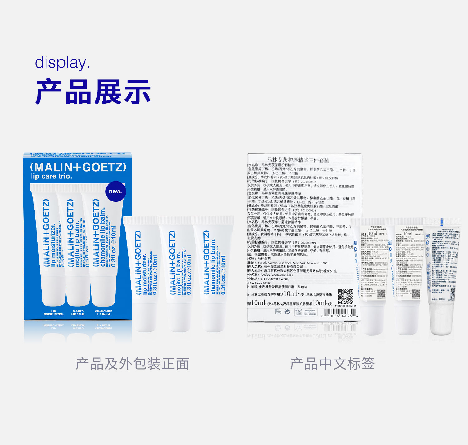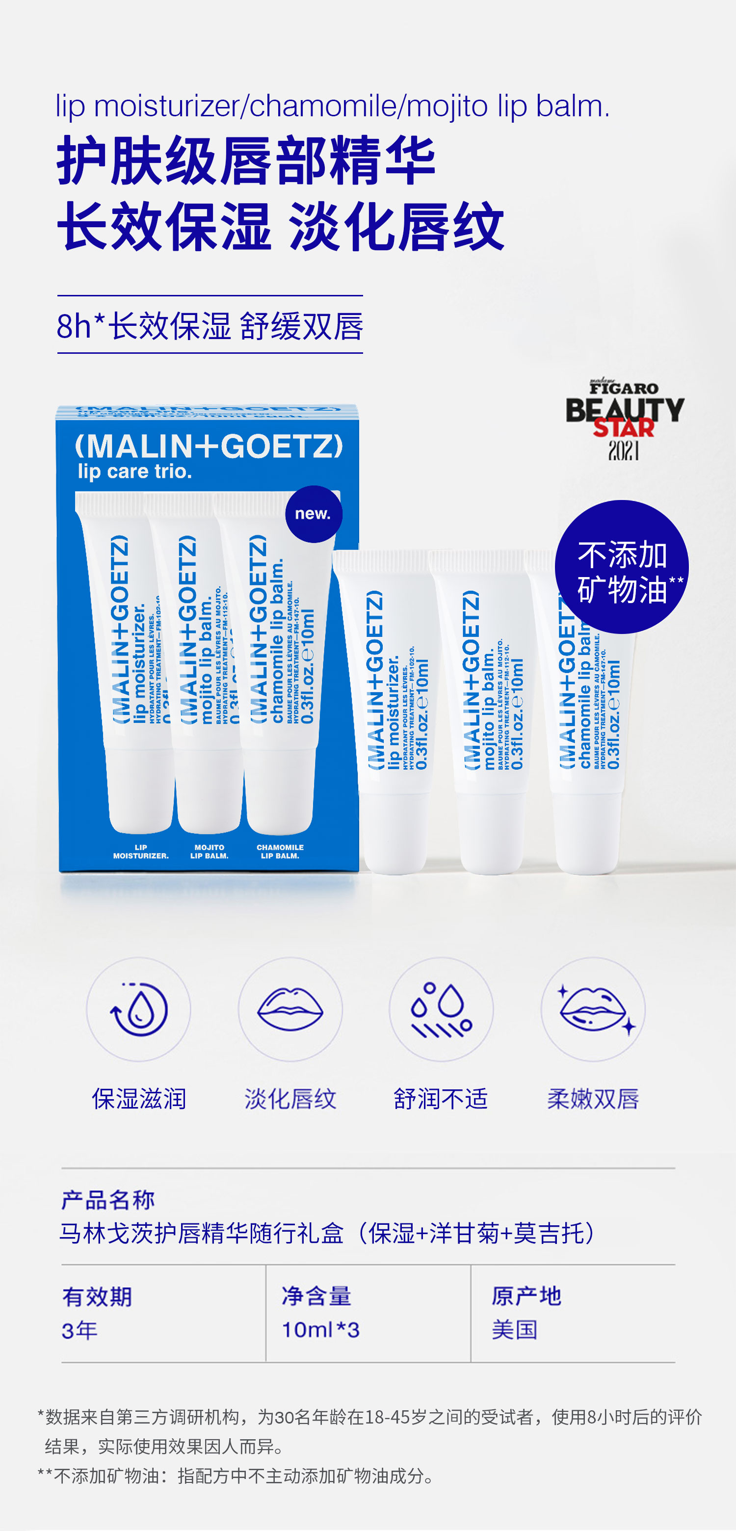 品牌直发 MALIN+GOETZ 护唇精华 10mLx3支装 (原味+莫吉托+洋甘菊)