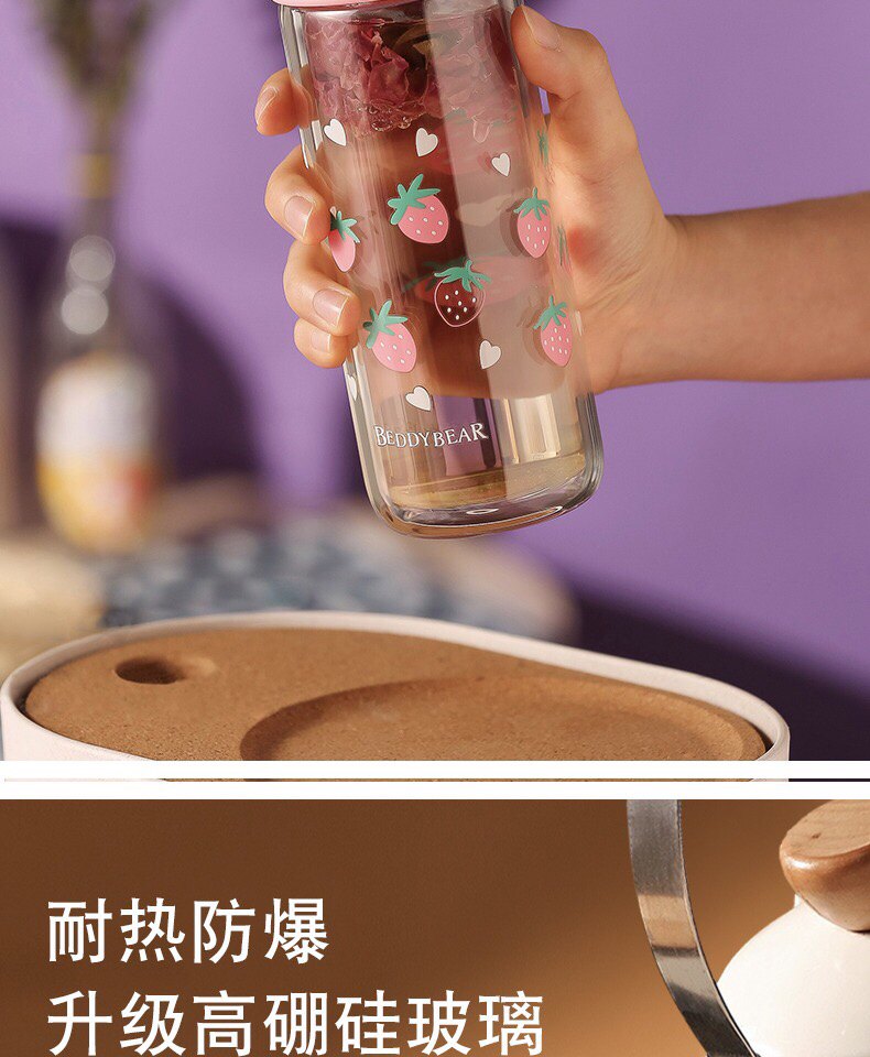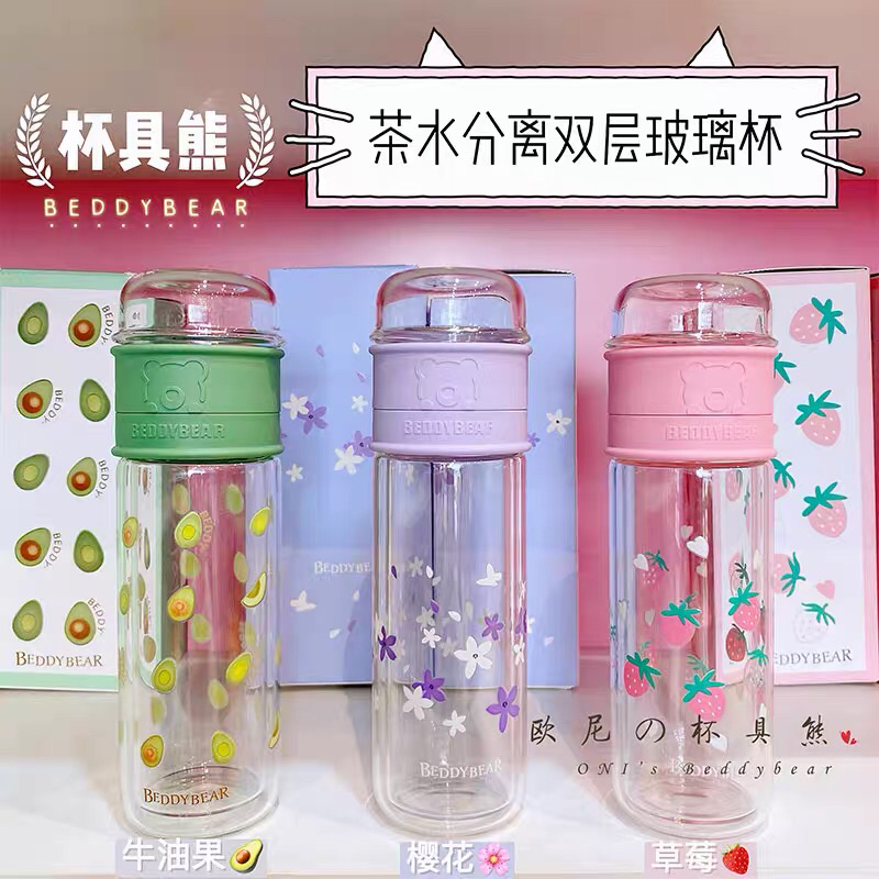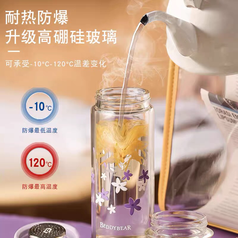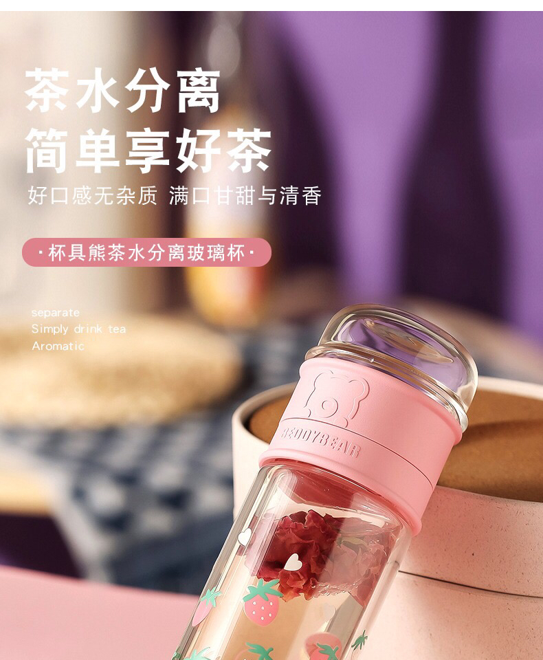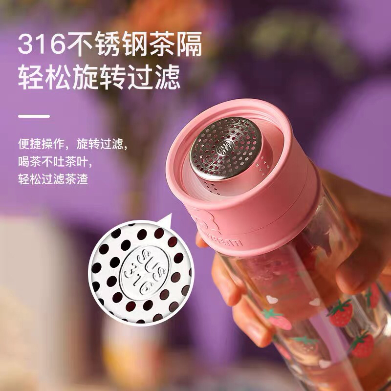 杯具熊茶水分离杯-高档双层高硼硅玻璃杯泡茶过滤便携-会员8折-无备注随机发货