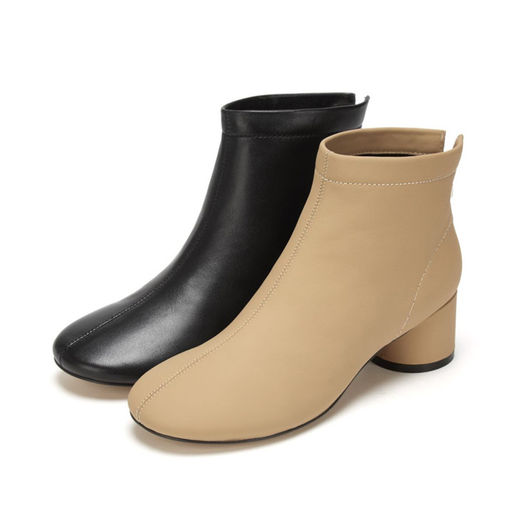 西村名物秋冬新款2020羊皮中跟短靴X20DS42081