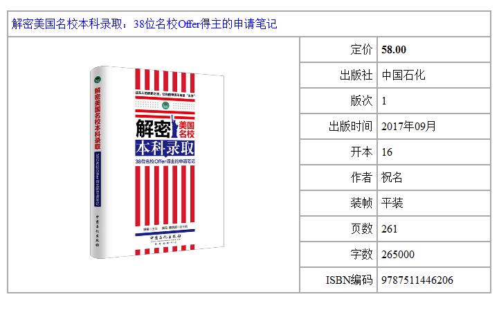 从成绩、活动、选校、文书、推荐信、面试等诸多核心方面解读“究竟什么样的同学更被美国名校青睐”的问题。 作者都是亲