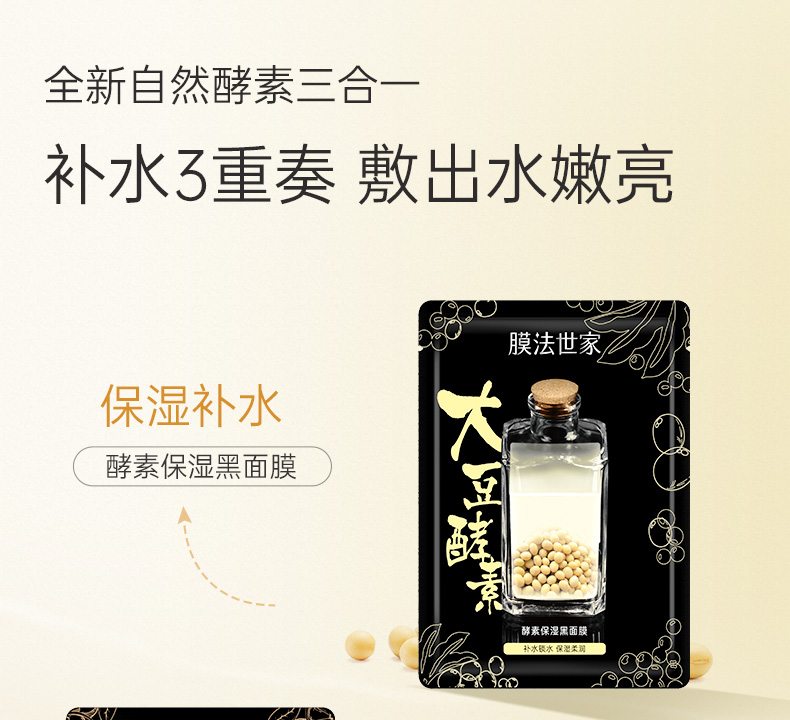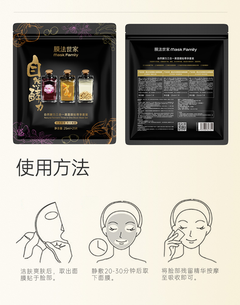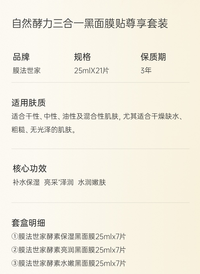 【水嫩透亮】膜法世家自然酵力三合一黑面膜
