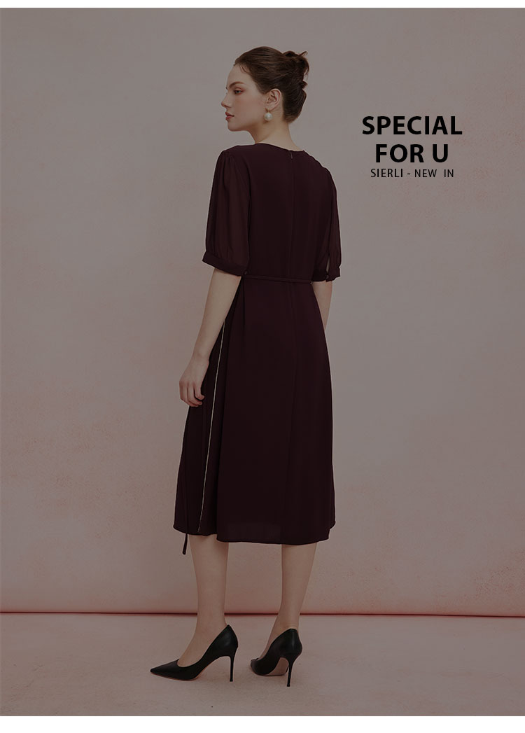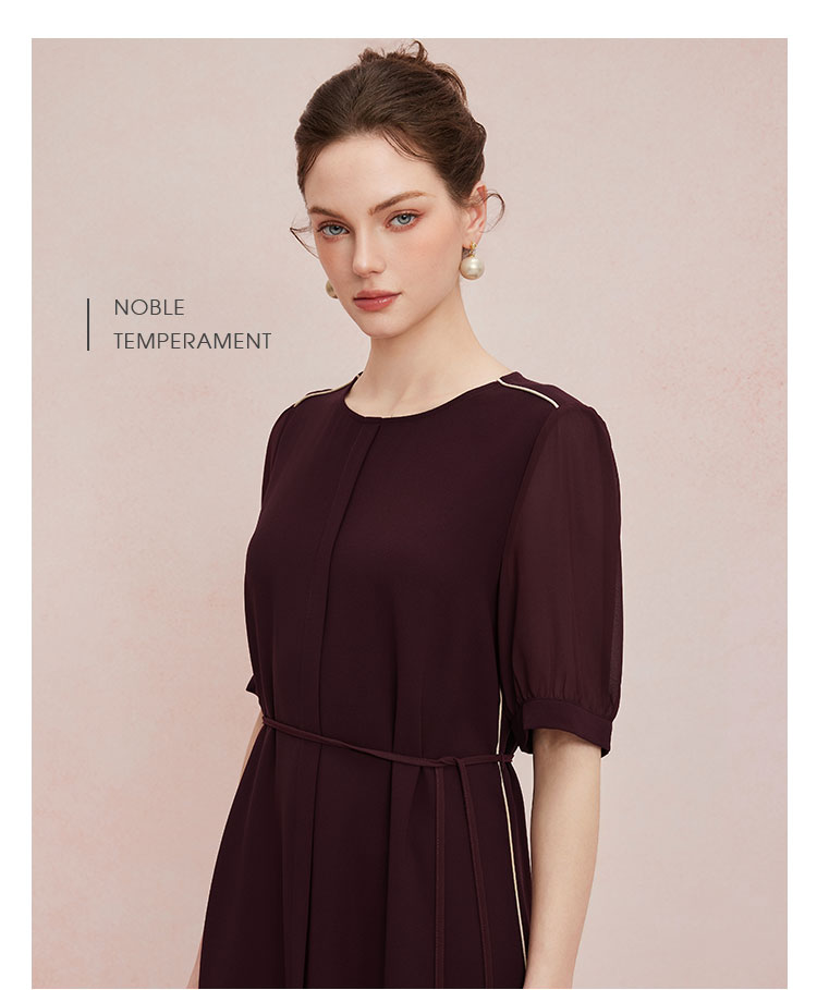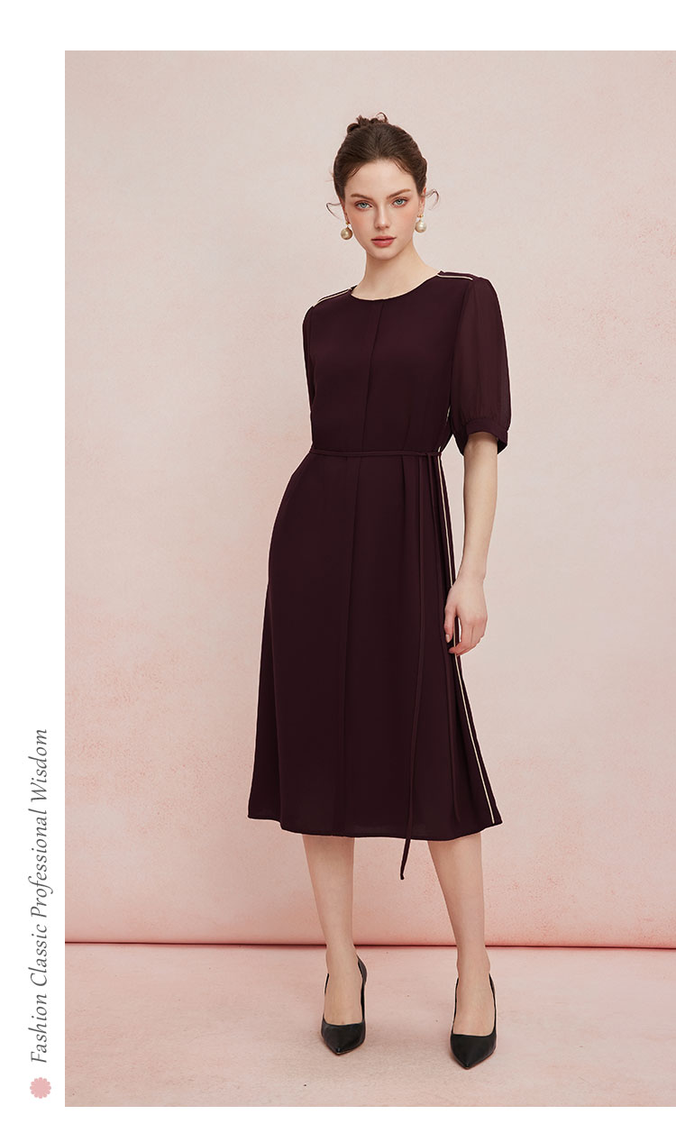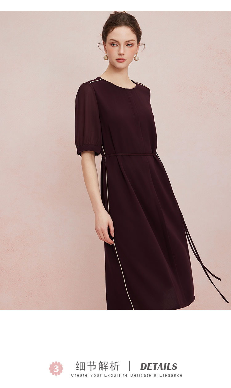 QF856斯尔丽2025夏季新款简约时尚通勤日常撞色分割显瘦宽松好穿连衣裙