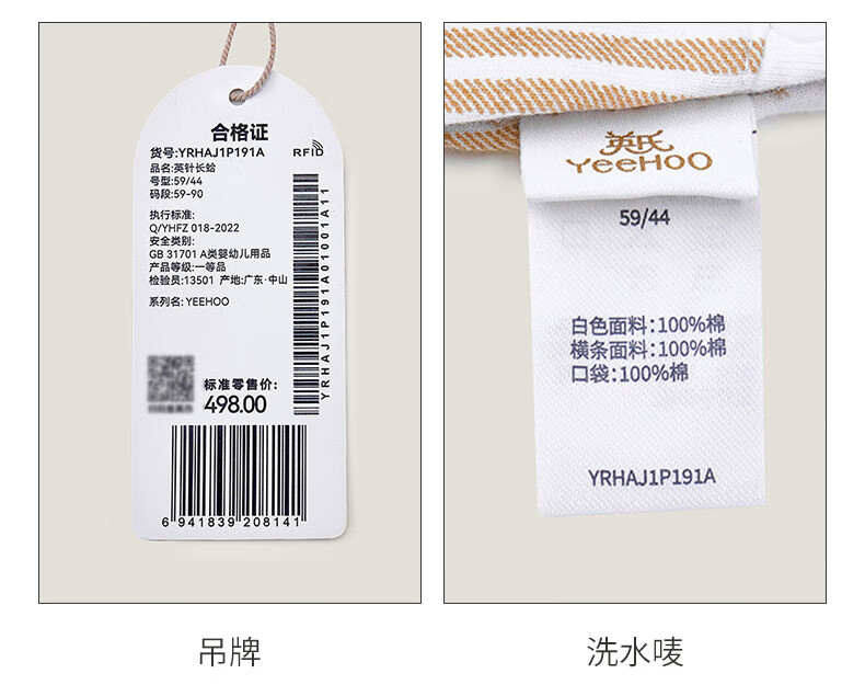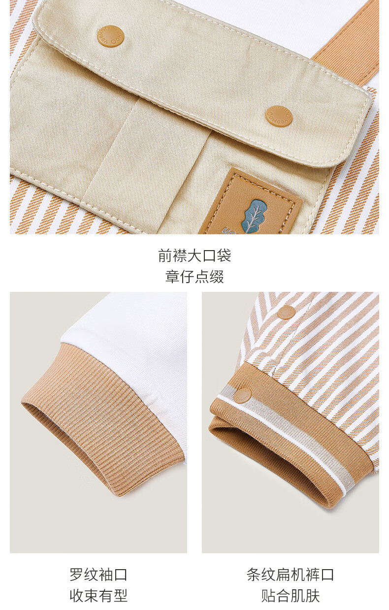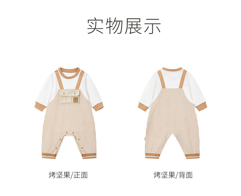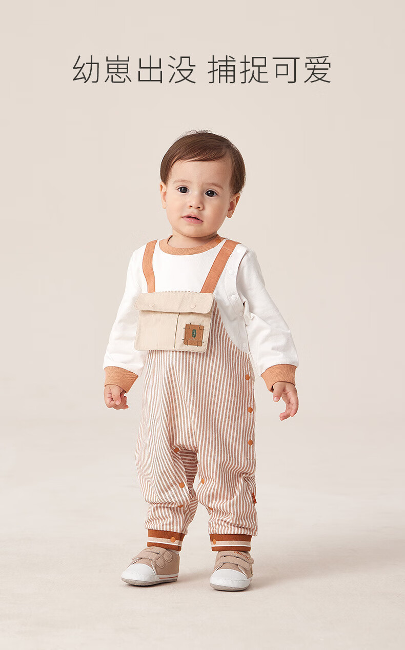 英氏婴儿哈衣男宝纯棉假两件背带连体衣爬服23春夏款YRHAJ1P191A