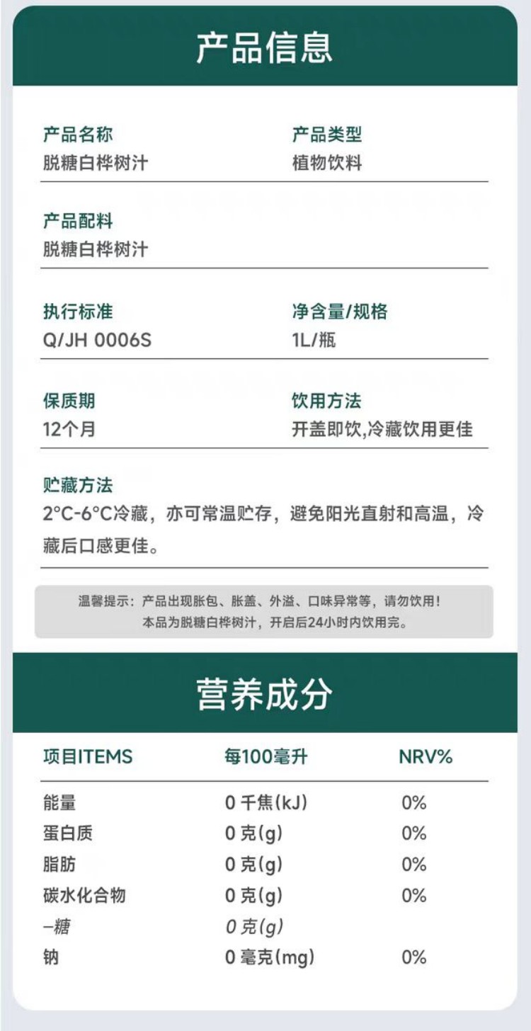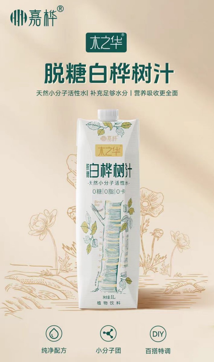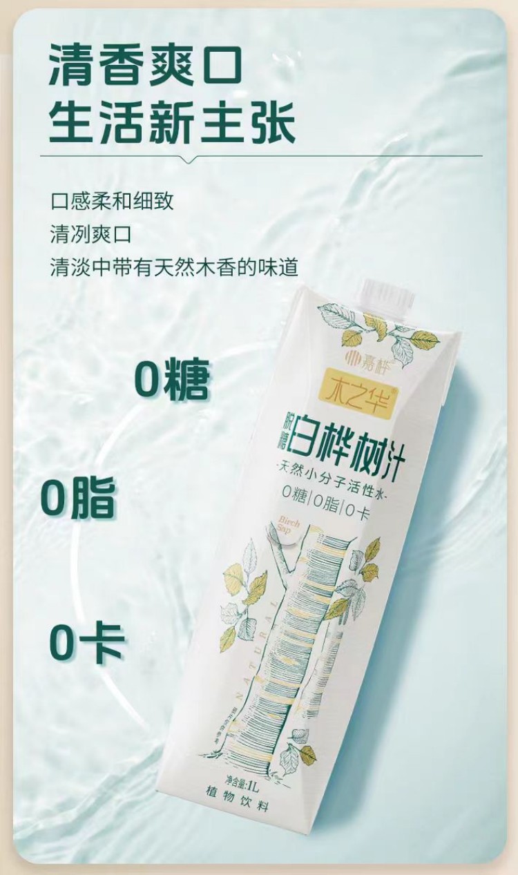 自营(山蒙海时)-嘉桦脱糖白桦树汁1L*6瓶整箱