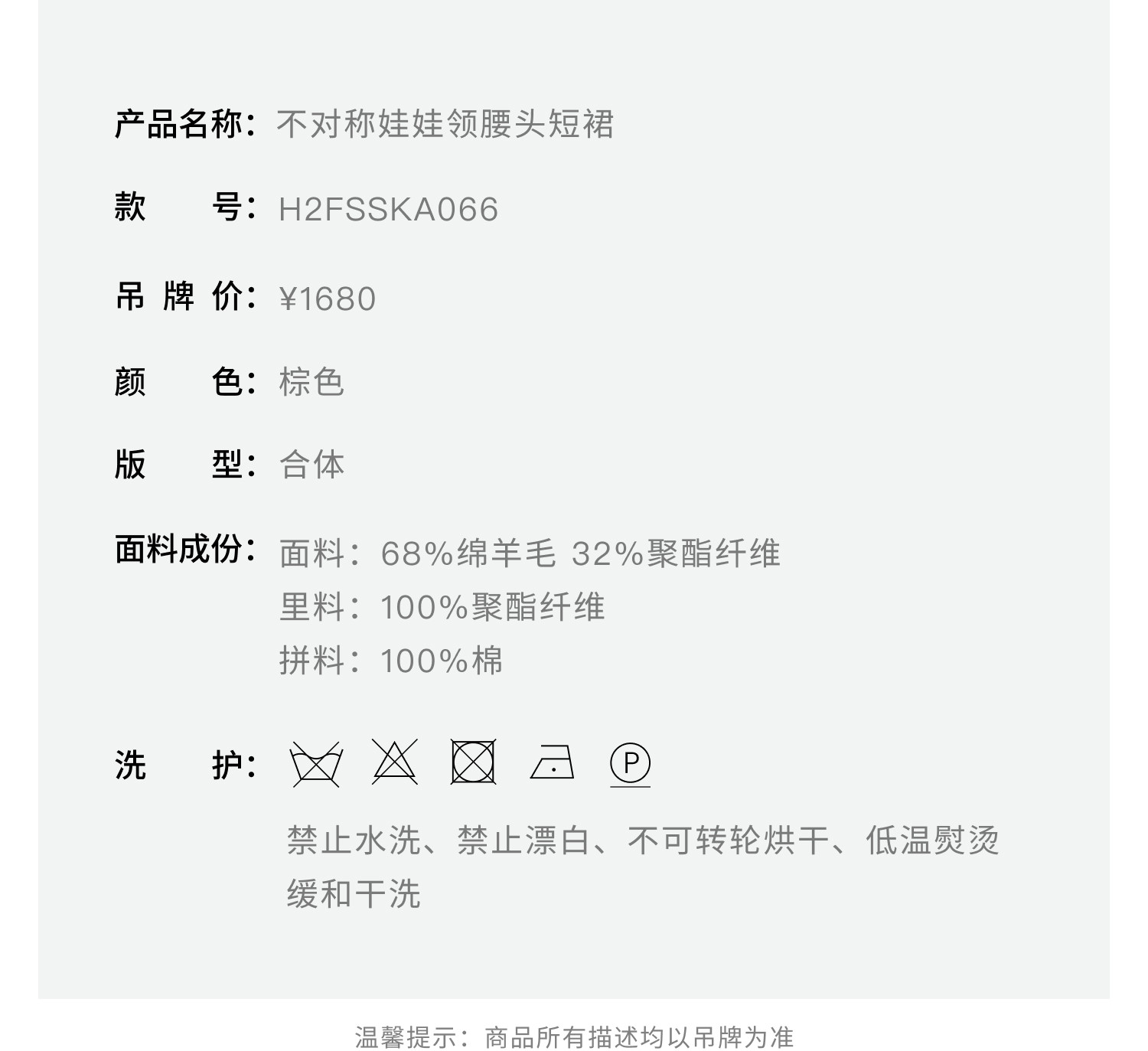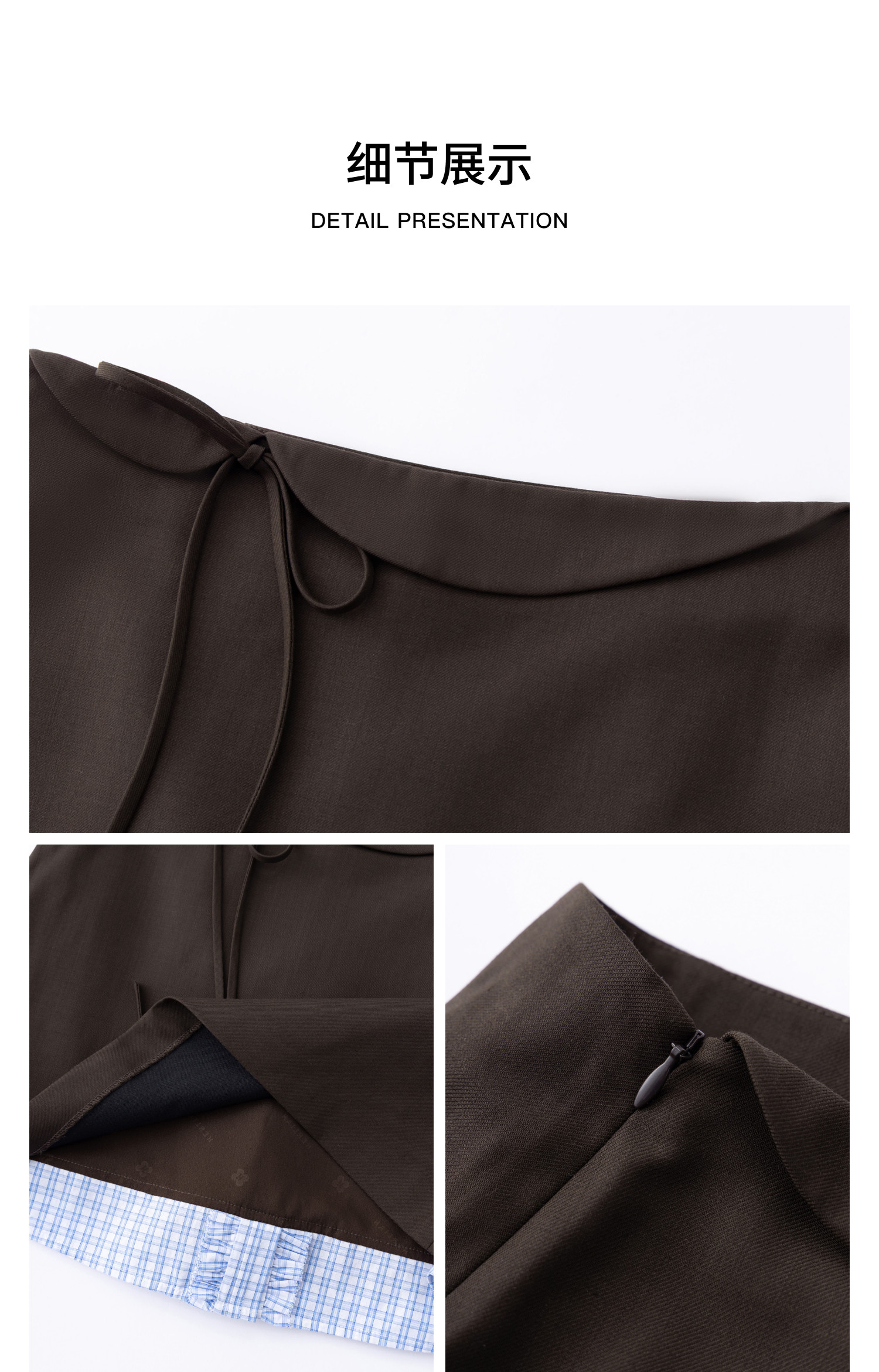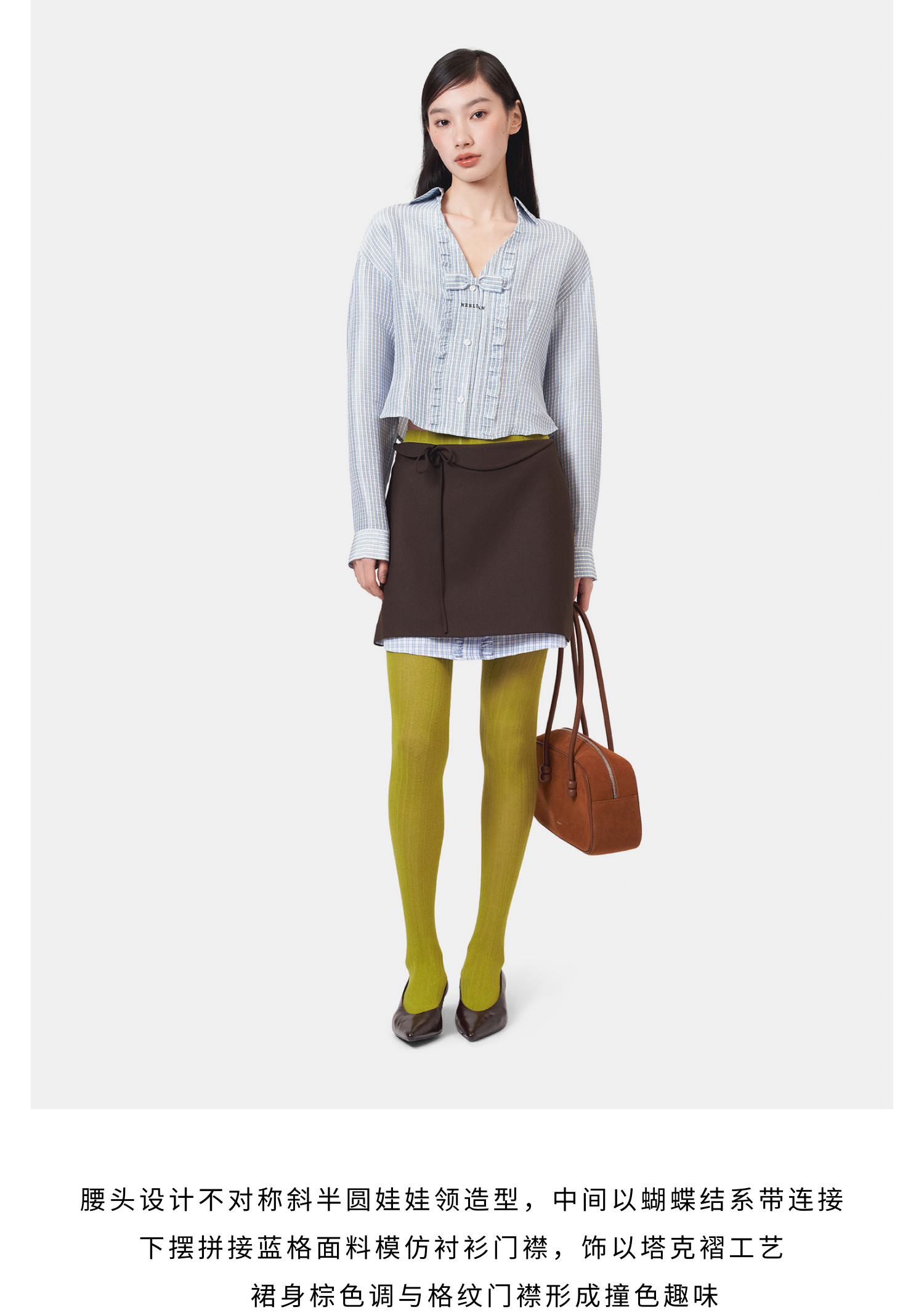 HERLIAN 2026年春季新品不对称娃娃领腰头拼接撞色女短裙A字裙