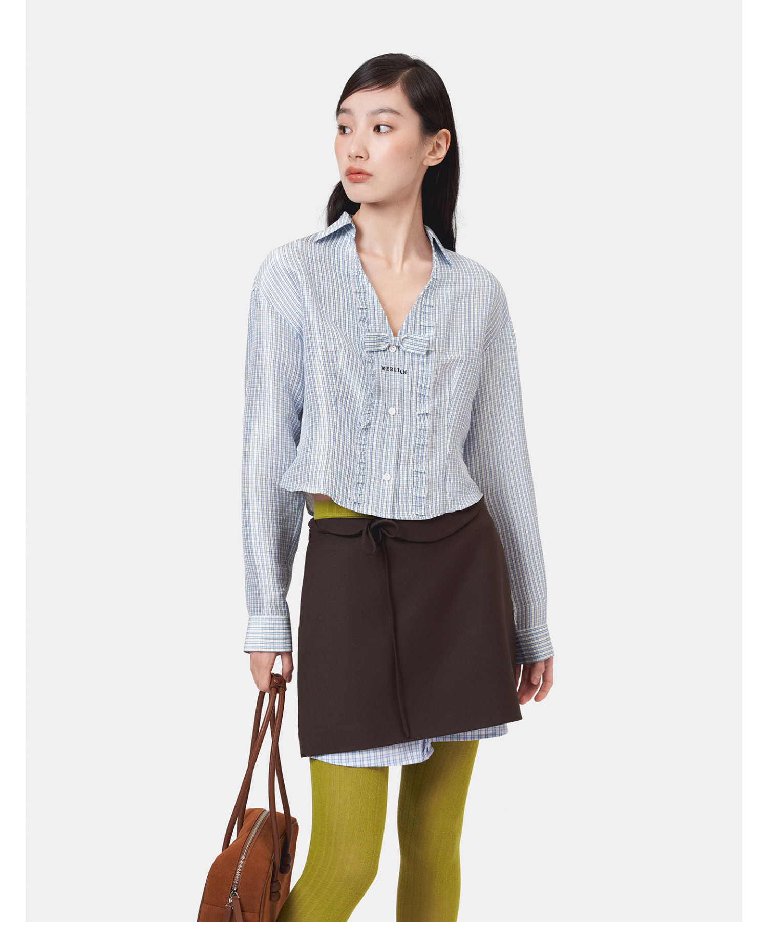 HERLIAN 2026年春夏新品蓝格塔克A字短裙女桑蚕丝高腰半裙