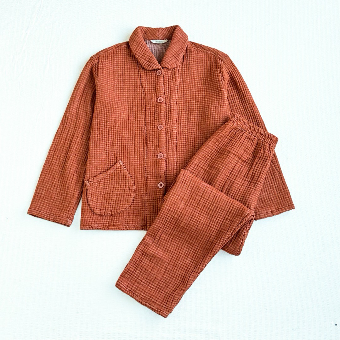 我们的家居服不仅适合在家穿着,也能轻松搭配出街,特殊的剪裁设计,完成时尚日常搭配。