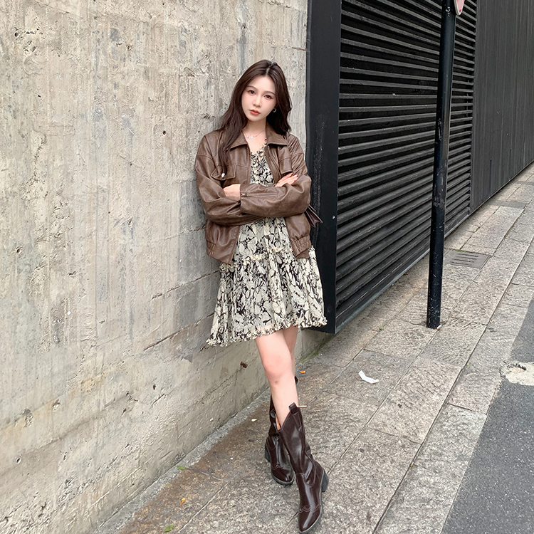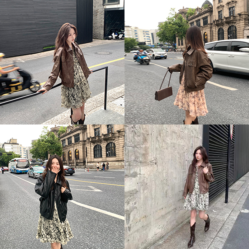 金蘑菇菇 Newtown落日时分/早秋主推系列!复古温柔感皮衣秋季短款