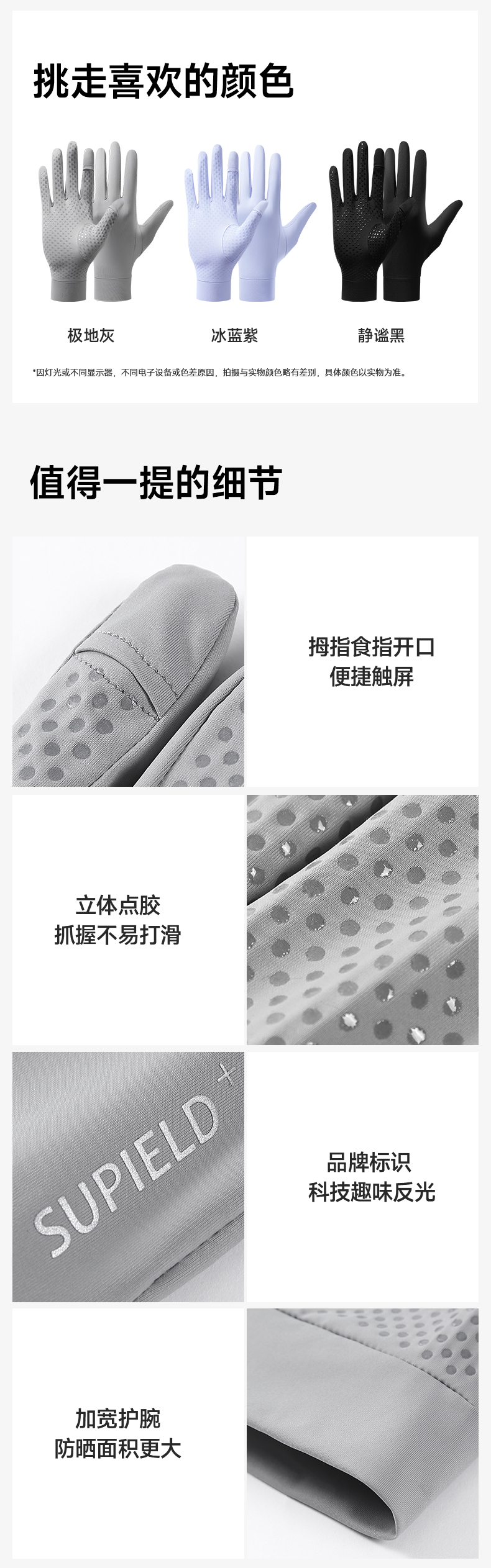 素湃Supield全波段防晒手套夏季户外防滑手套女防紫外线开车骑行