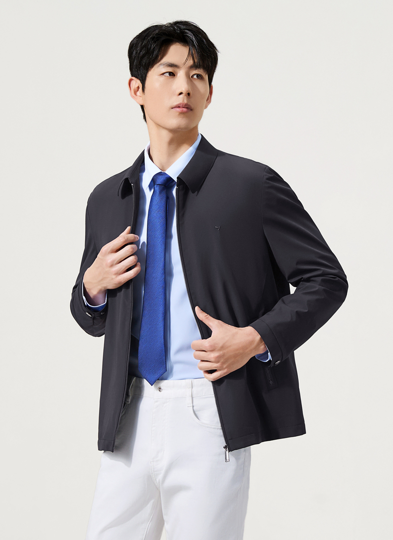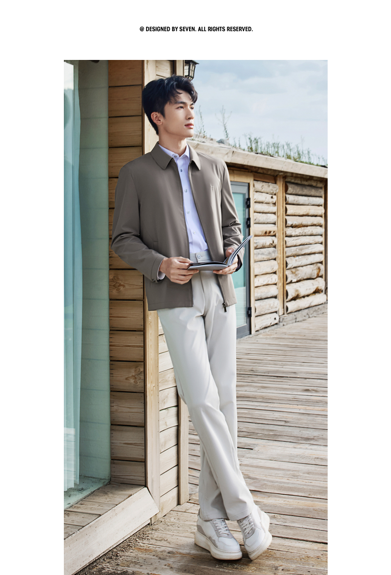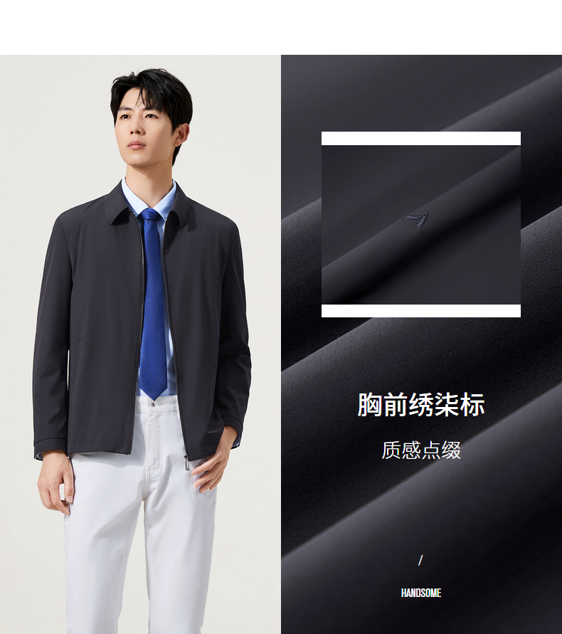 【经典翻领茄克】柒牌男装2025秋季新品潮流暗提花中青年夹克外套129K70020