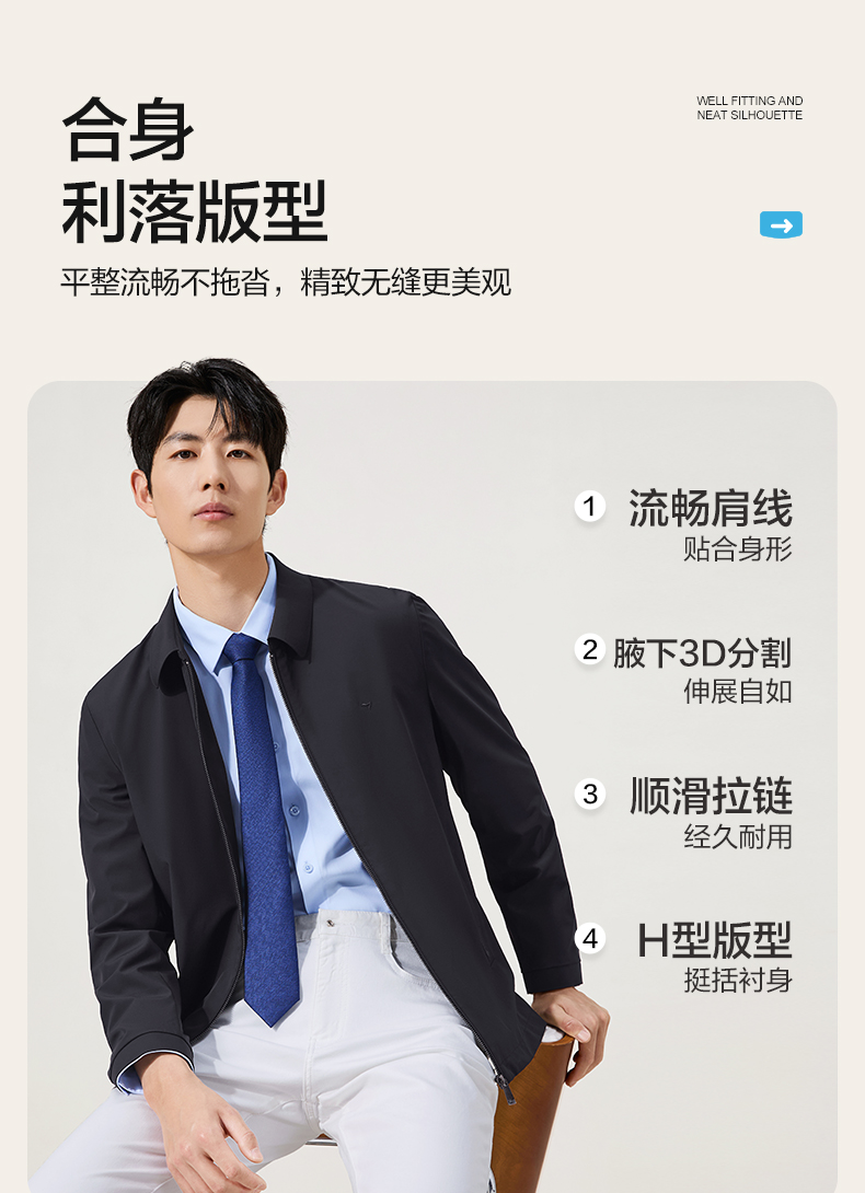 【无缝翻领茄克】柒牌男装2025秋季商务防风爸爸干部行政夹克外套129K70020