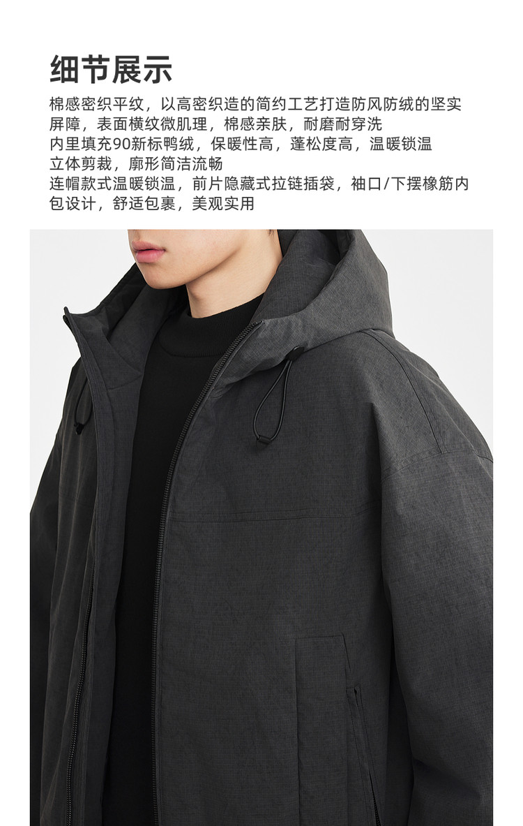 墨麦客男装2025年冬季新款加厚新标白鸭绒连帽羽绒服男士宽松外套