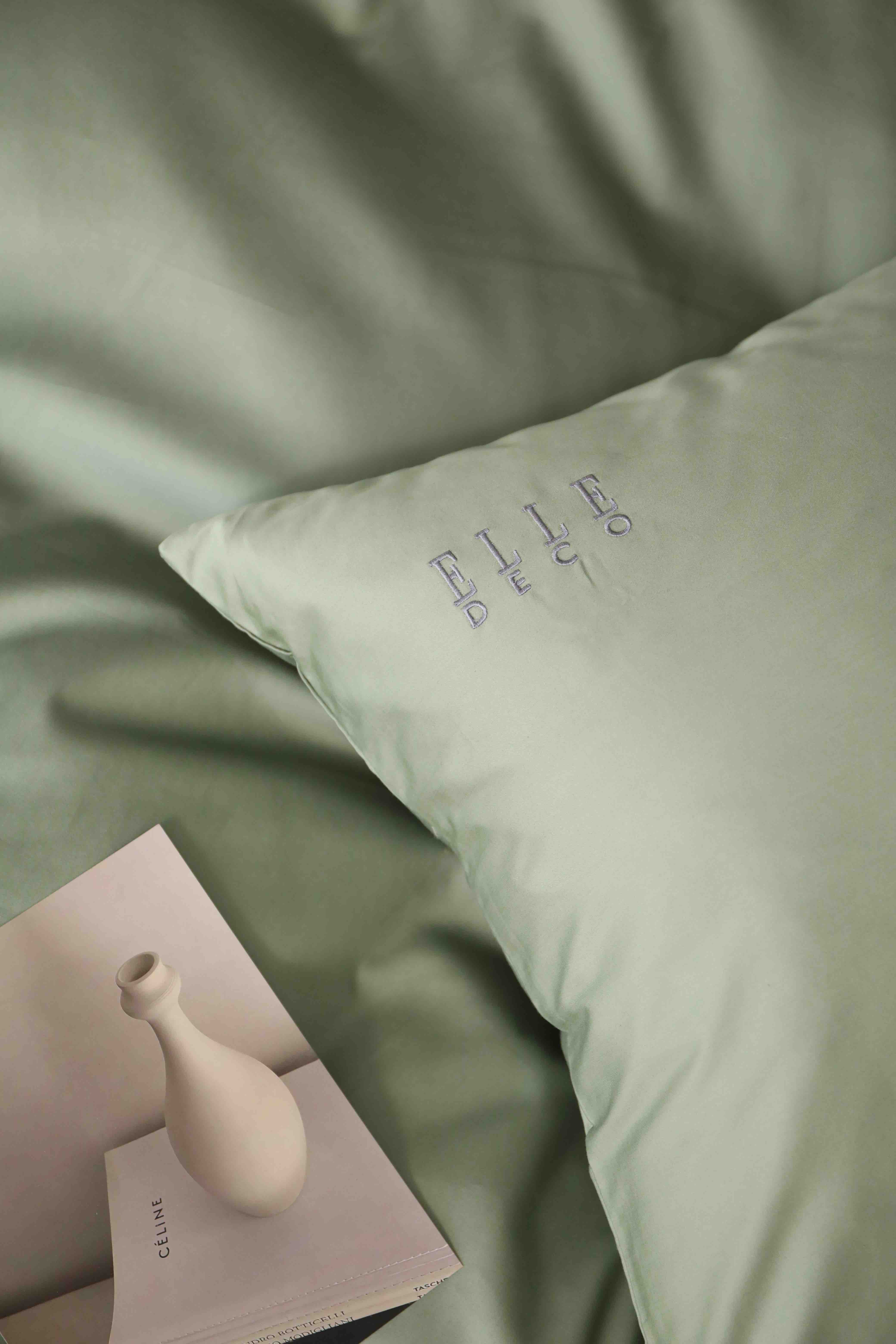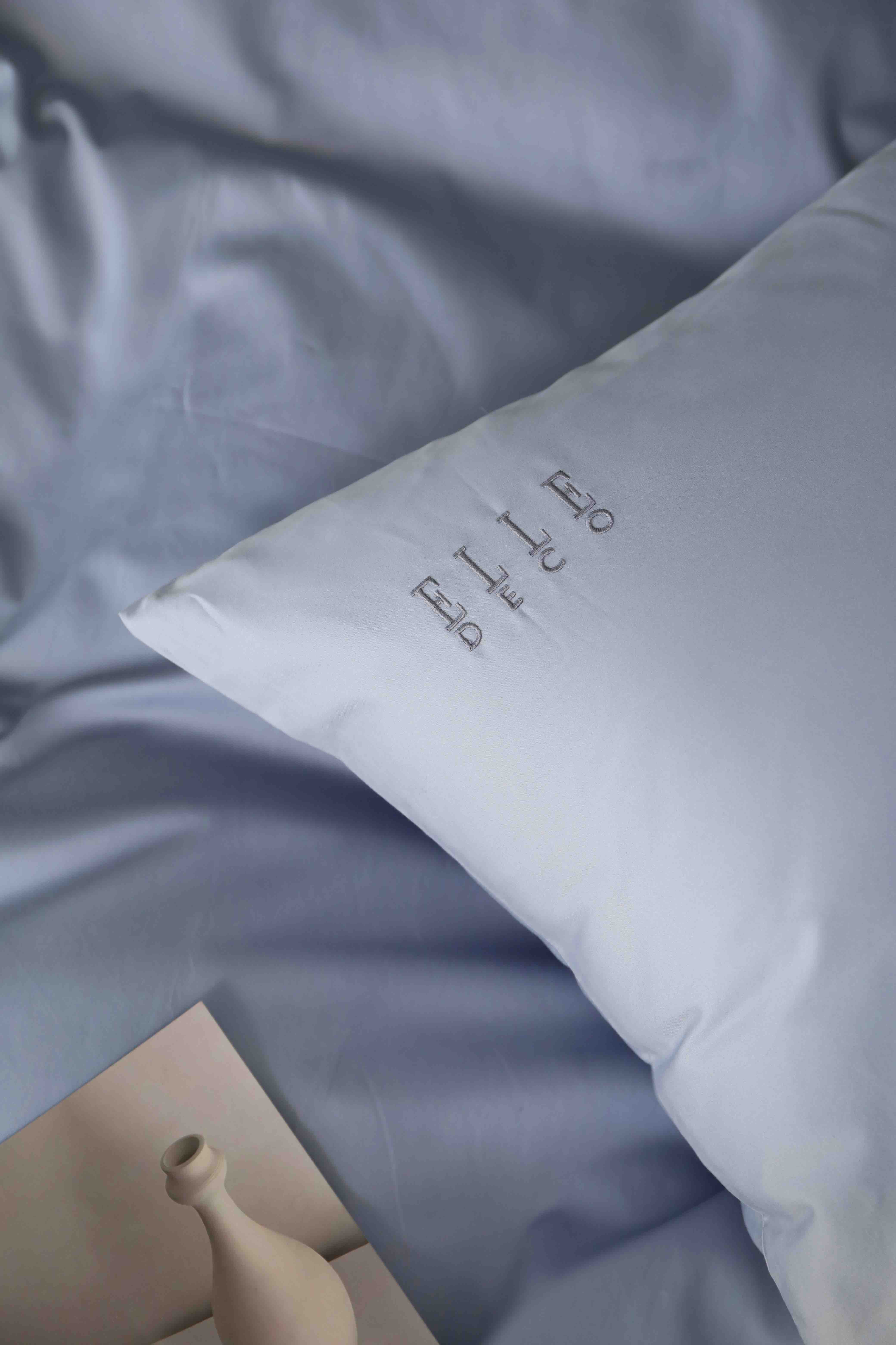 法国ELLE DECO 100S纯色刺绣四件套 正单全棉活性纯色100支新疆长绒棉全年适用