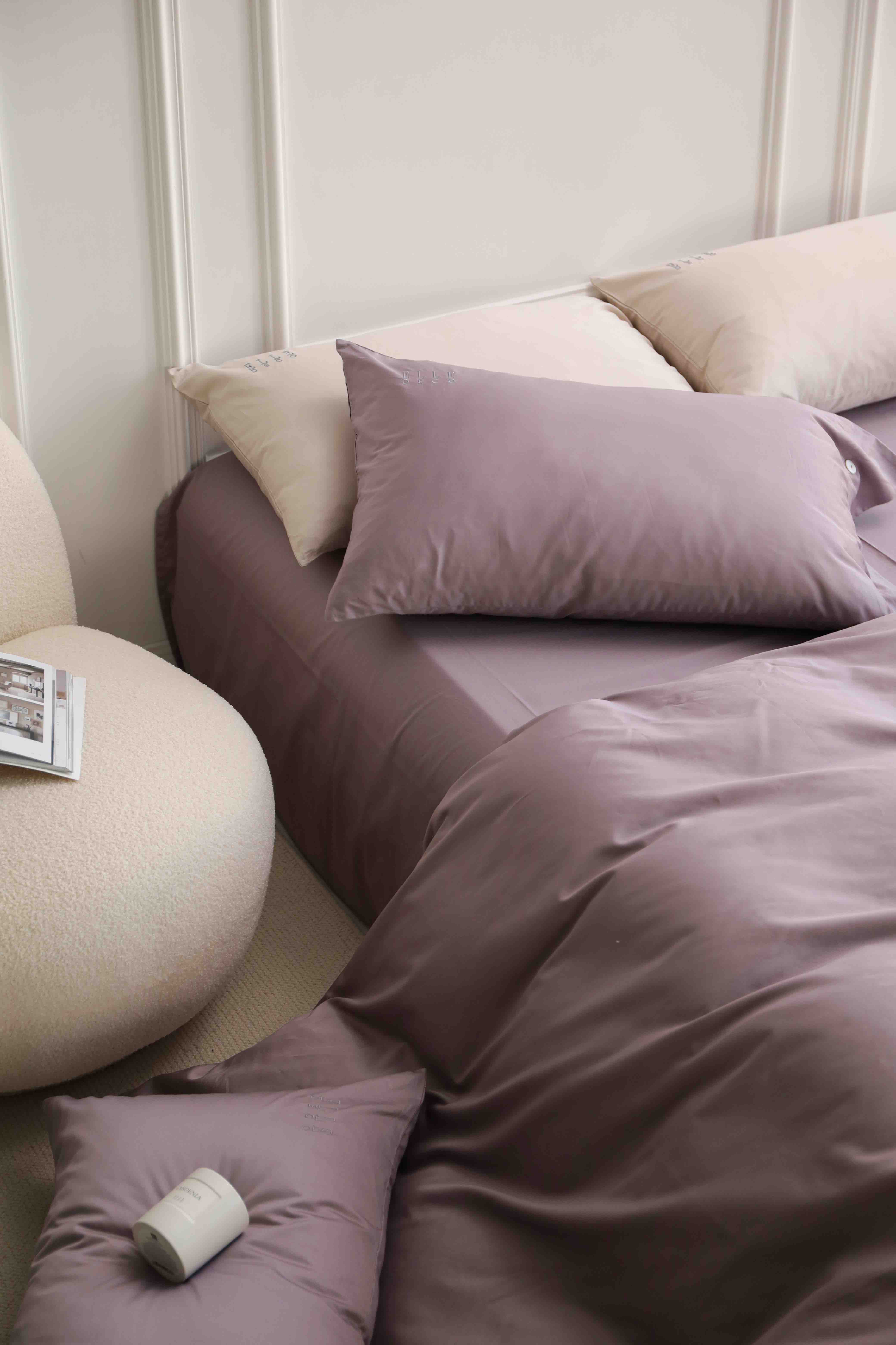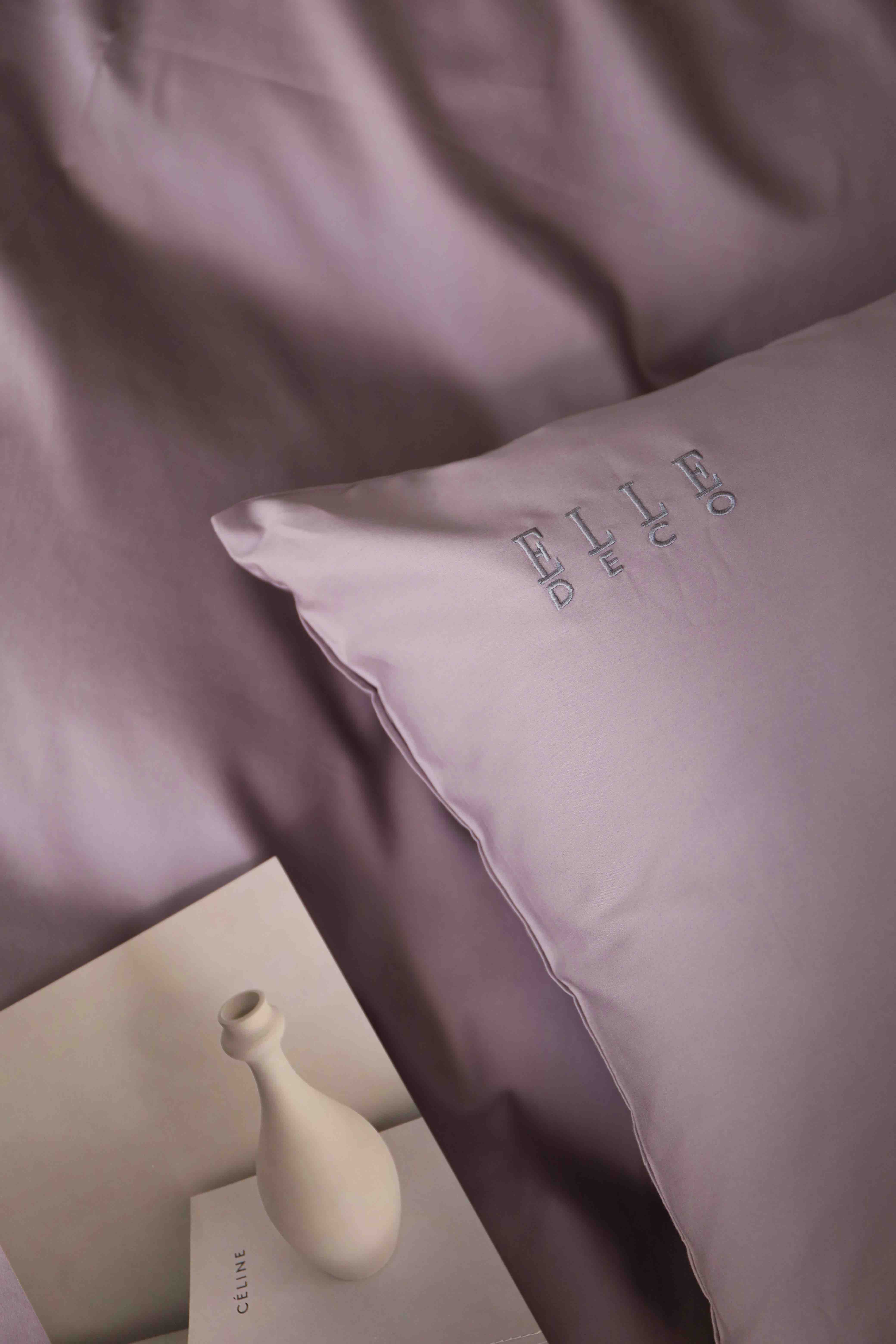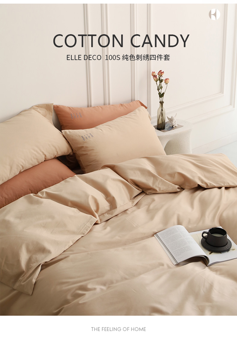 法国ELLE DECO 100S纯色刺绣四件套正单全棉活性纯色100支新疆长绒棉全年适用