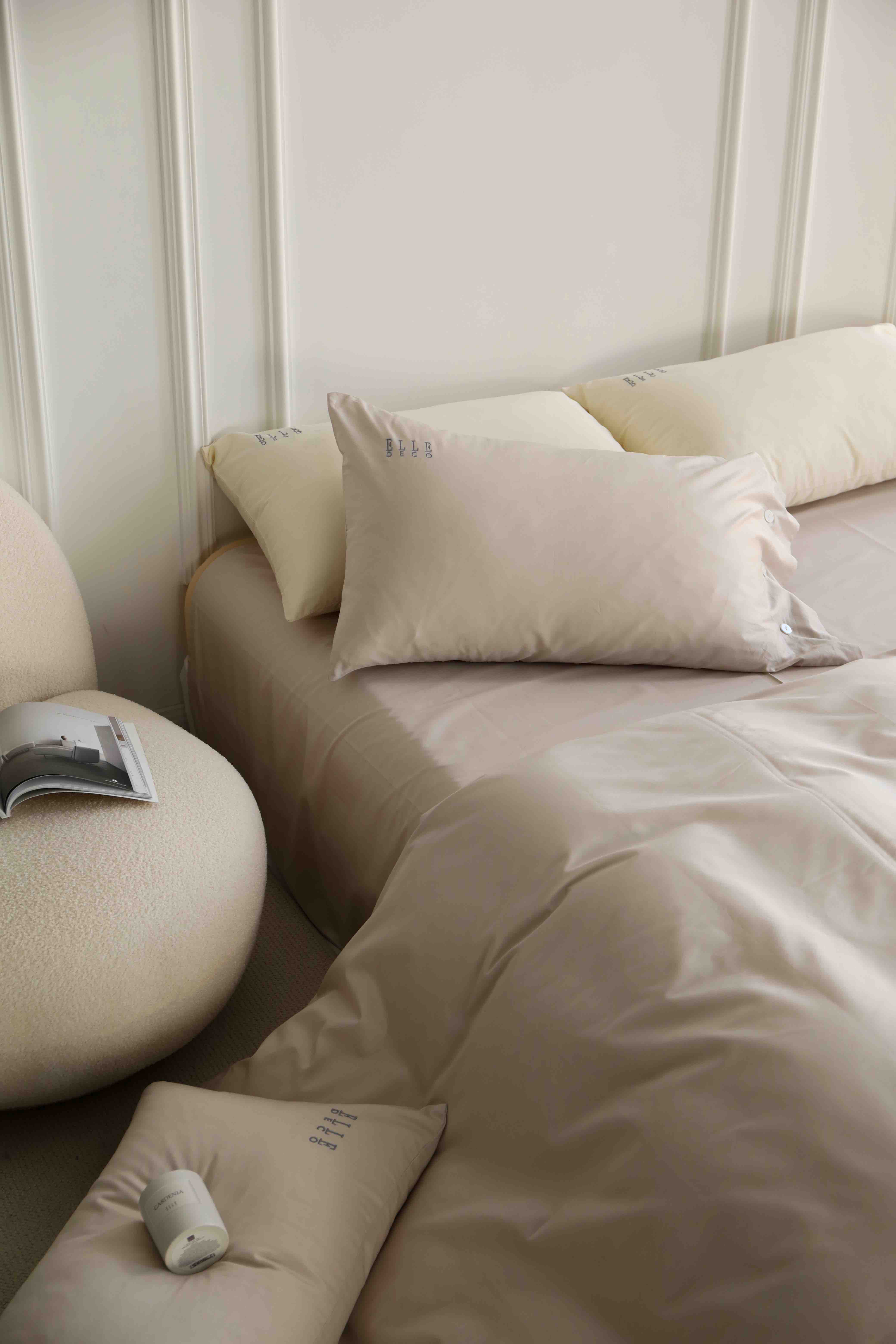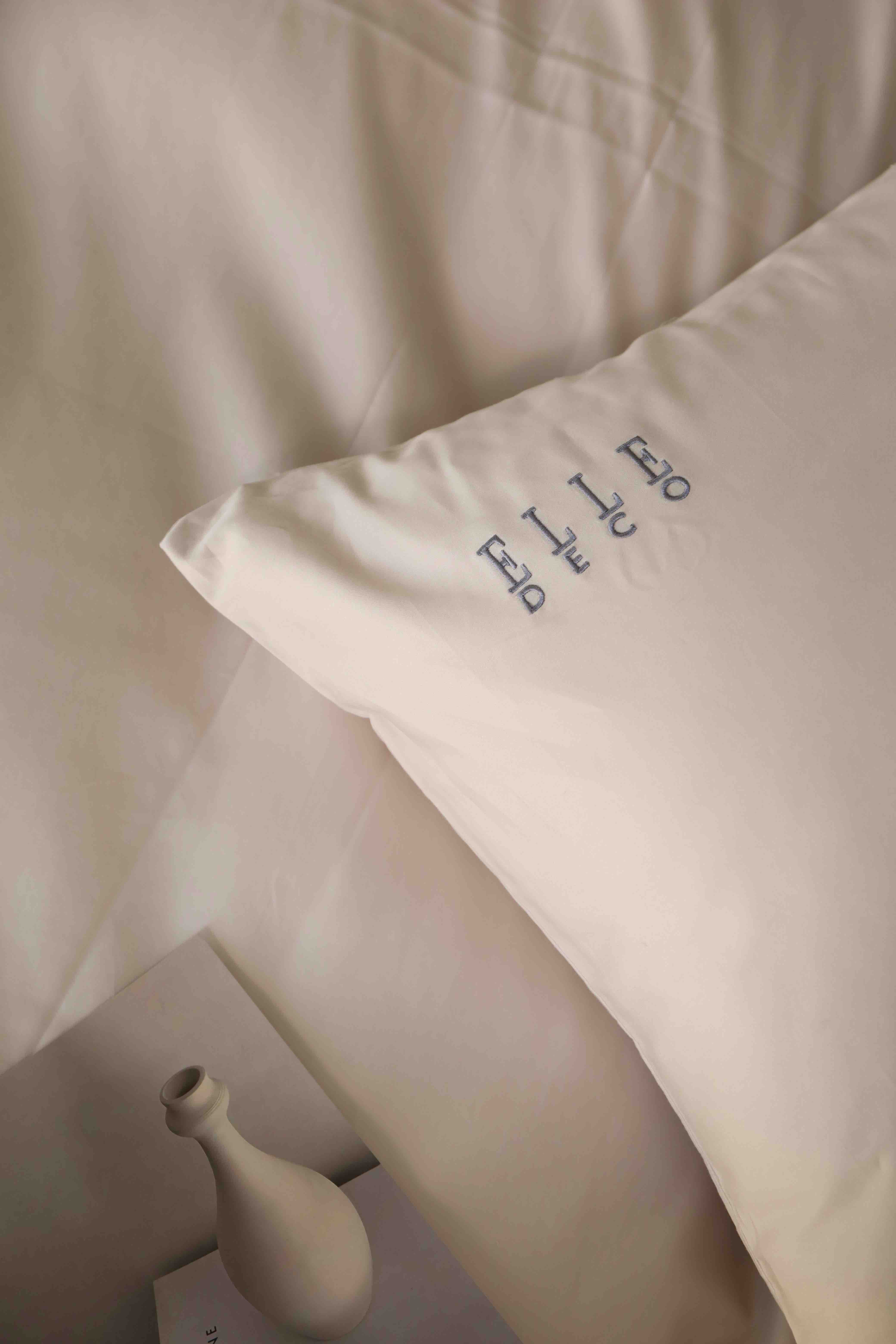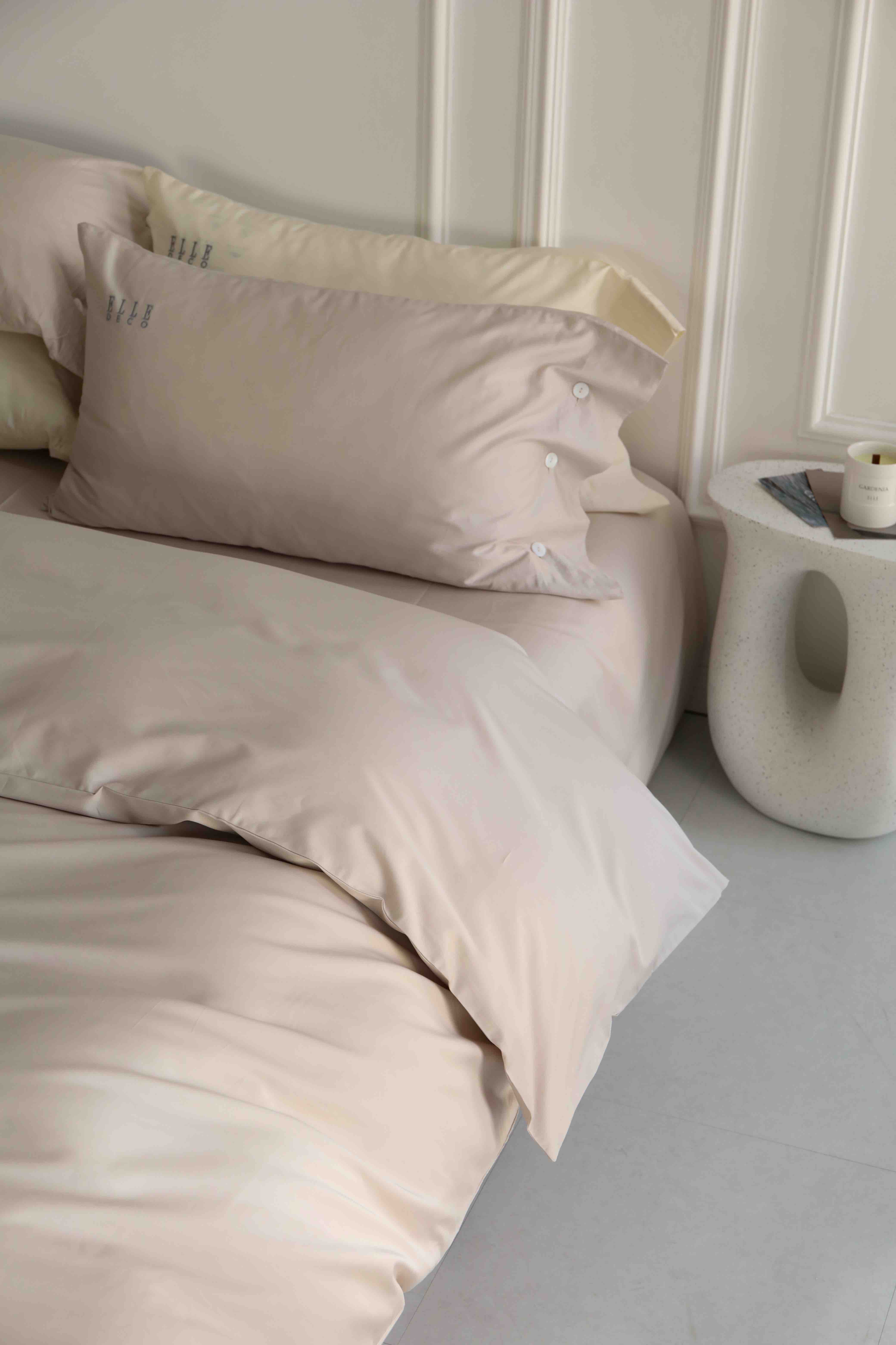 法国ELLE DECO 100S纯色刺绣四件套正单全棉活性纯色100支新疆长绒棉全年适用