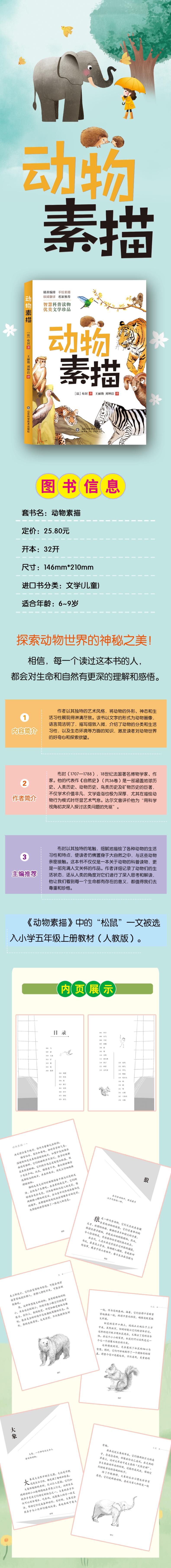 作者以其独特的艺术风格,将动物的外形、神态和生活习性展现得淋漓尽致。该书以文字的形式为动物画像,语言简洁明了,描写细致入微,介绍了动物的分类和生活习性,以及生态环境等方面的知识,激发读者对动物世界的好奇心和探索欲望。