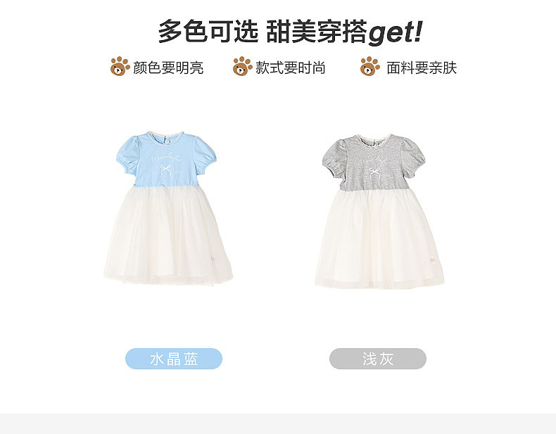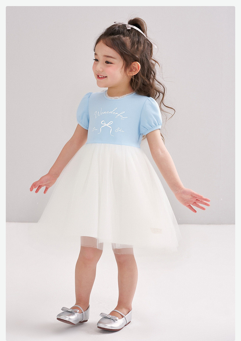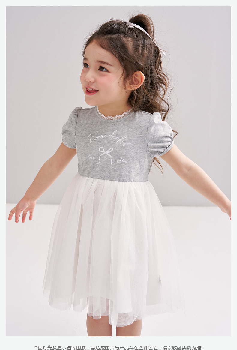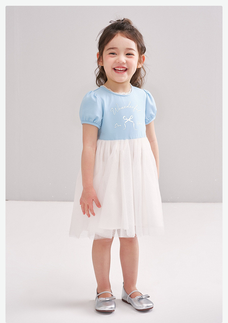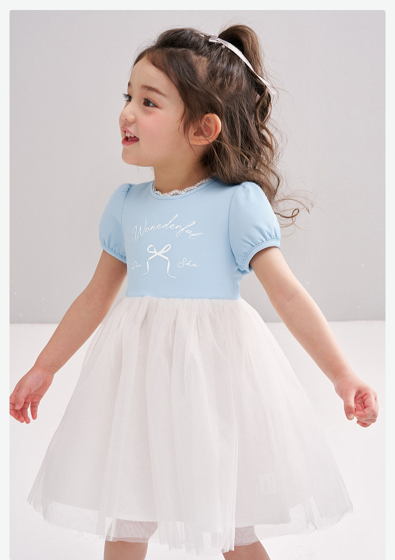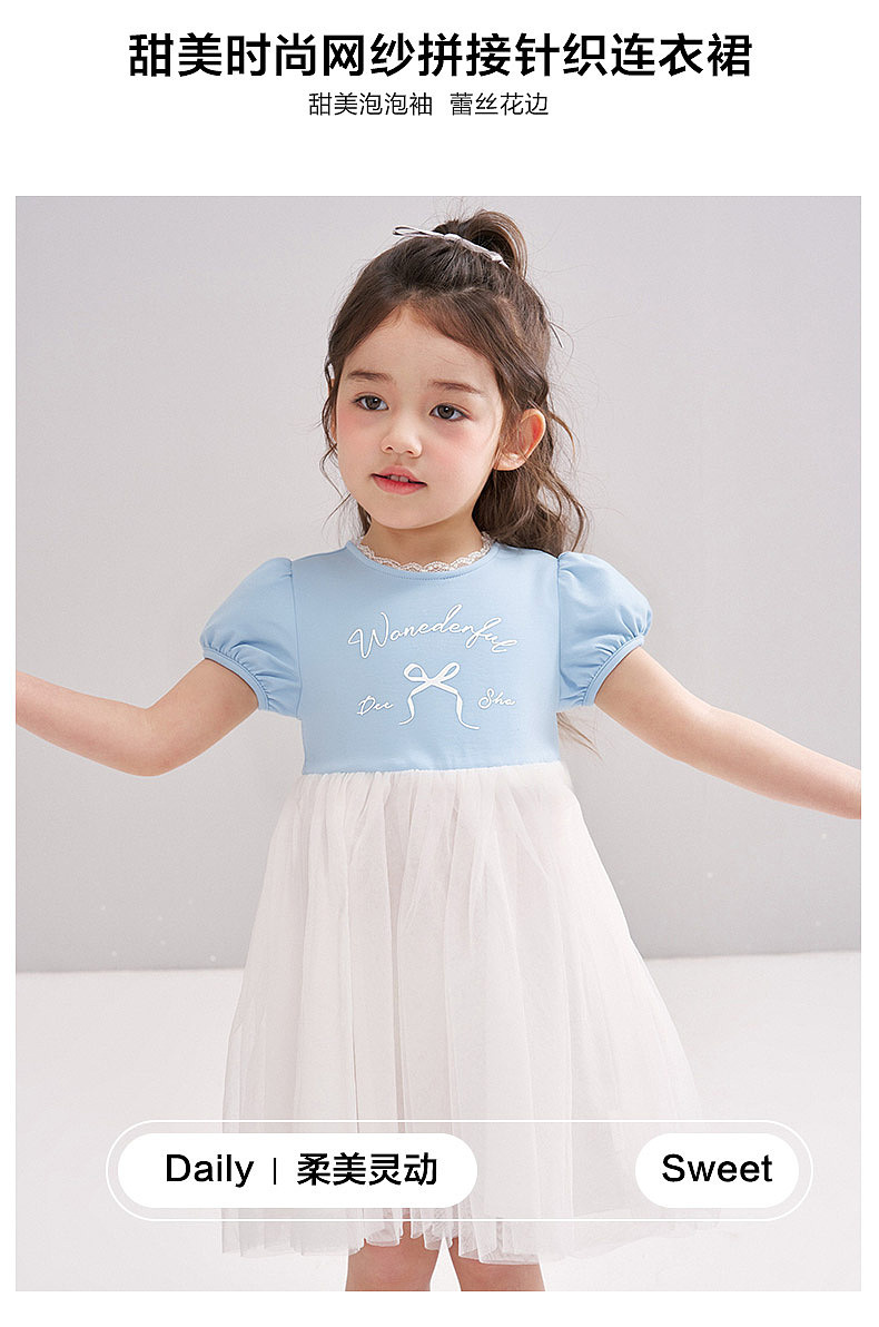 笛莎/Deesha 【松饼熊】2026年夏季新款女童小童甜美时尚网纱拼接针织连衣裙