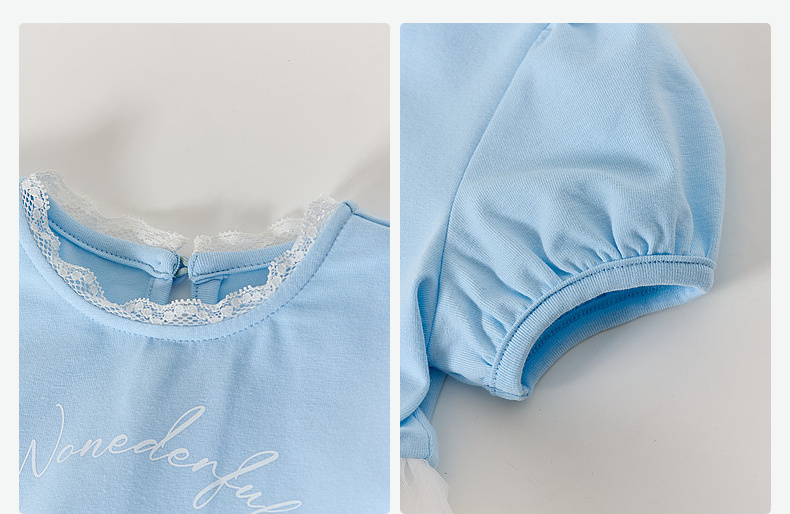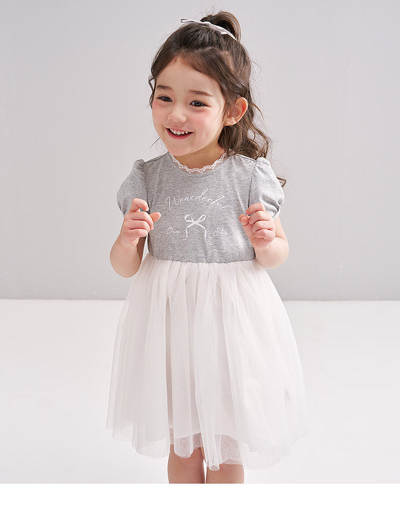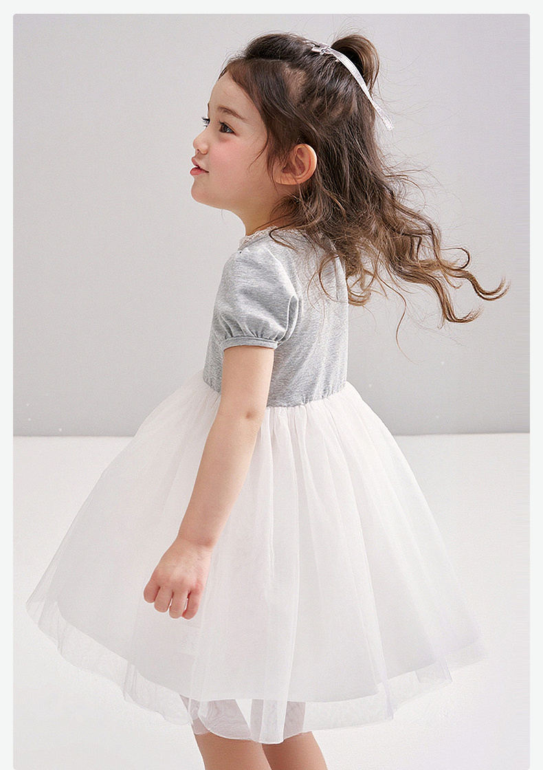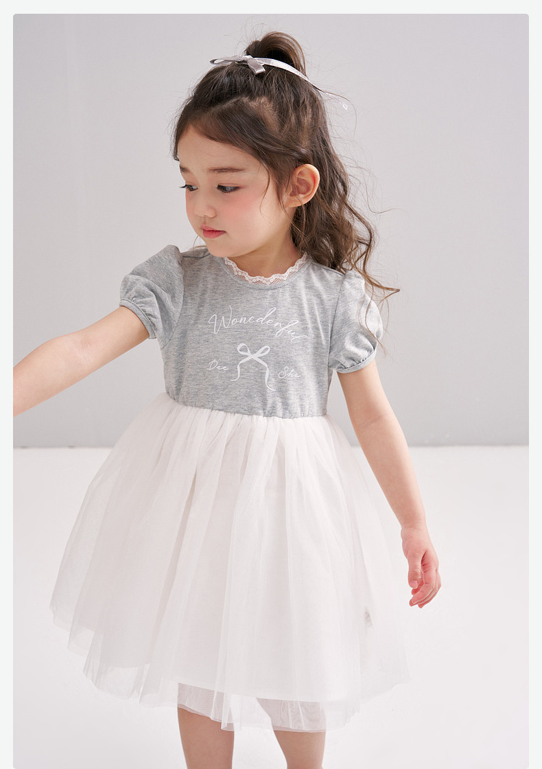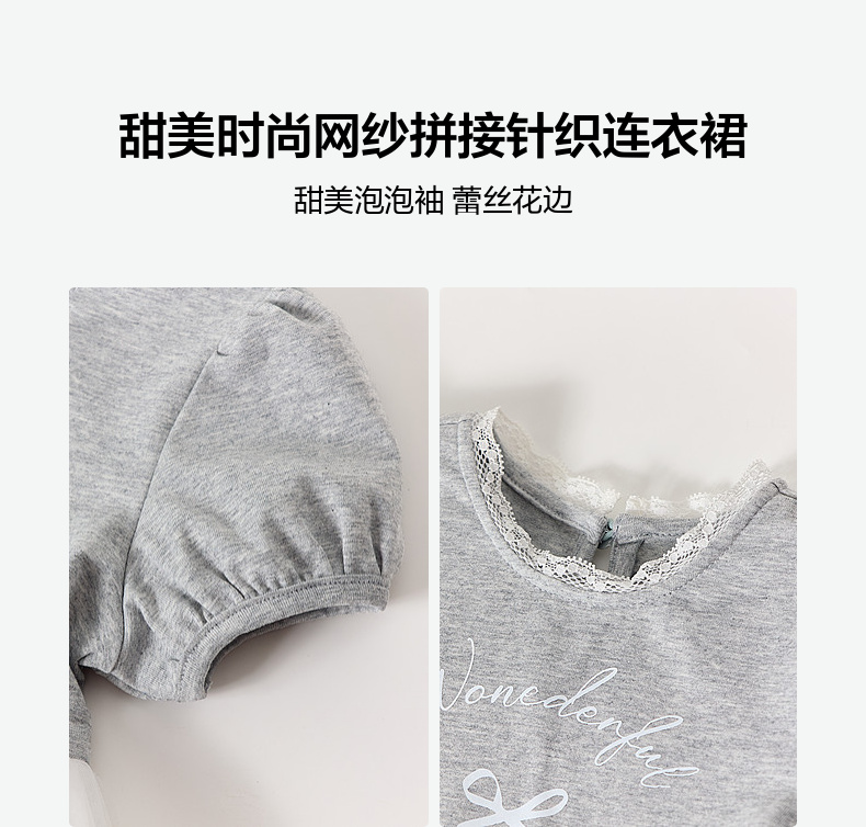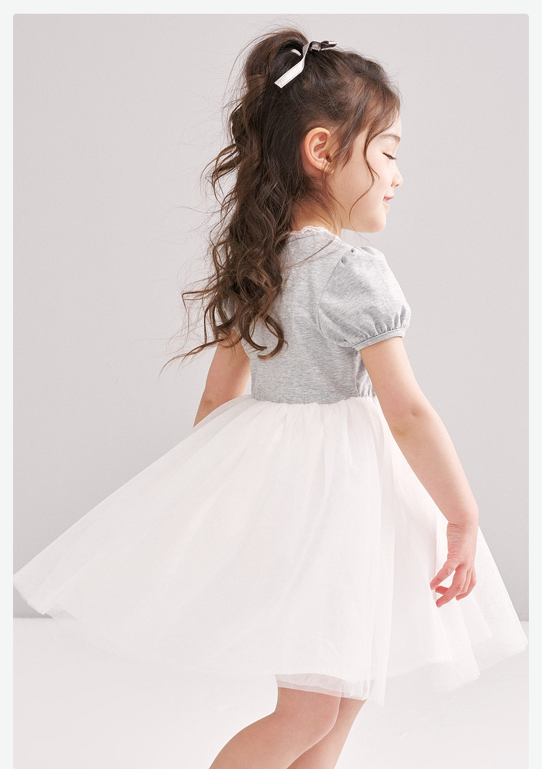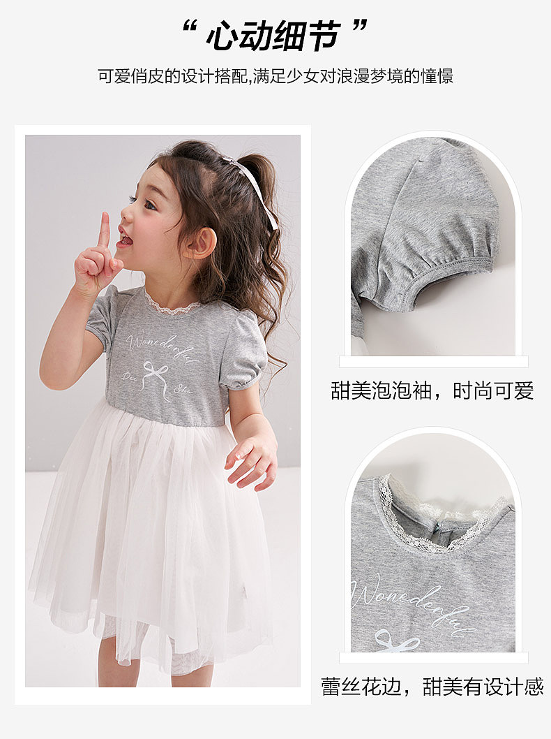 笛莎/Deesha 【松饼熊】2026年夏季新款女童小童甜美时尚网纱拼接针织连衣裙