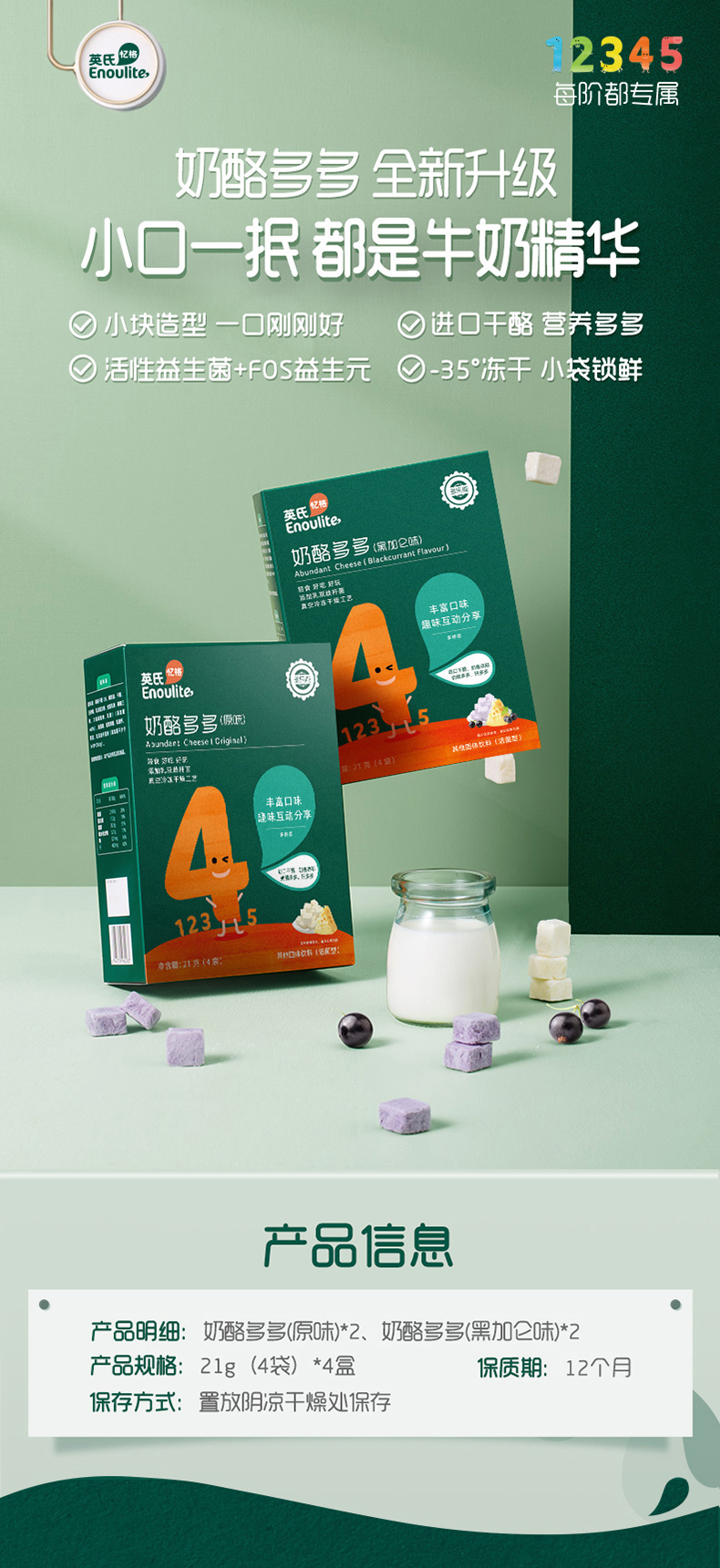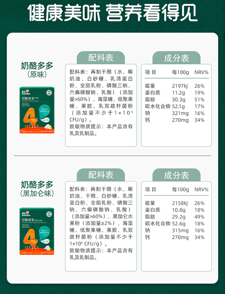 【英氏】4阶奶酪多多 高钙美味营养多多 原味黑加仑味 2盒装(21克/4袋)