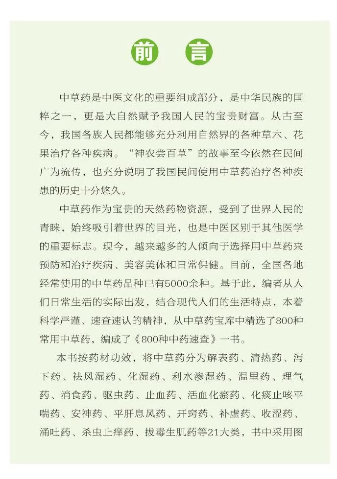 中精选了临床常用的中草药800种,详细介绍了每种中草药
