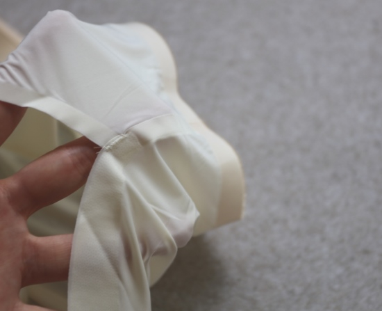 两侧拼接靠前 腰围处 是重点胶的加固 下 还有加固缝线