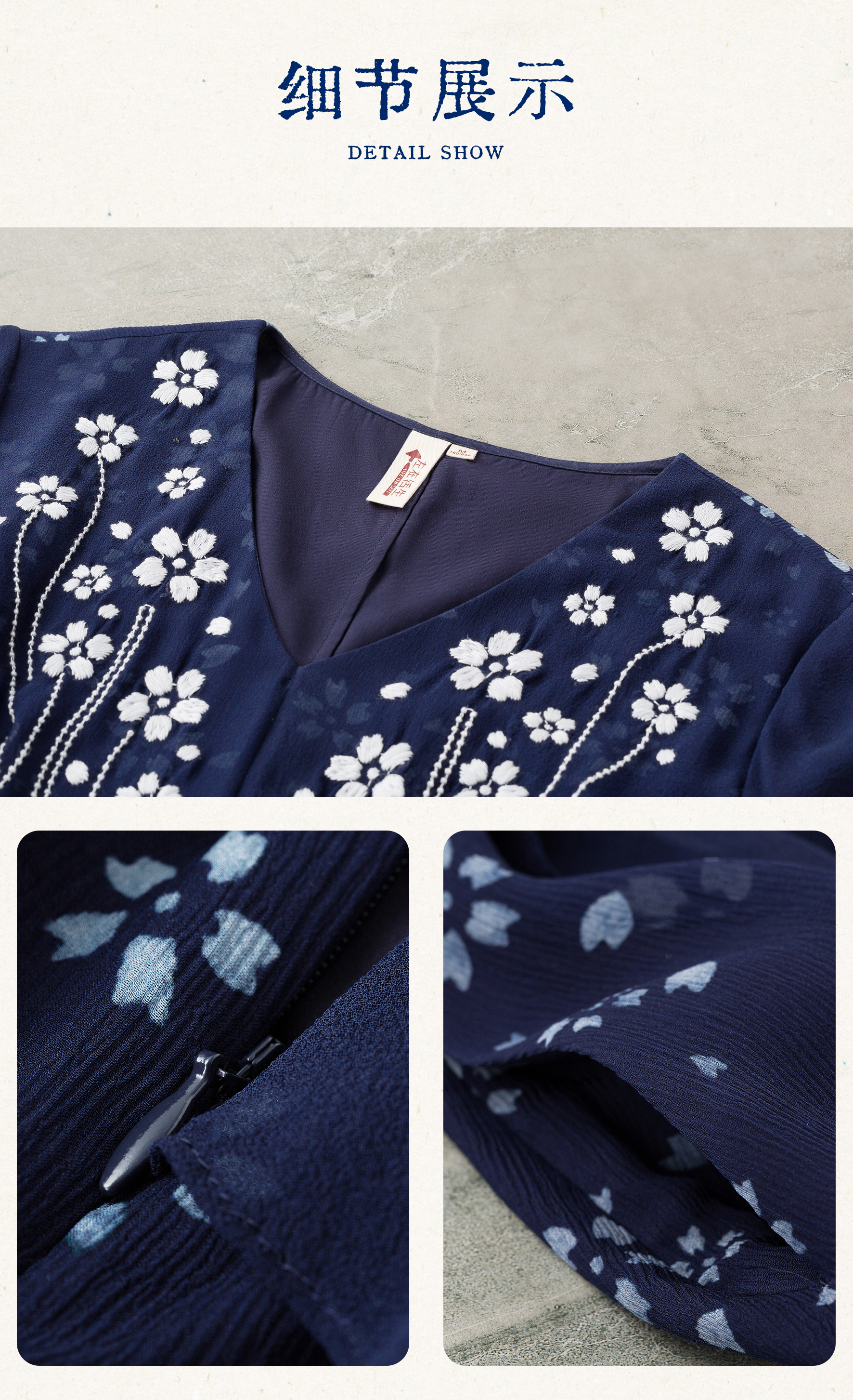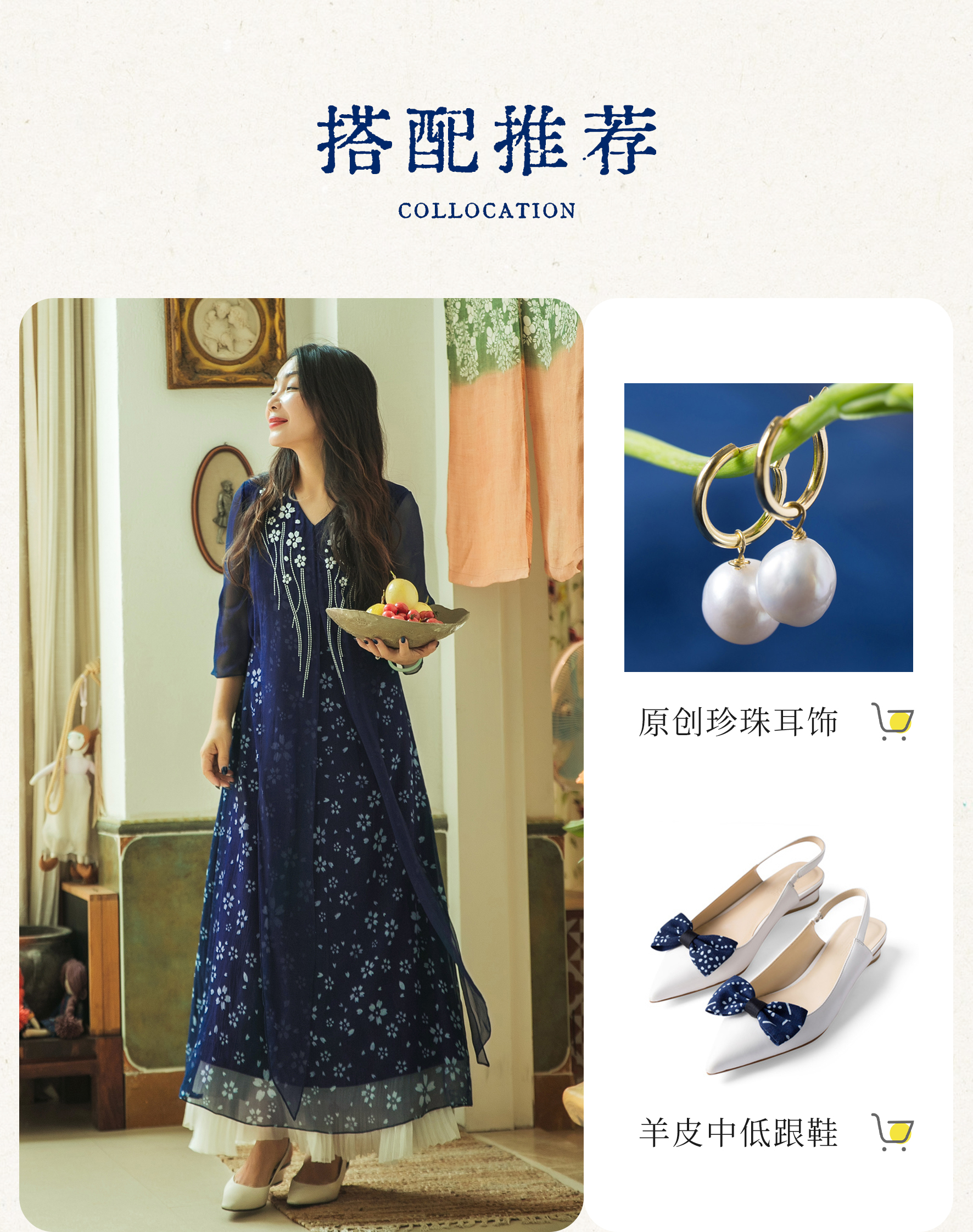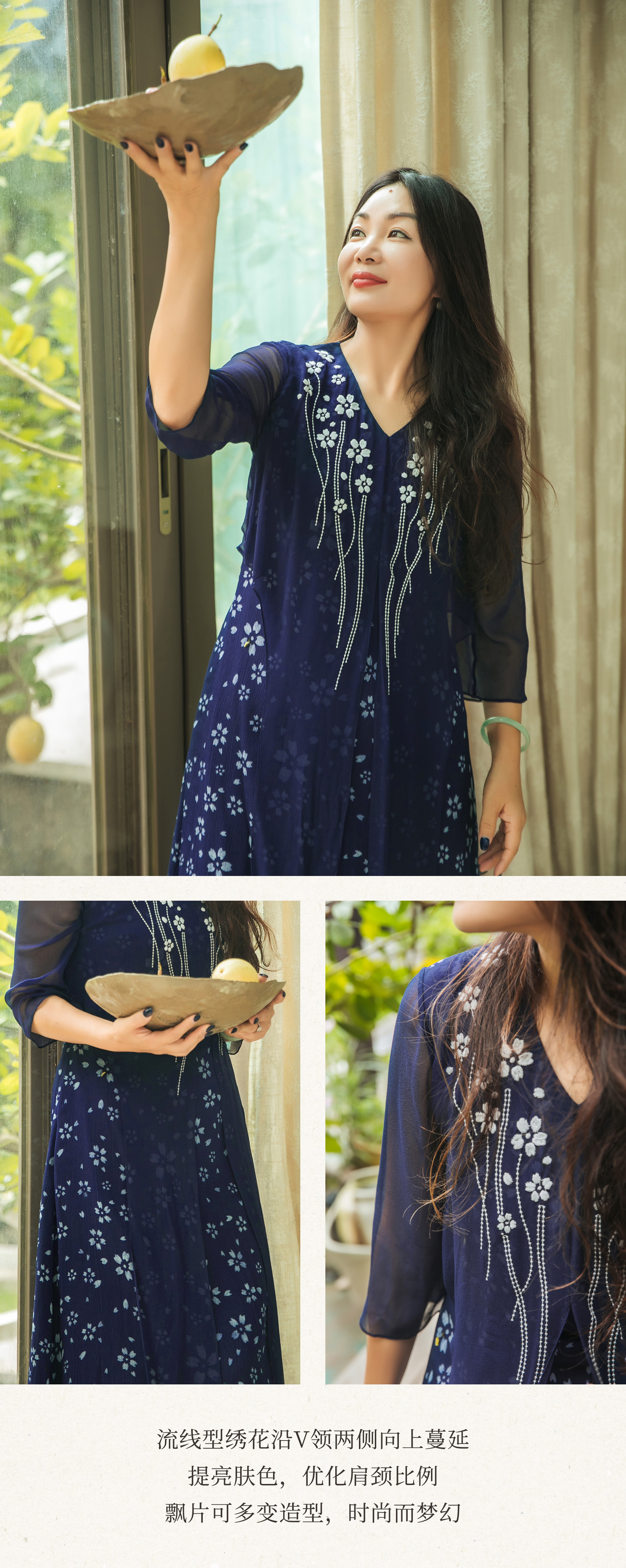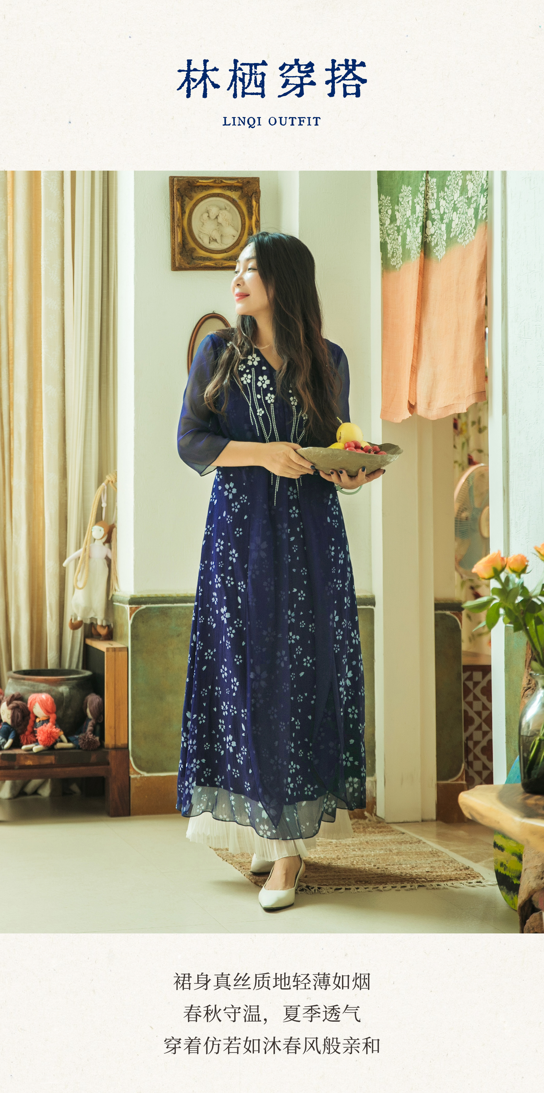 【林栖设计小店】【林栖推荐】2025年春夏新品蓝印花复古时尚绣花真丝连衣裙女1942507