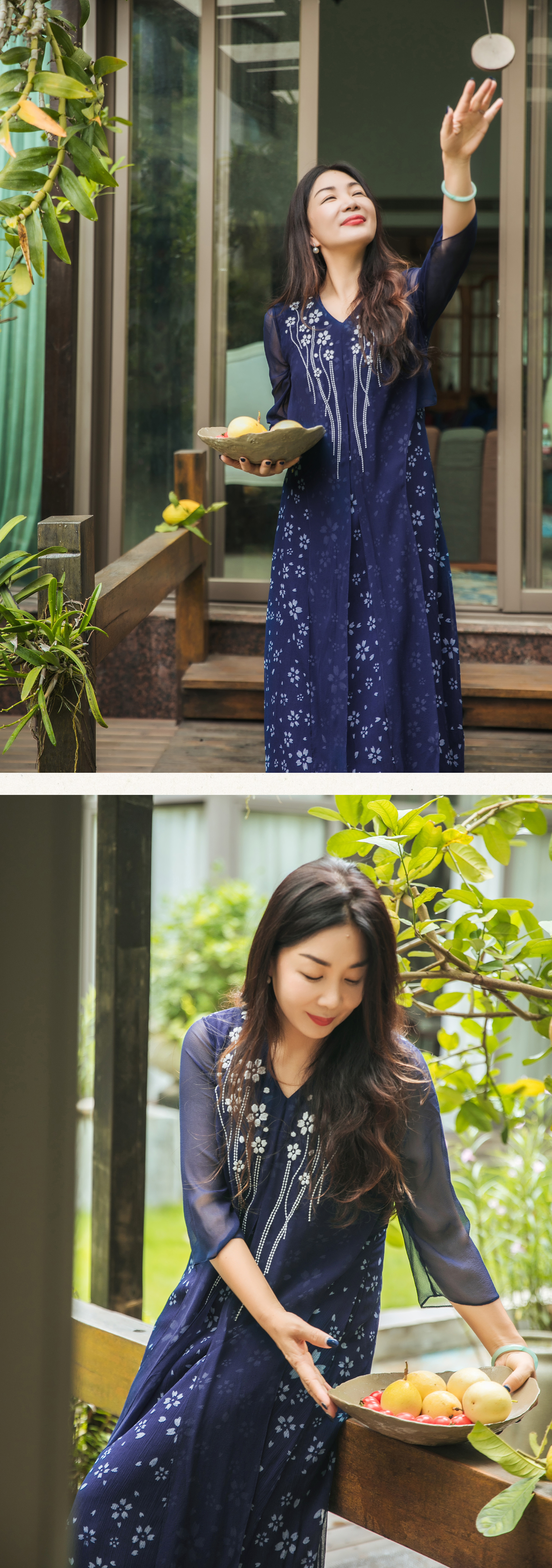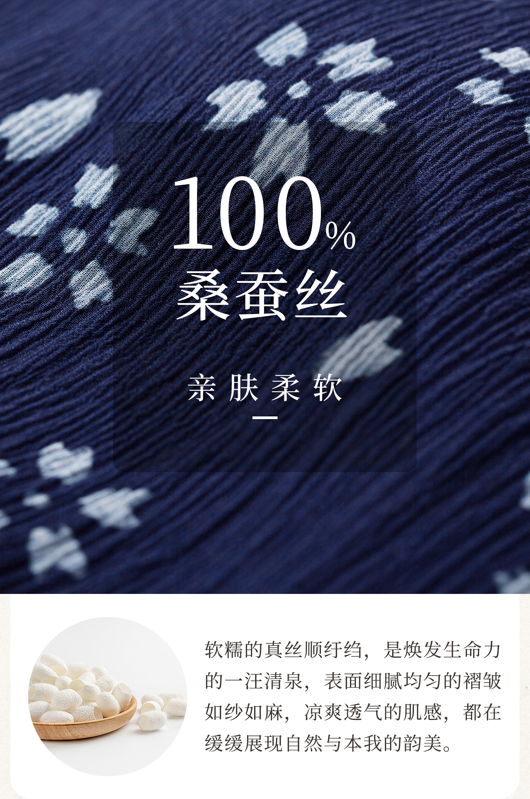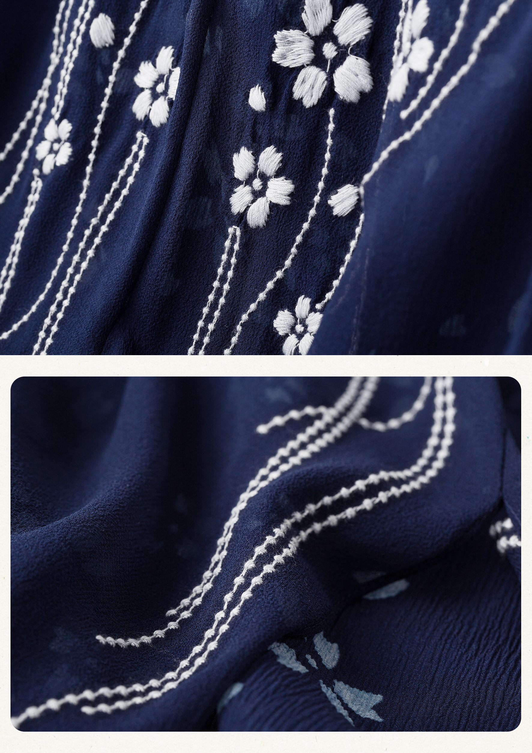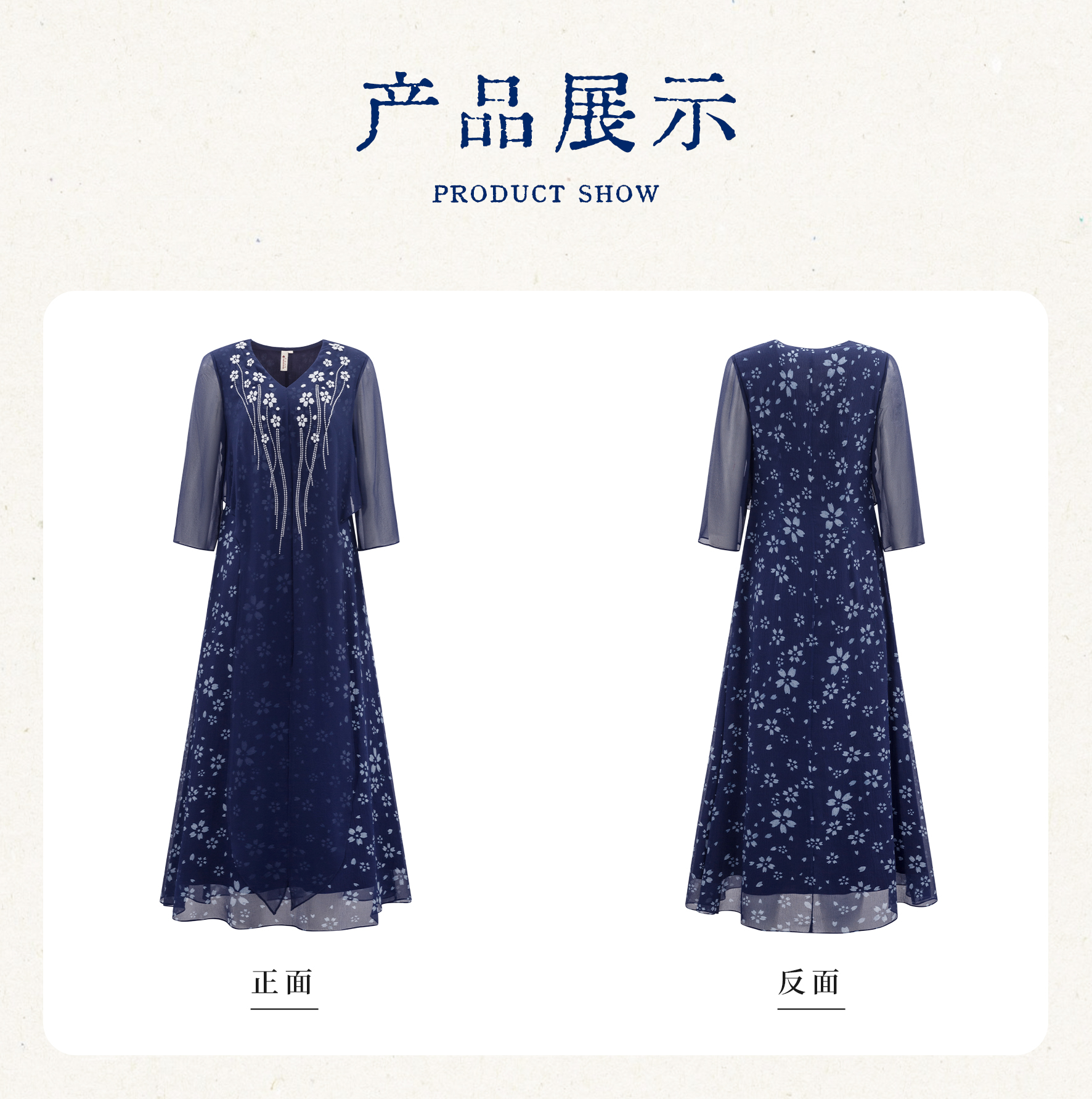 【林栖设计小店】【林栖推荐】2025年春夏新品蓝印花复古时尚绣花真丝连衣裙女1942507