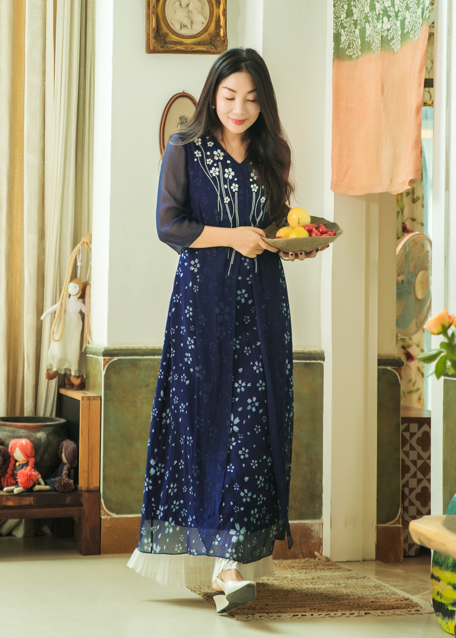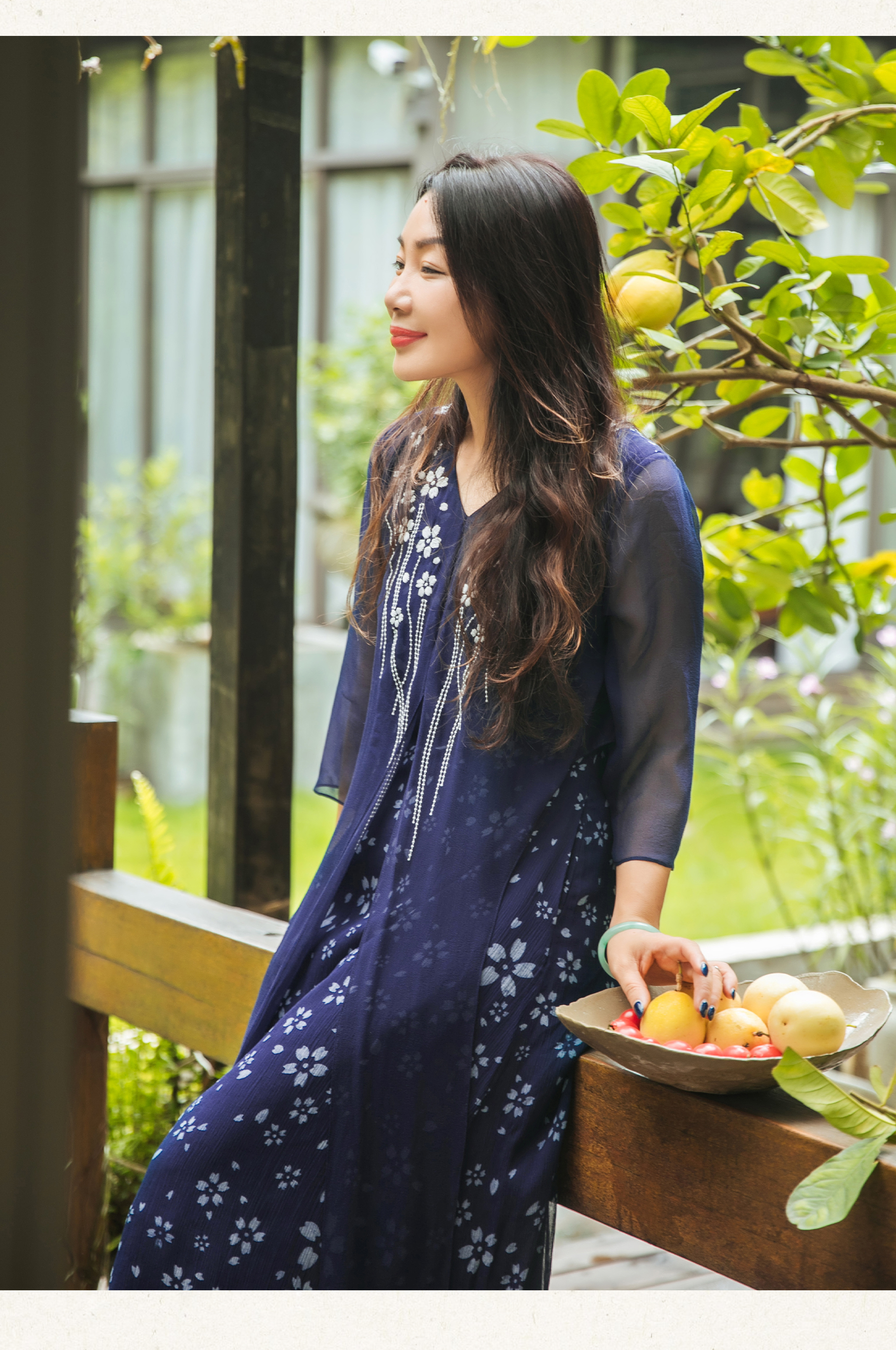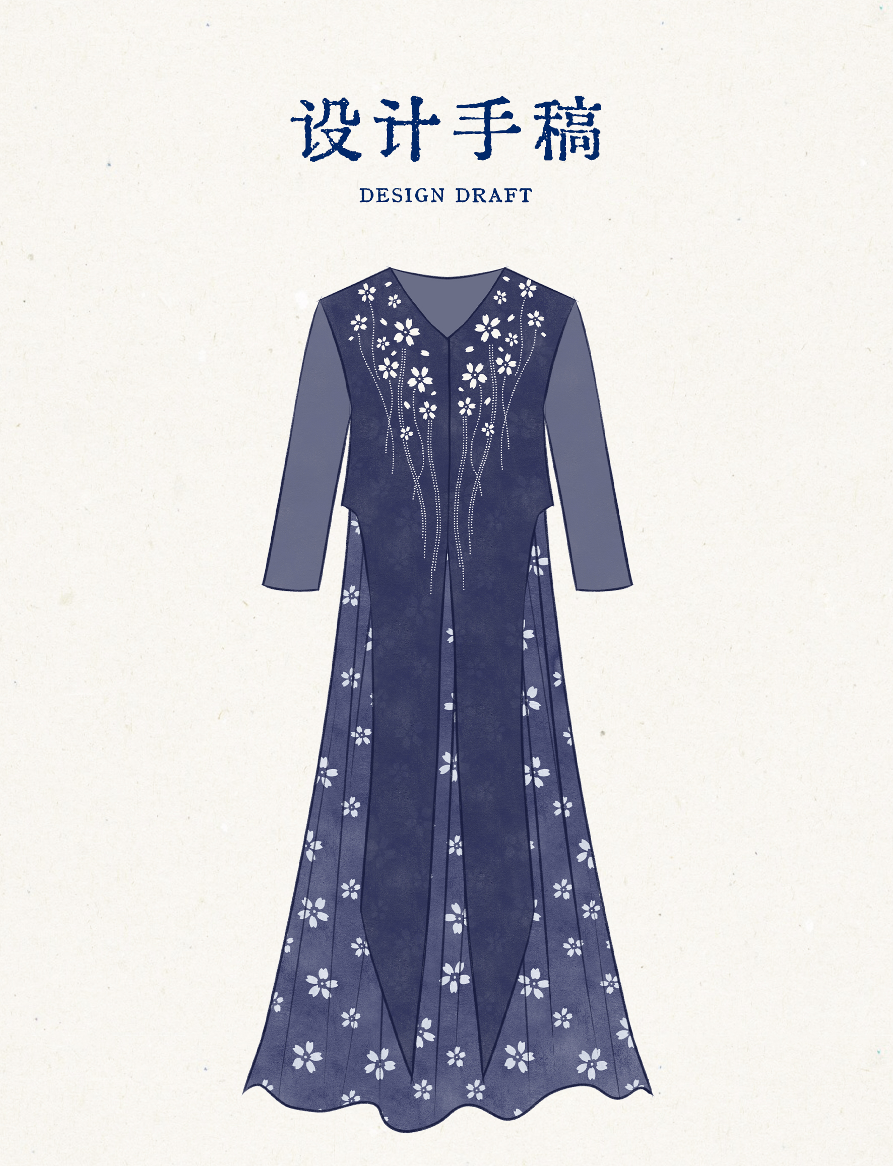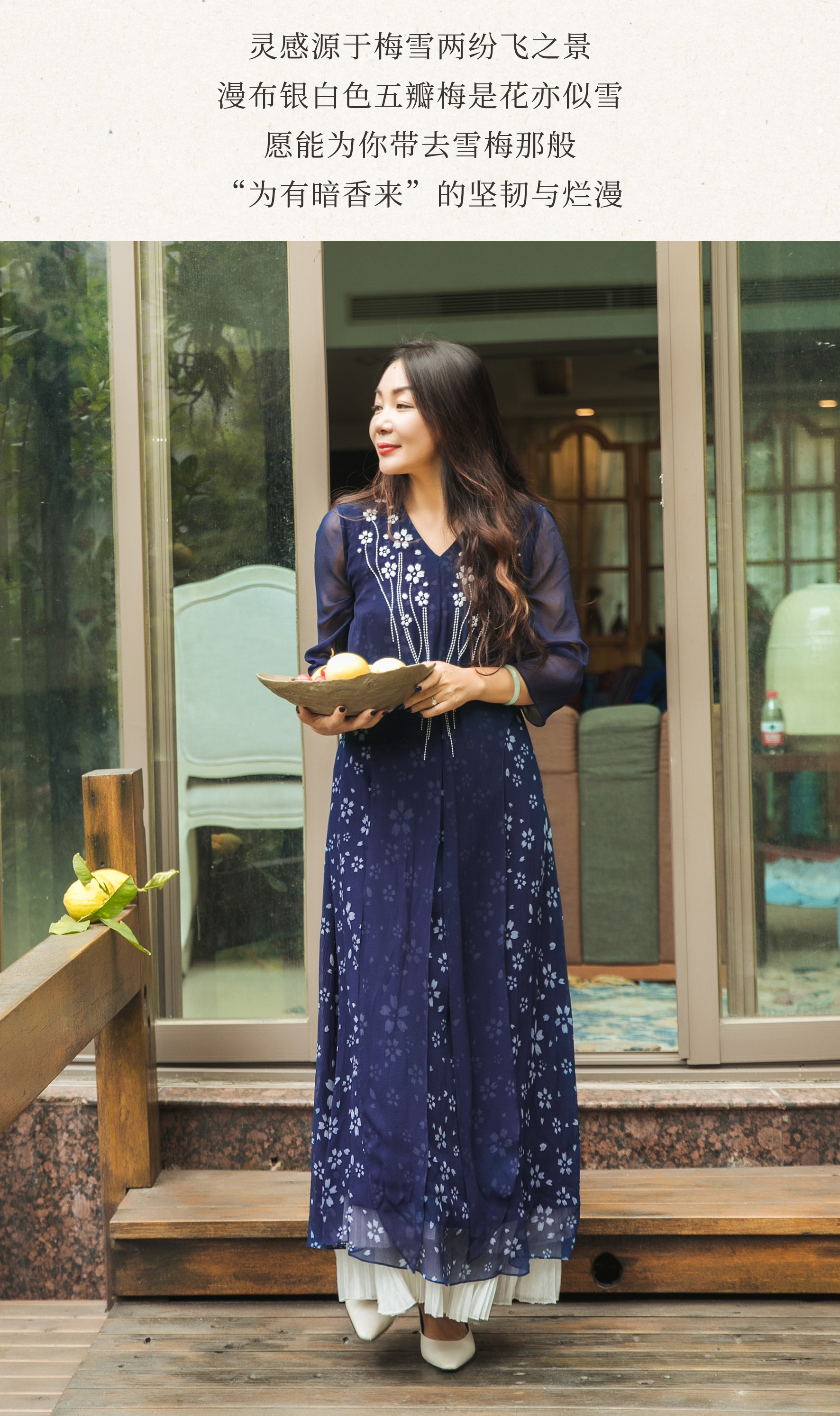 【林栖设计小店】【林栖推荐】2025年春夏新品蓝印花复古时尚绣花真丝连衣裙女1942507