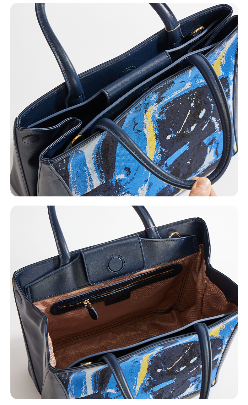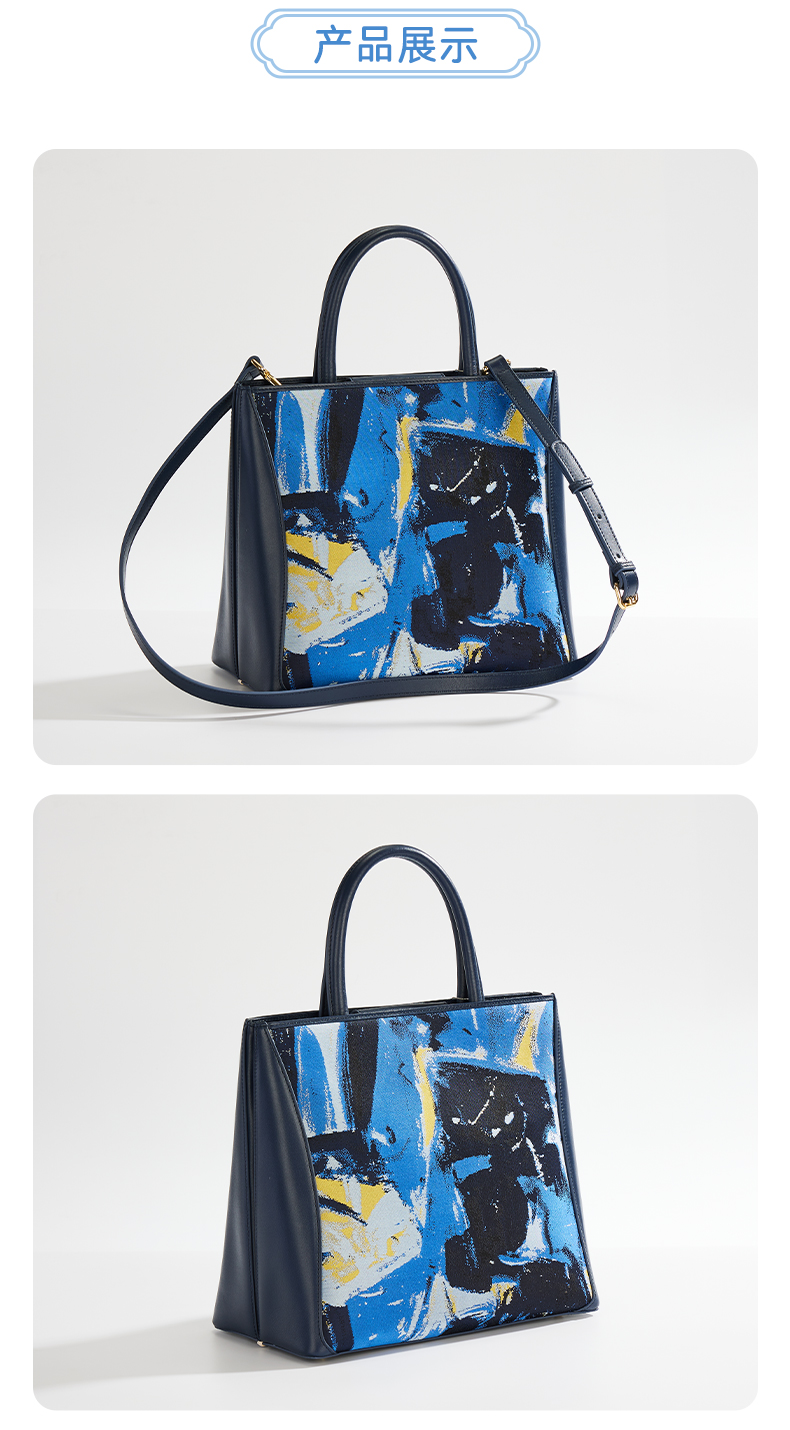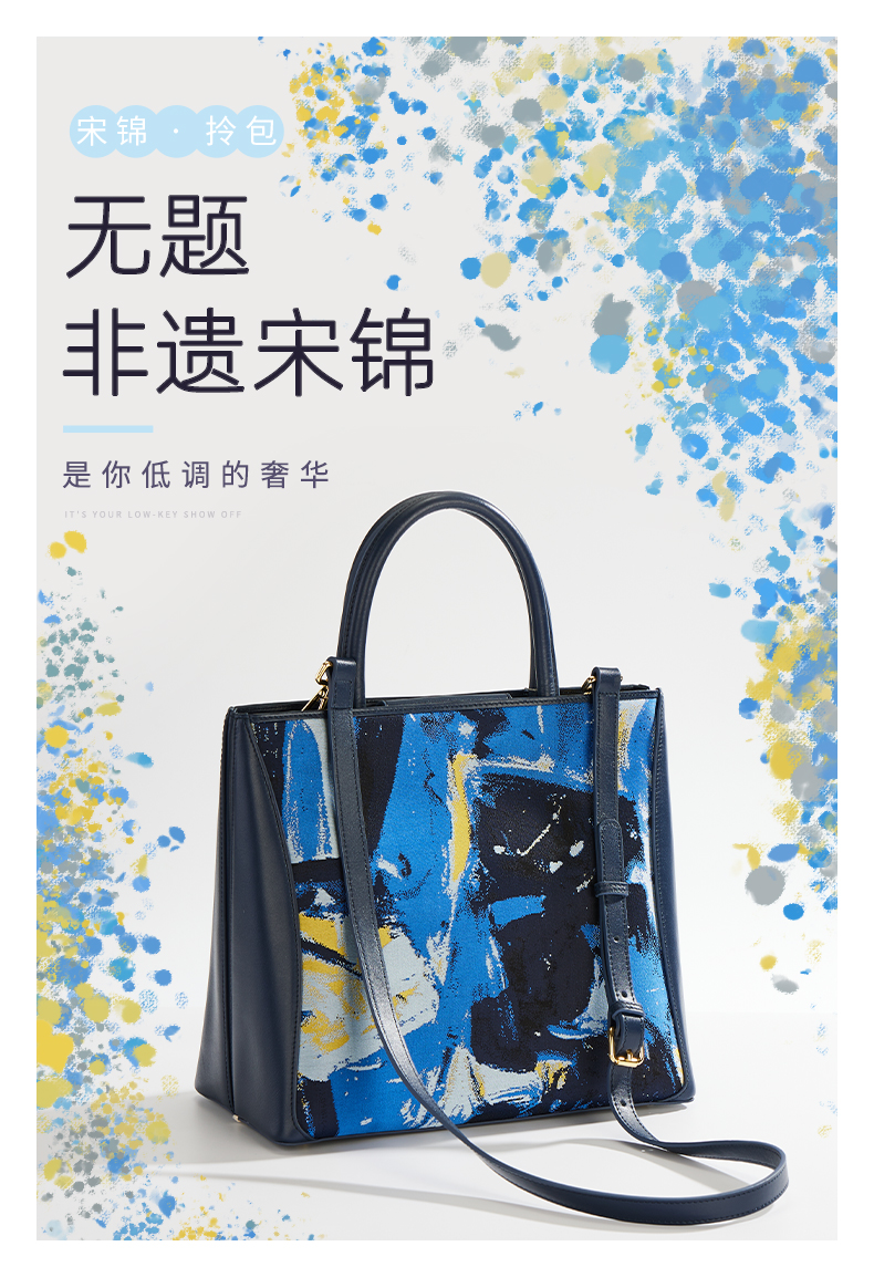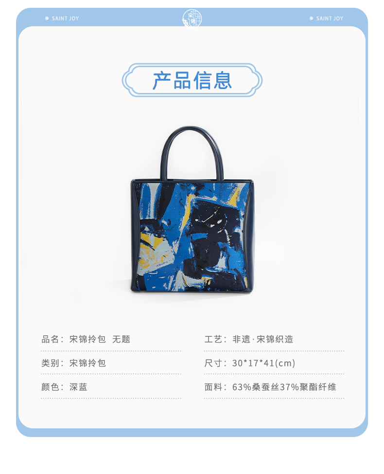 SAINTJOY/上久楷 女士宋锦拎包 无题·深蓝 吴大羽《无题》合作款拎包 BWS18A1701