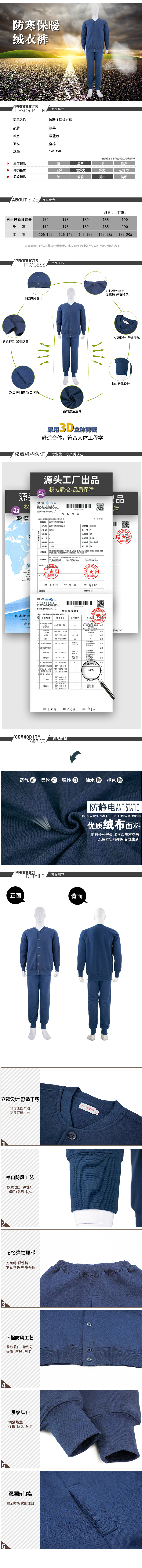 【武汉-汉阳】银莱防寒保暖男士绒衣裤套装蔚蓝色