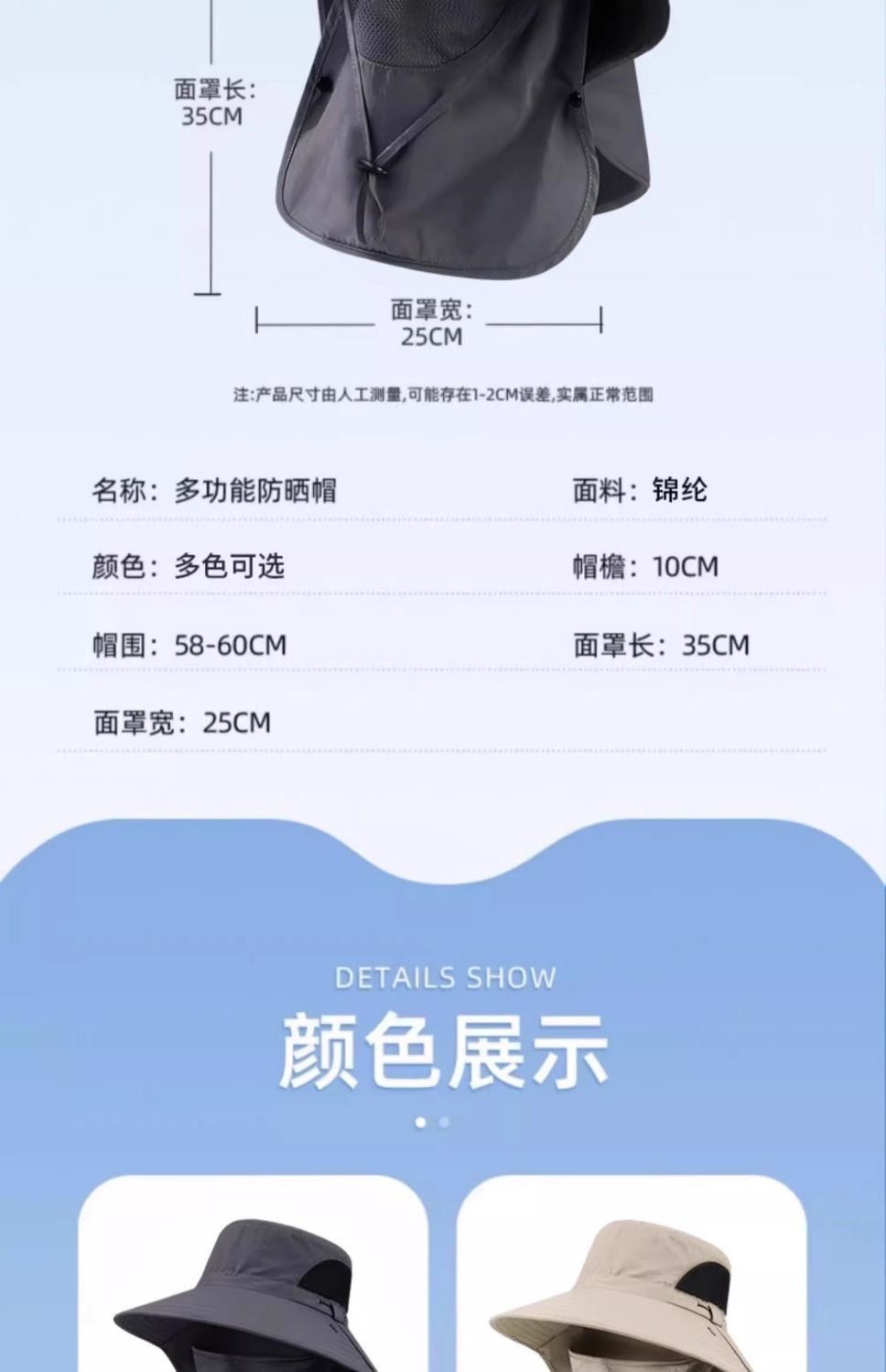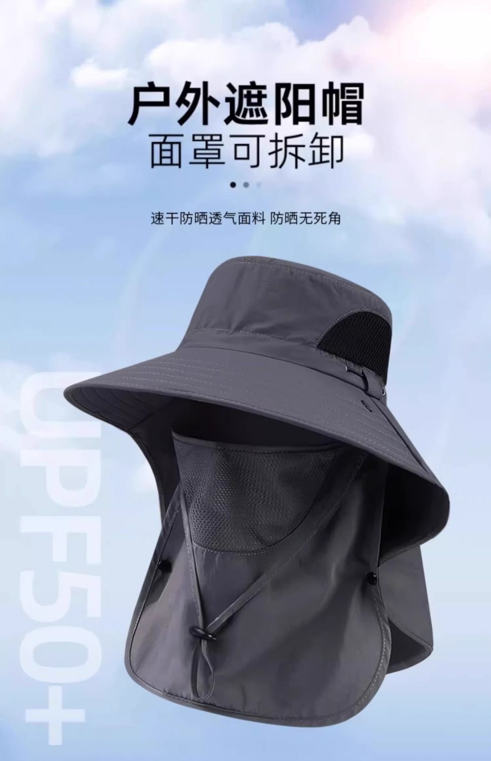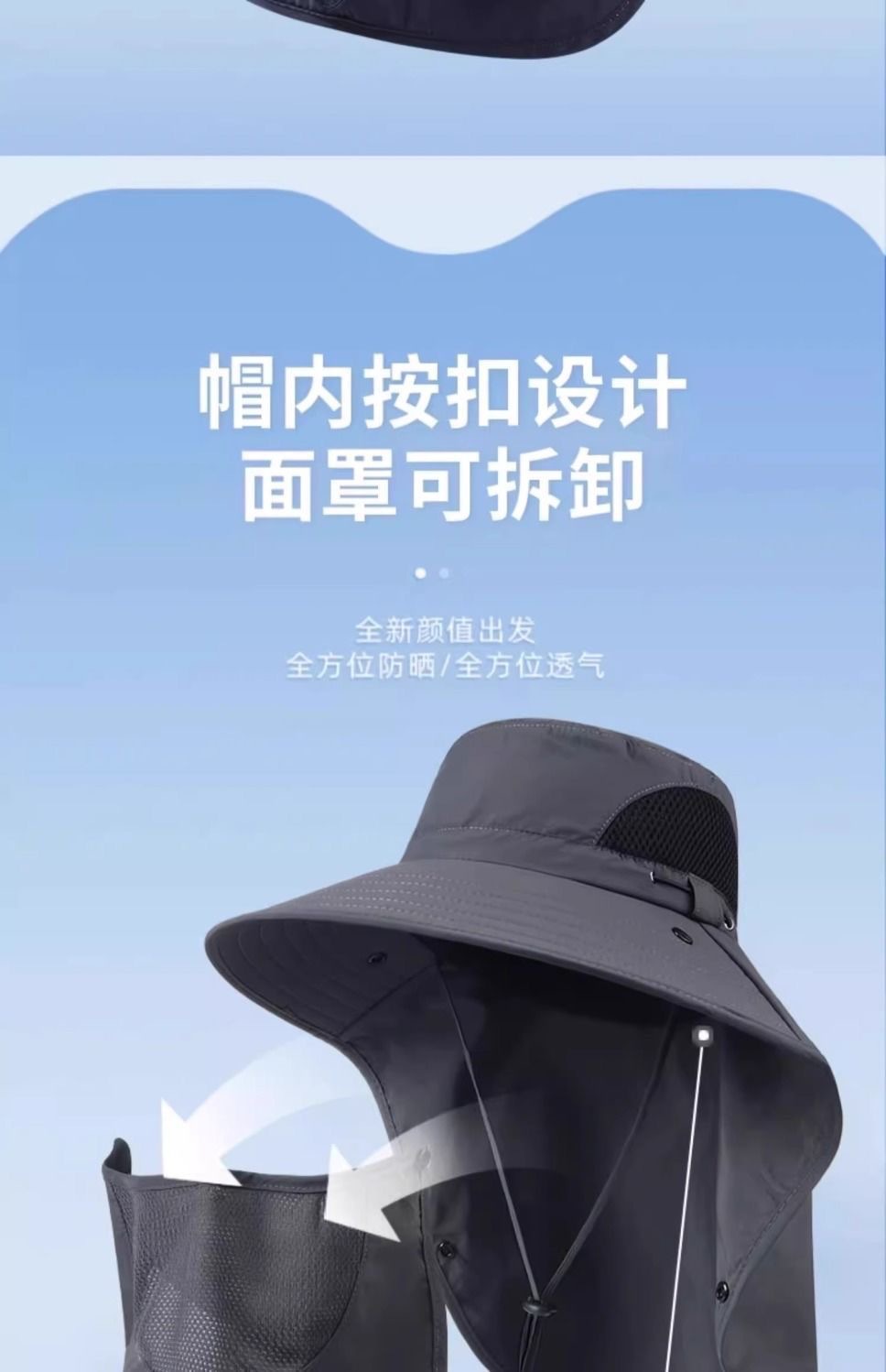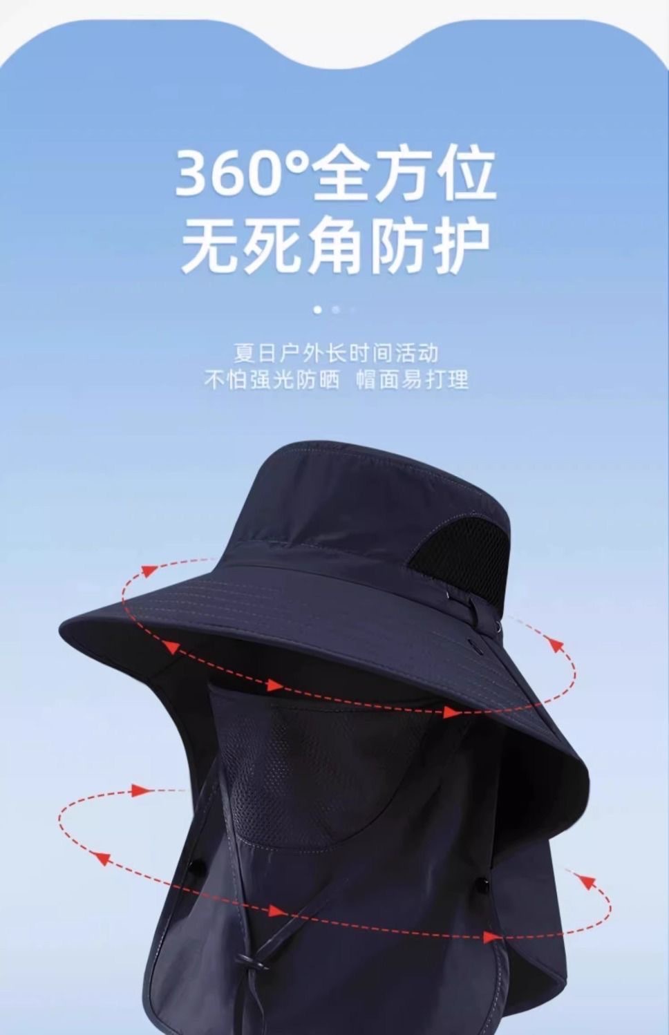 【护颈防晒一体、鼻部透气孔设计】渔夫帽夏季防晒遮阳帽男户外登山帽钓鱼遮脸护颈一体帽大檐太阳帽.TA