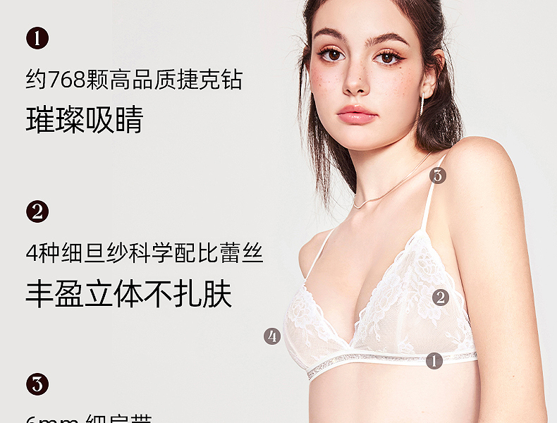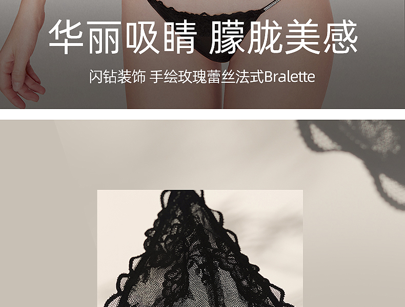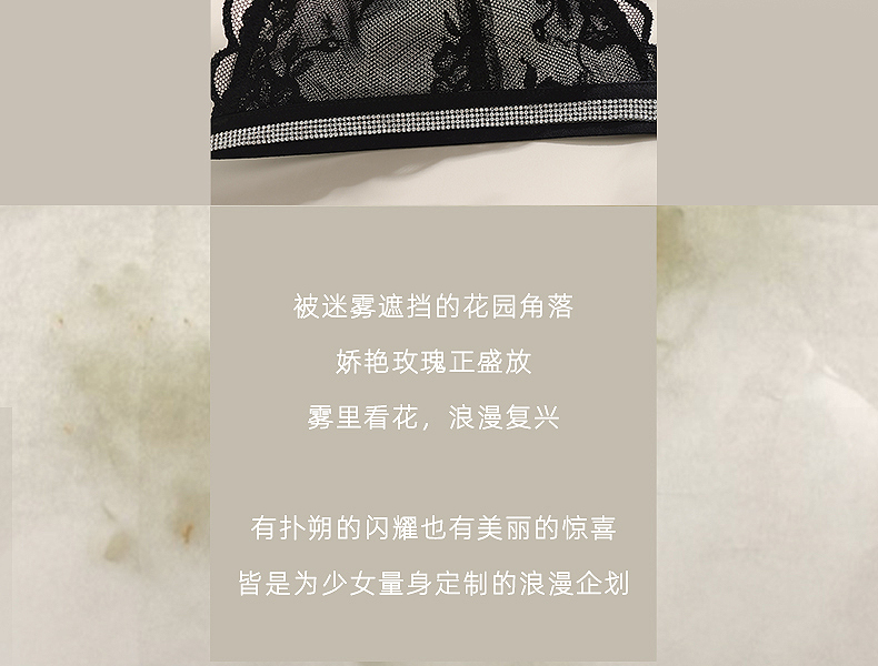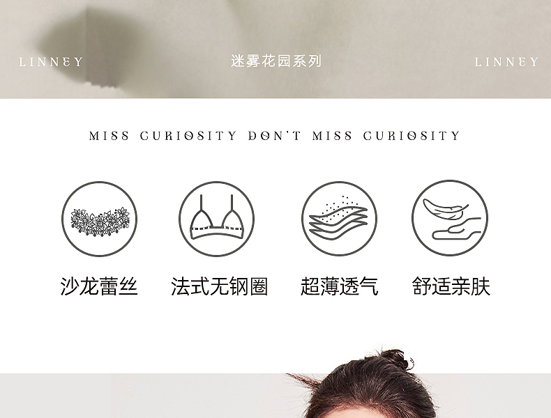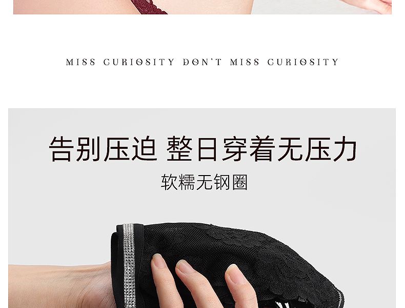 好奇蜜斯法式内衣女无钢圈蕾丝纯欲小胸文胸罩大胸显小春薄 琳妮