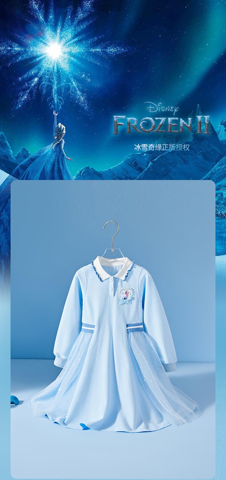 迪士尼童装女童连衣裙艾莎公主2026春季新款洋气春装儿童长裙子