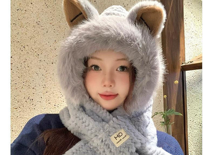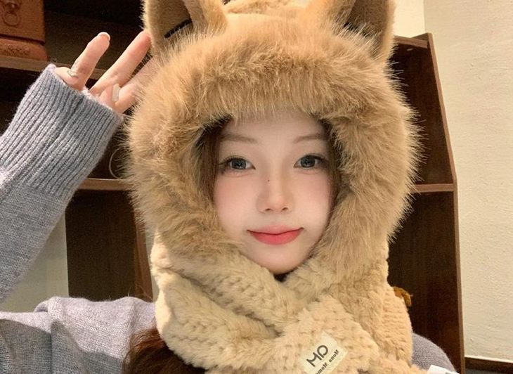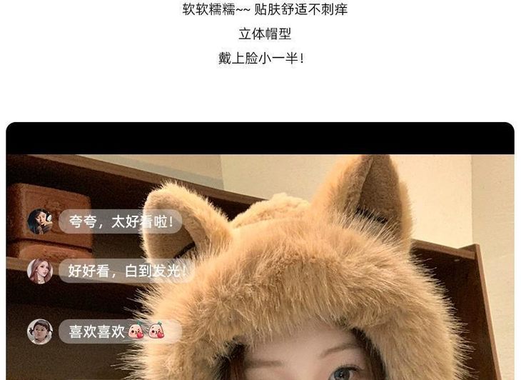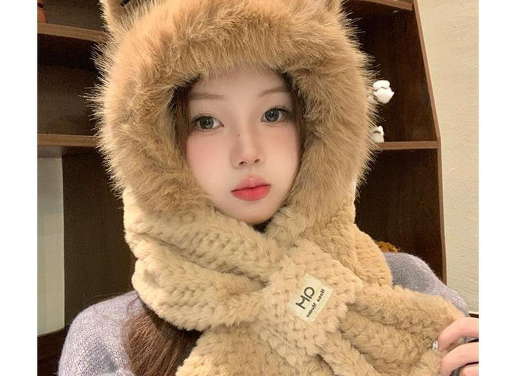 小红书推荐 秋冬款可爱小熊毛绒护耳帽加厚保暖围巾一体帽子女保暖围脖连帽