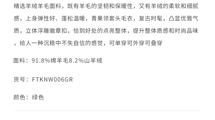 callisto“绒”系列绿色绵羊毛毛衣