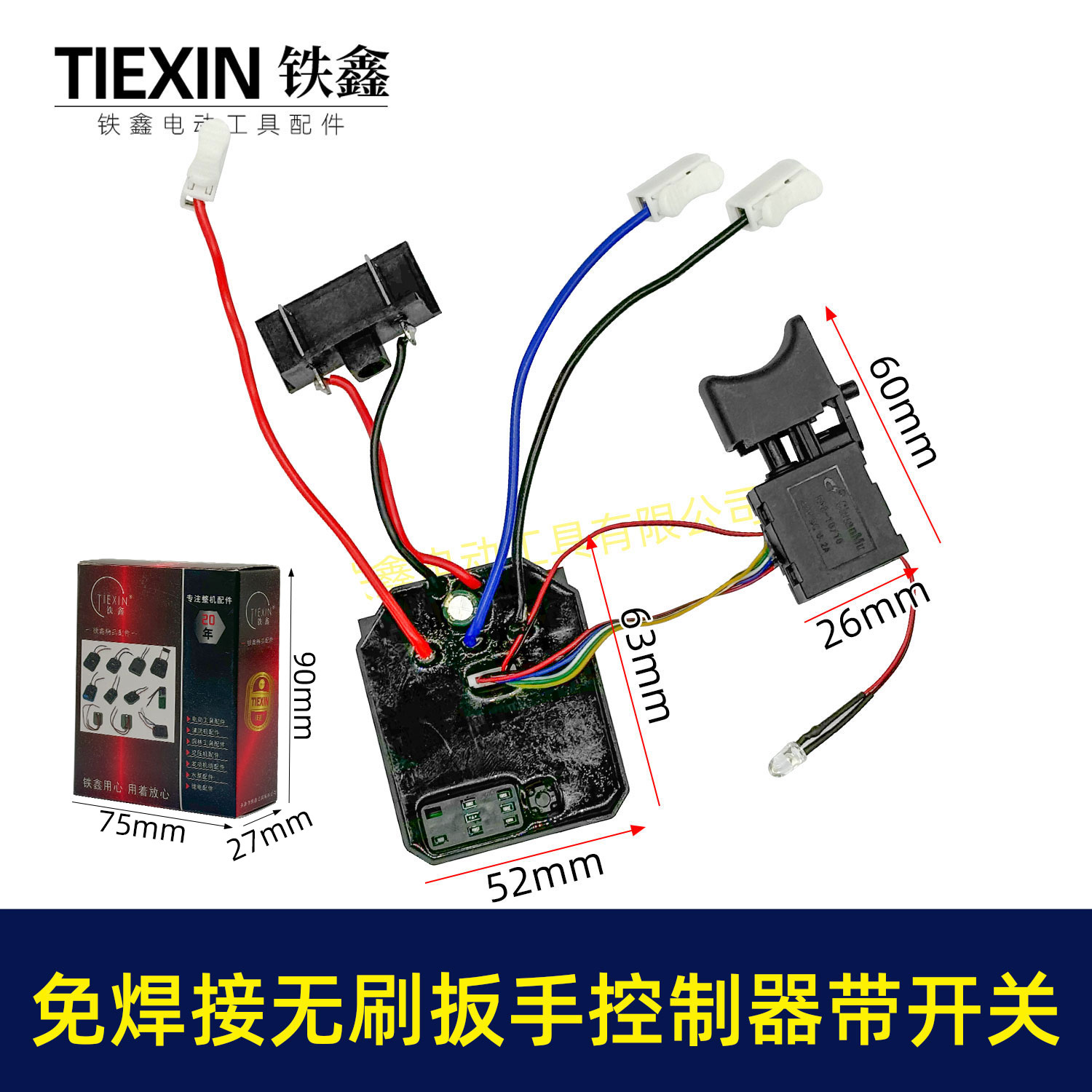 【货号03289】免焊接大艺款无刷扳手控制器开关总成锂电扳手控制板+开关
