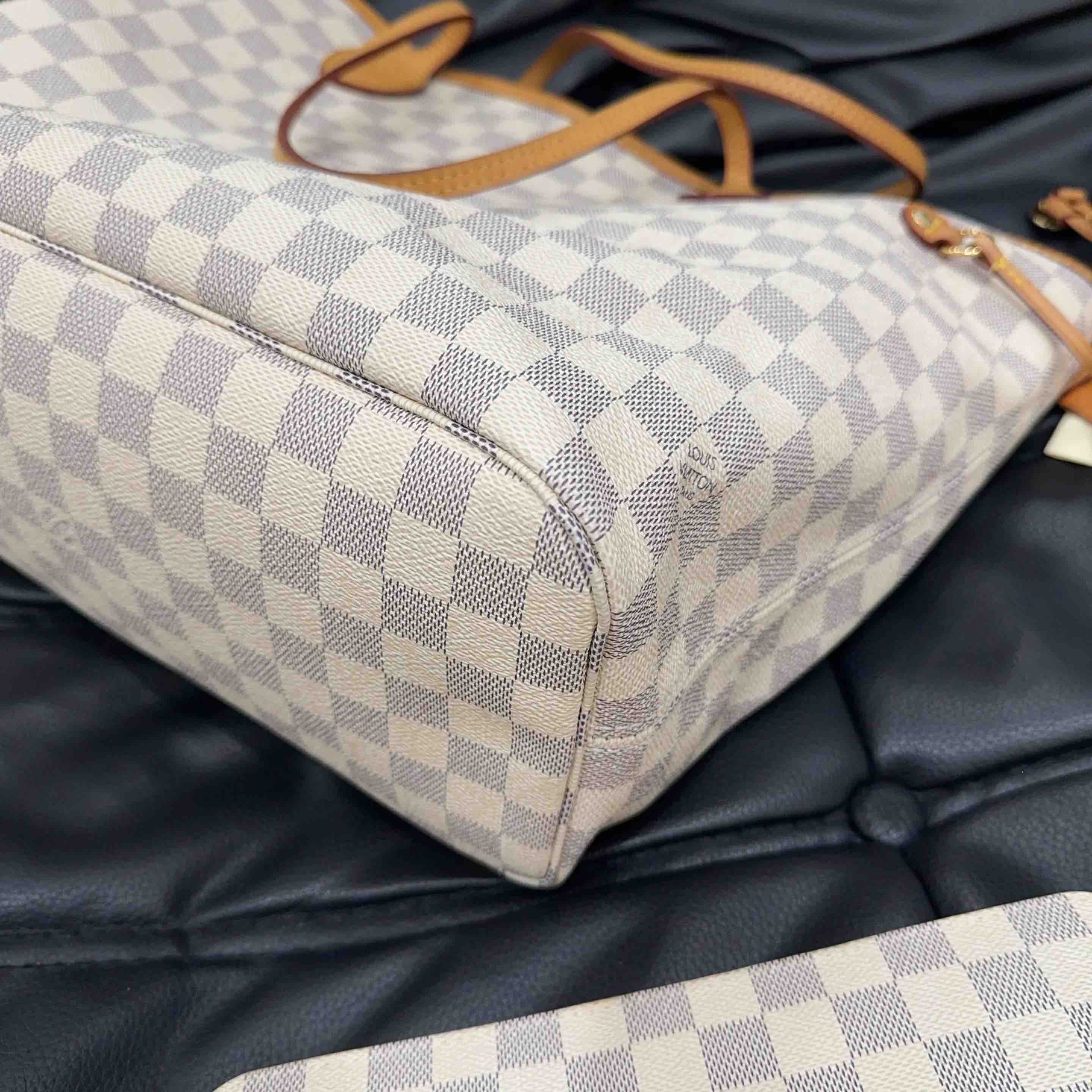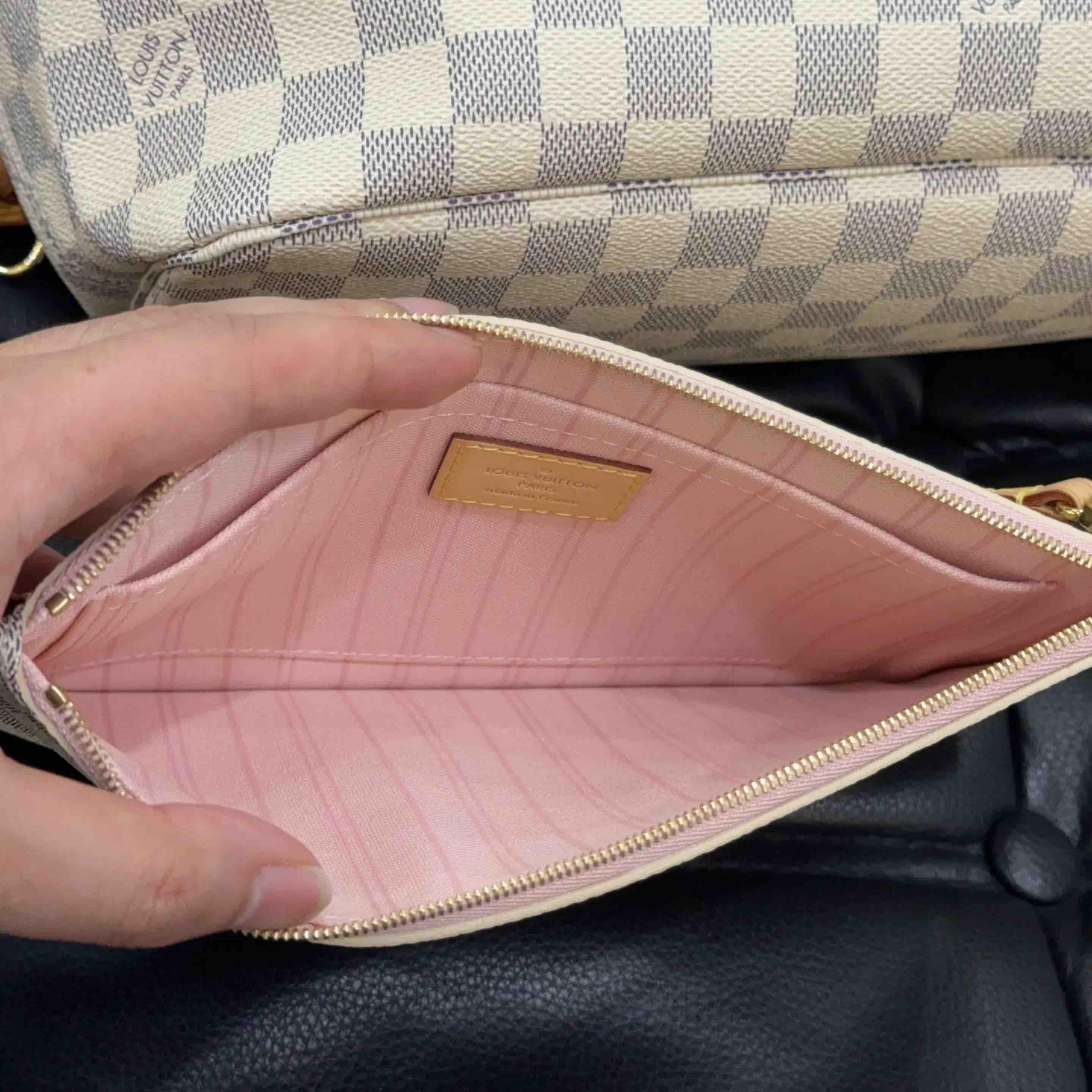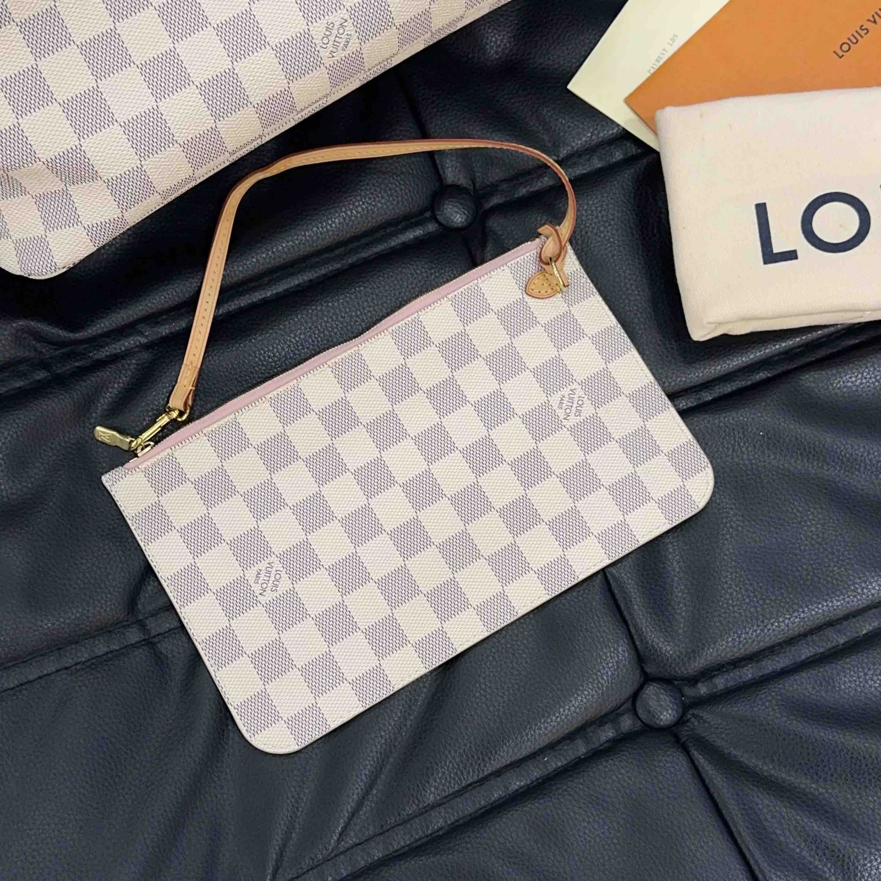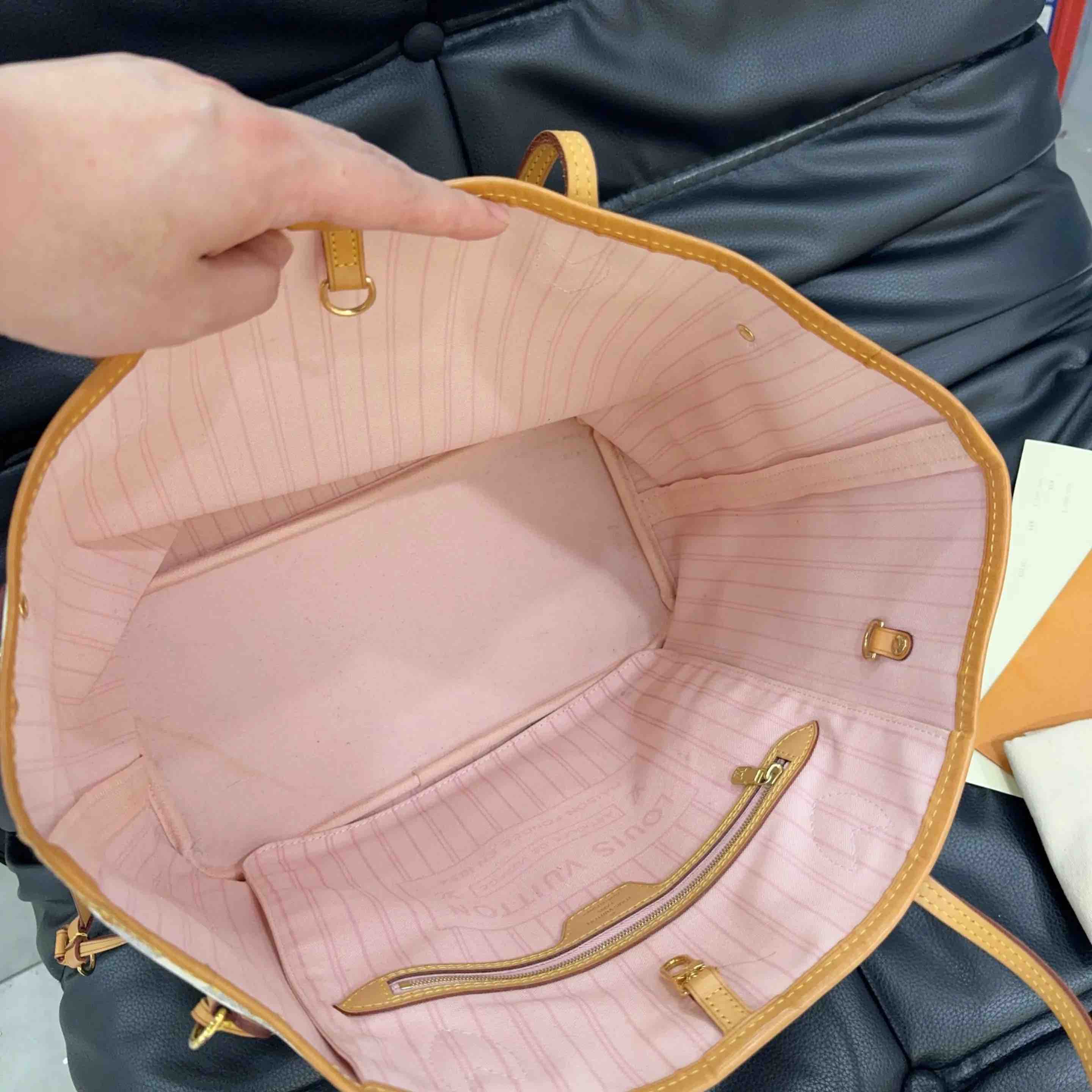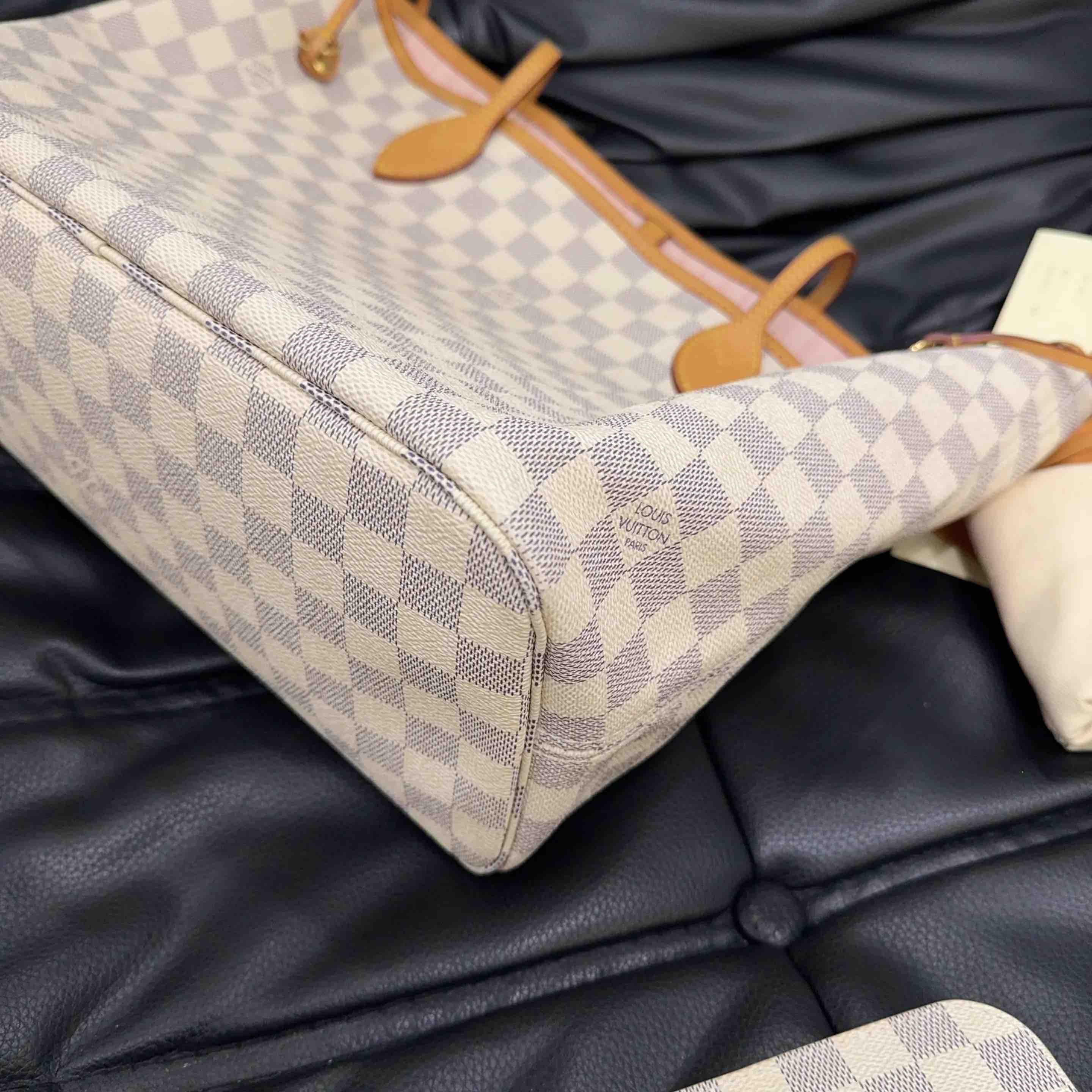 【商品详情】正品二手 LV 中号 nf 白棋盘格 粉内里 购物袋🦩97新 30*28 配件:票 子袋 防尘袋。18岁背到80岁